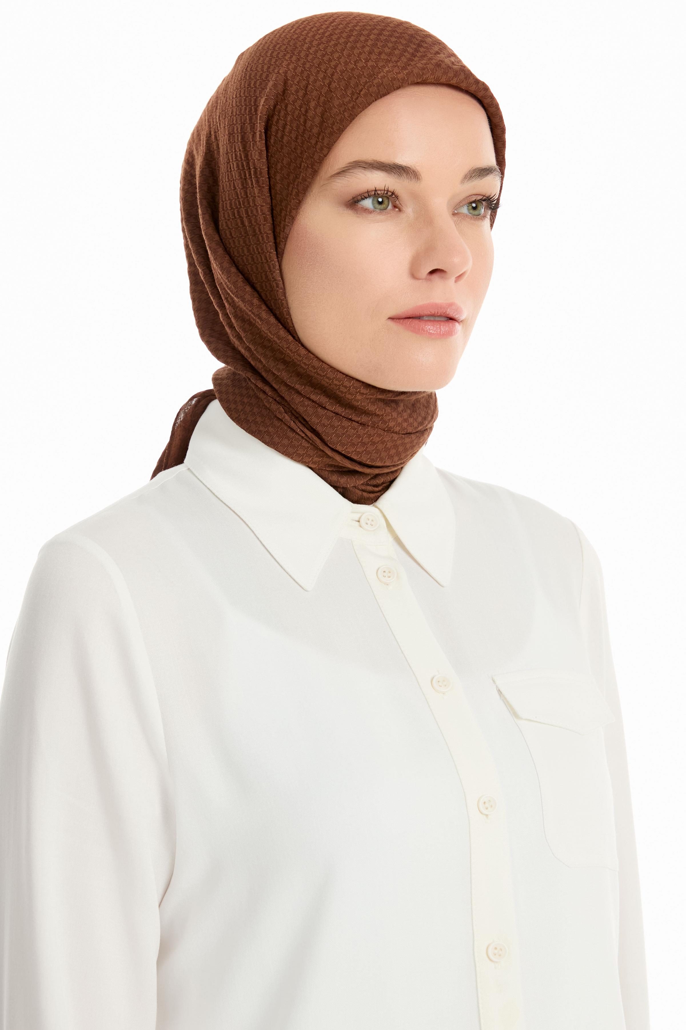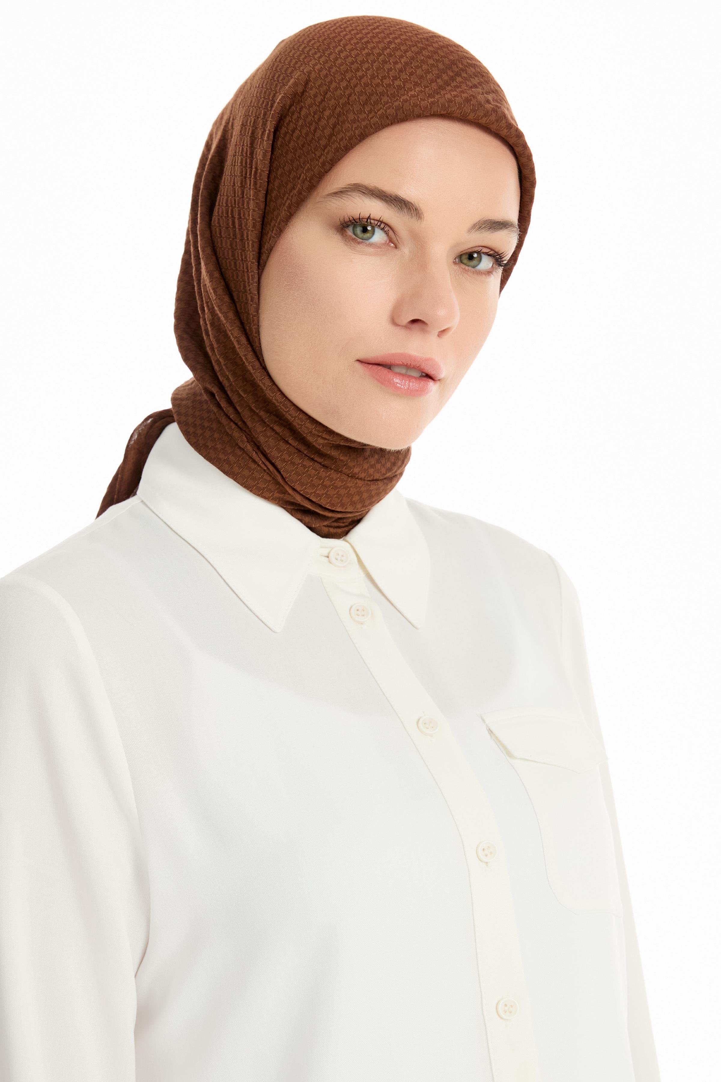 Ethnic Shawl Patterned Natural Scarf - Brown