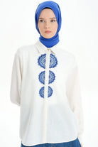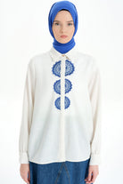Hidden Placket Embroidery Detailed Shirt - Ecru - Blue