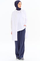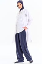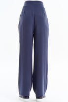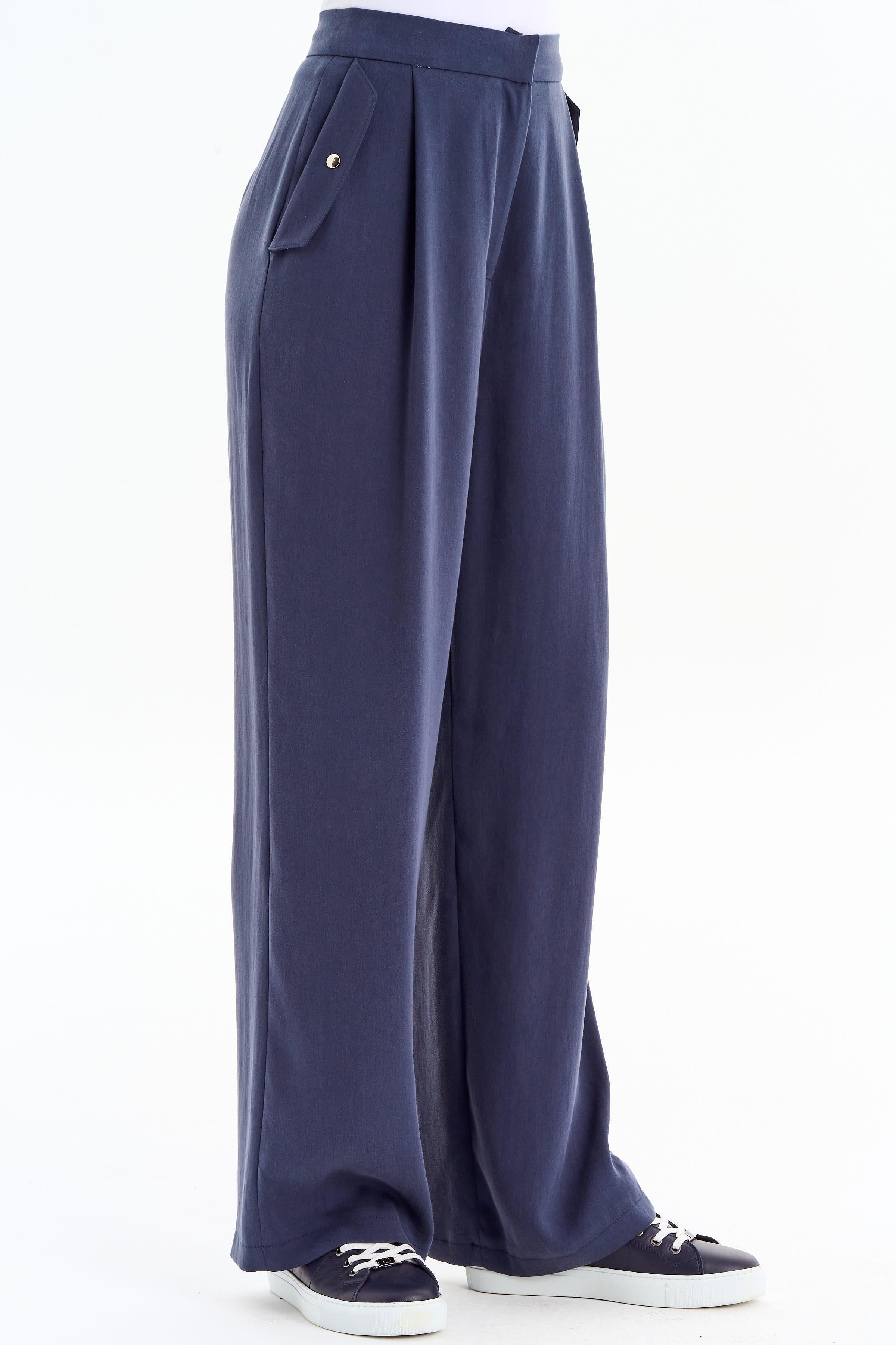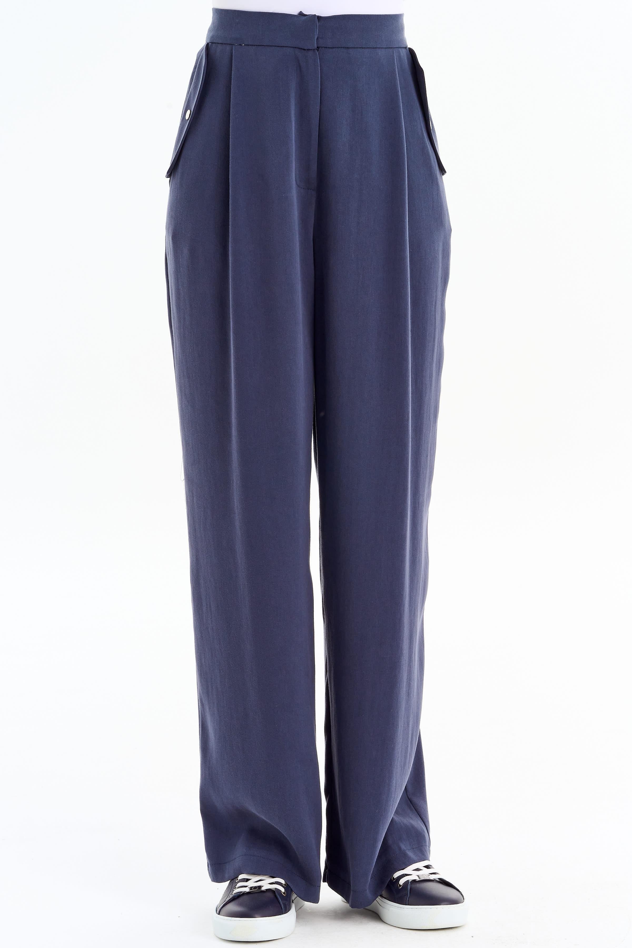Wide Leg Trousers with Pocket Covers - Navy Blue