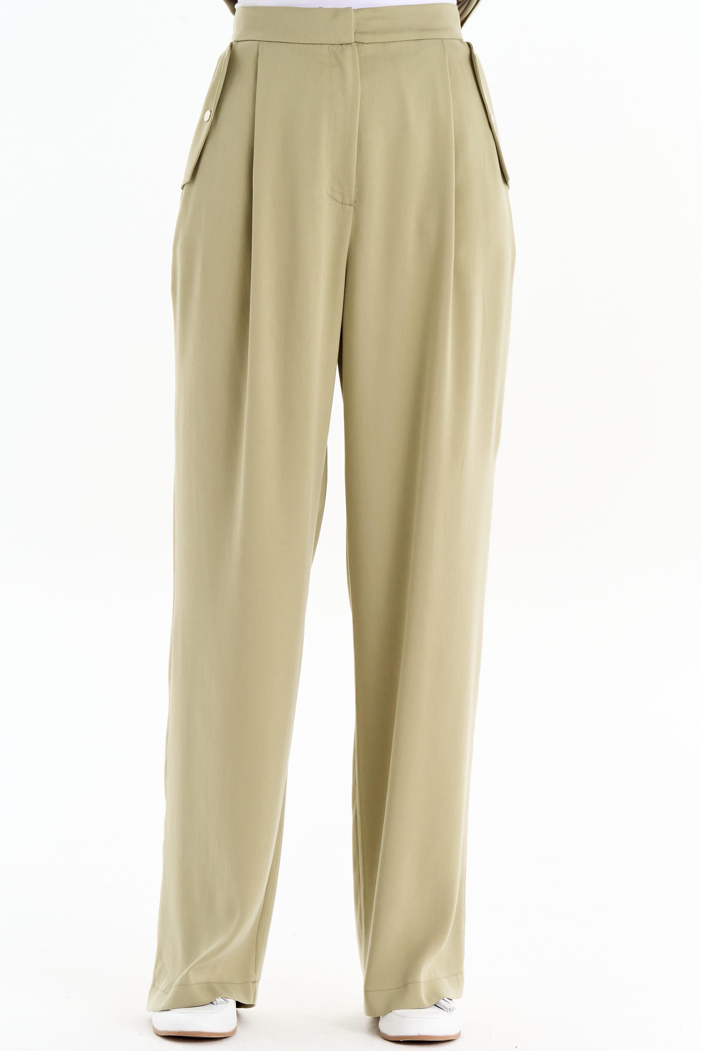 Adding a modern touch to your style, these Wide Leg Pants with Flap Pockets stand out with their functional details and comfortable fit. A perfect choice for both everyday activities and the office, these pants are a must-have in every woman's wardrobe.