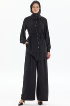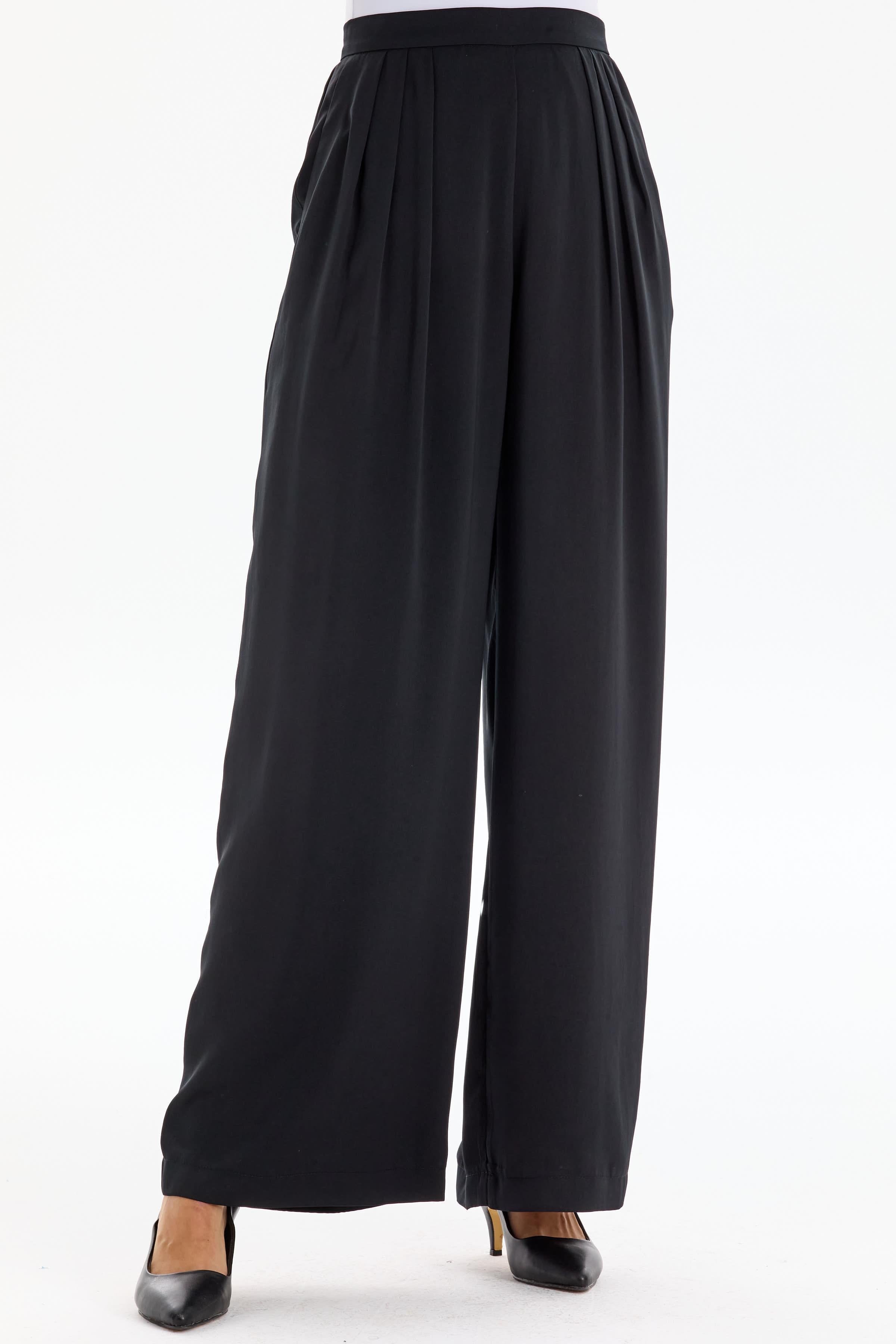 Pleat Detailed Wide Leg Trousers - Black
