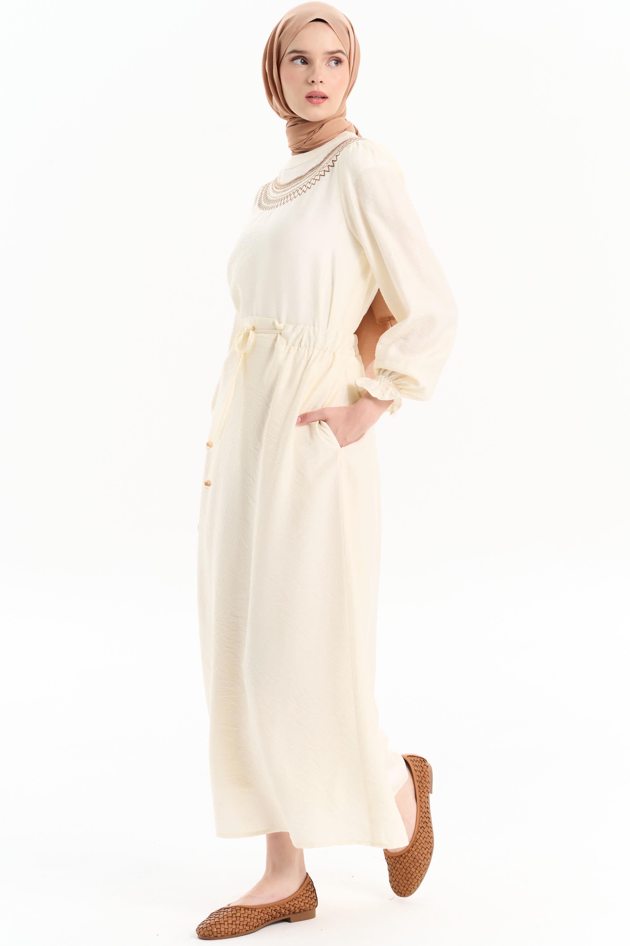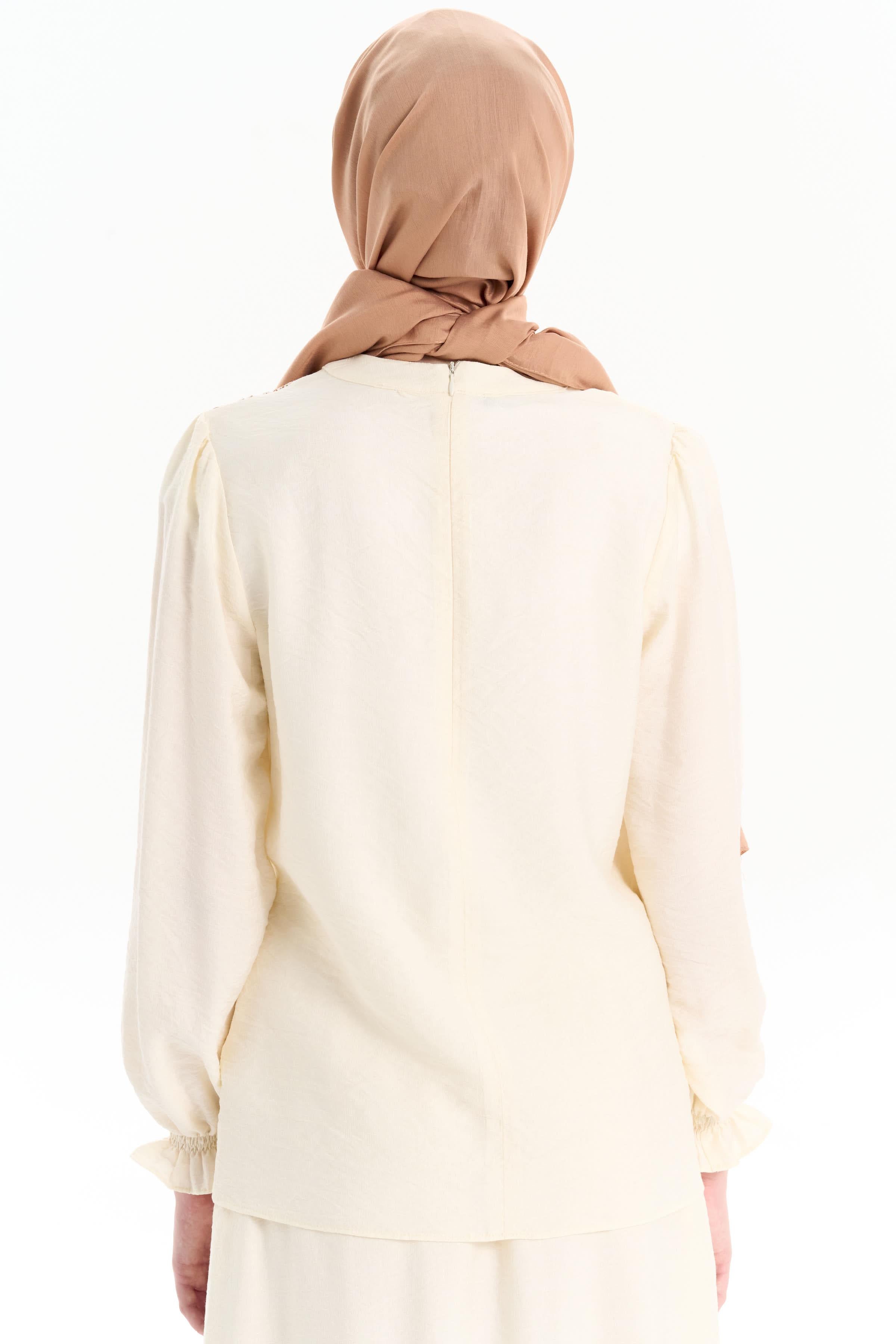 Embroidered Detailed Blouse Skirt Set - Ecru