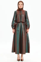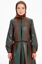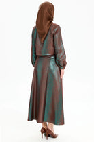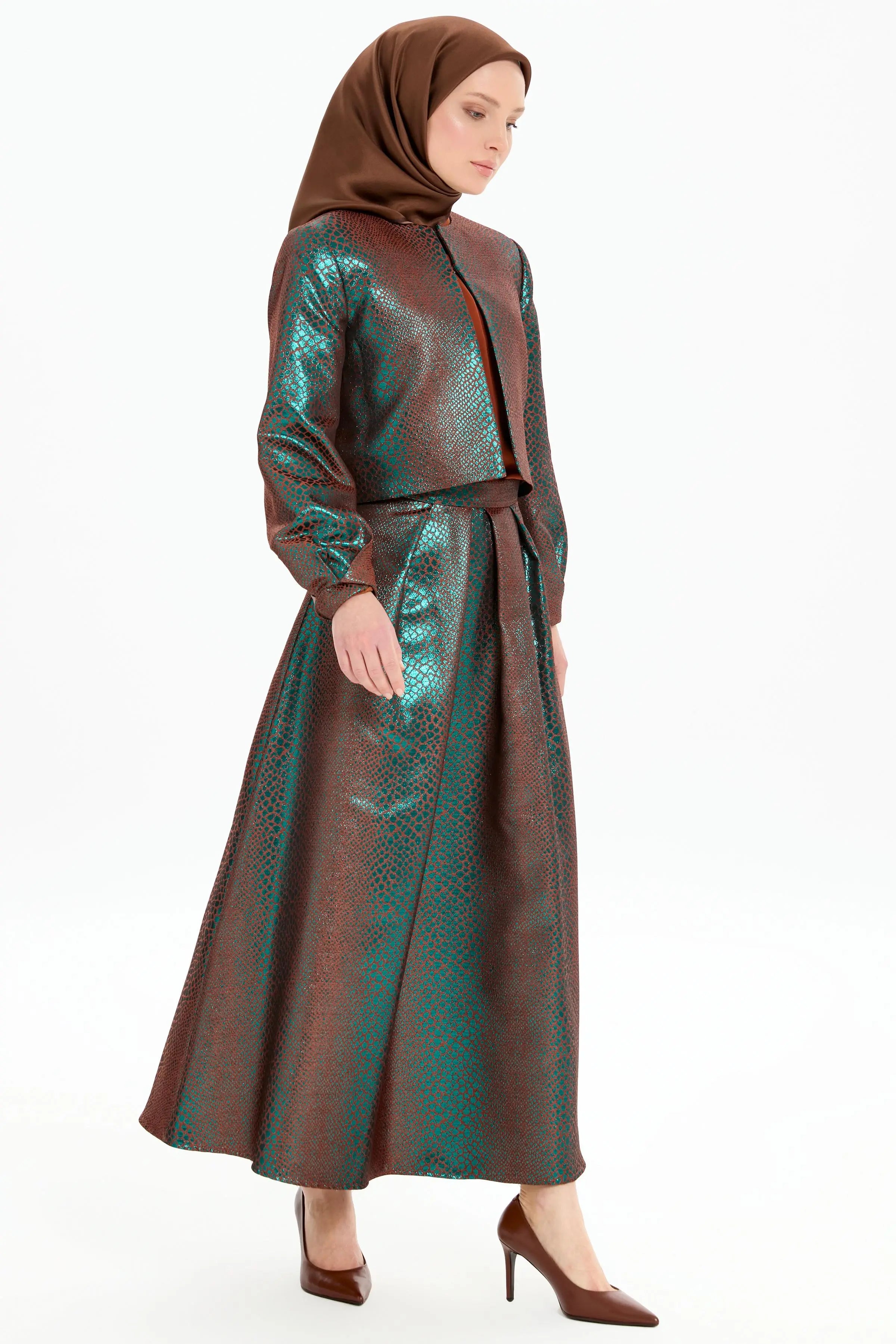 Pleat Detailed Jacquard Jacket Skirt Set - Green