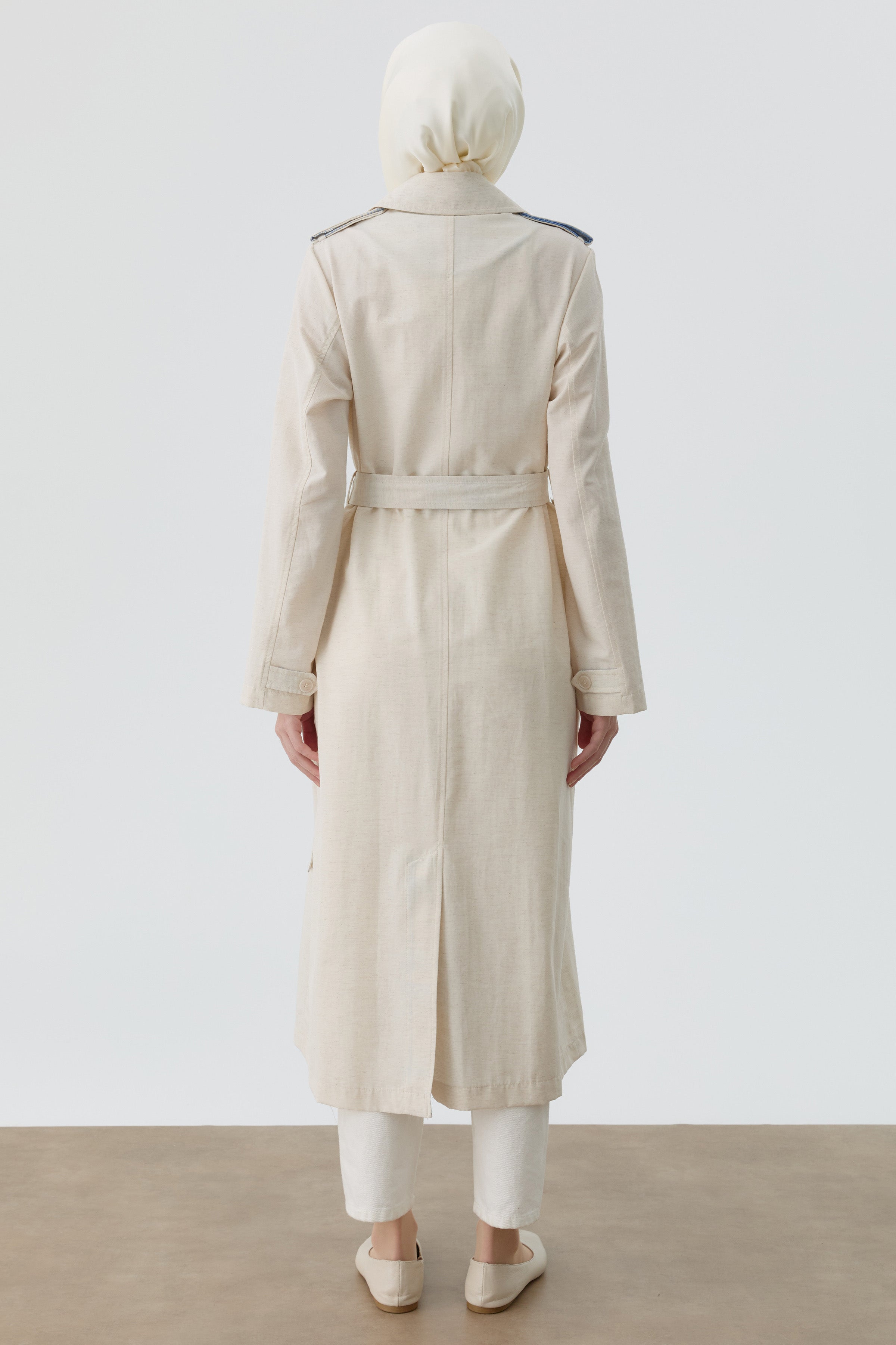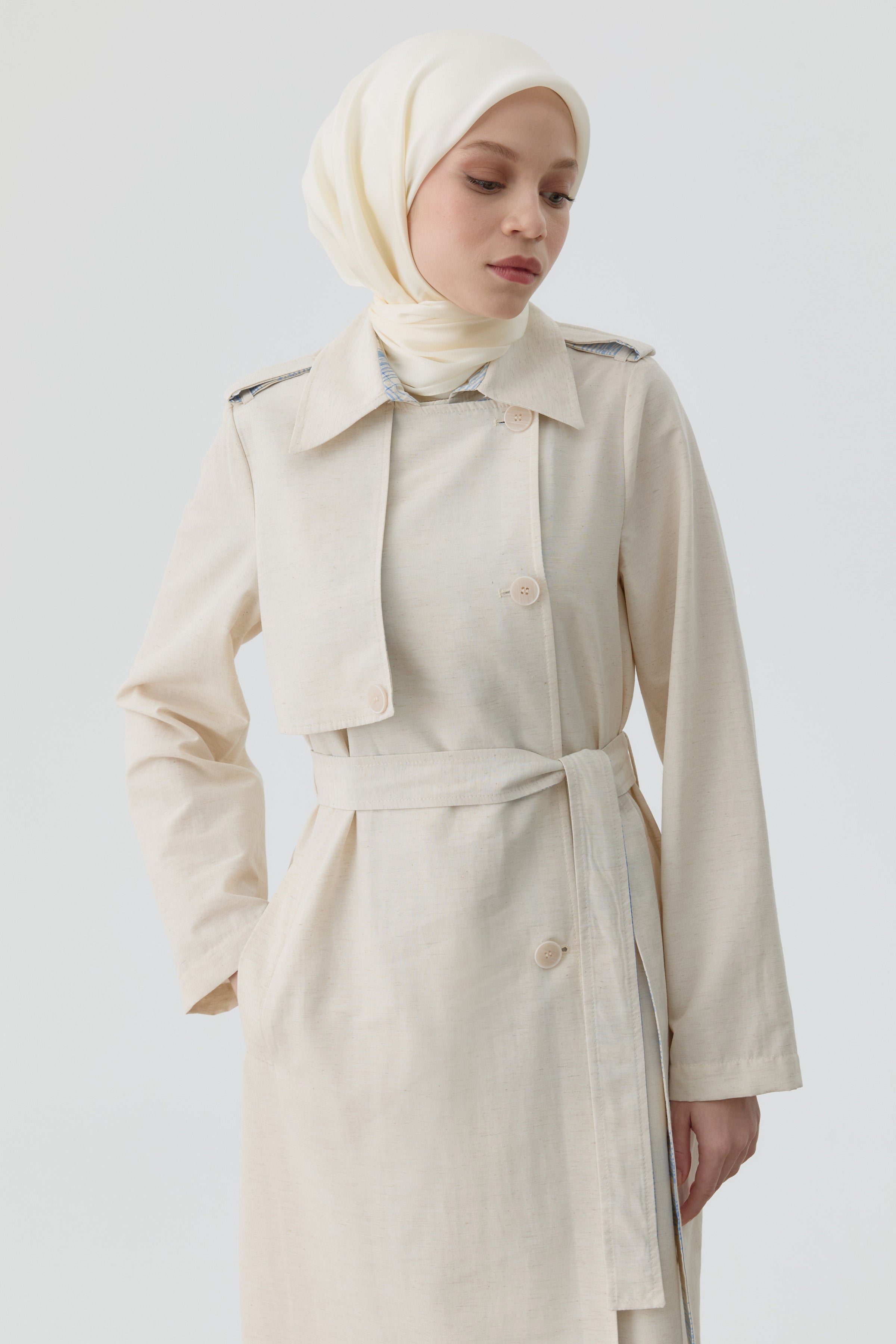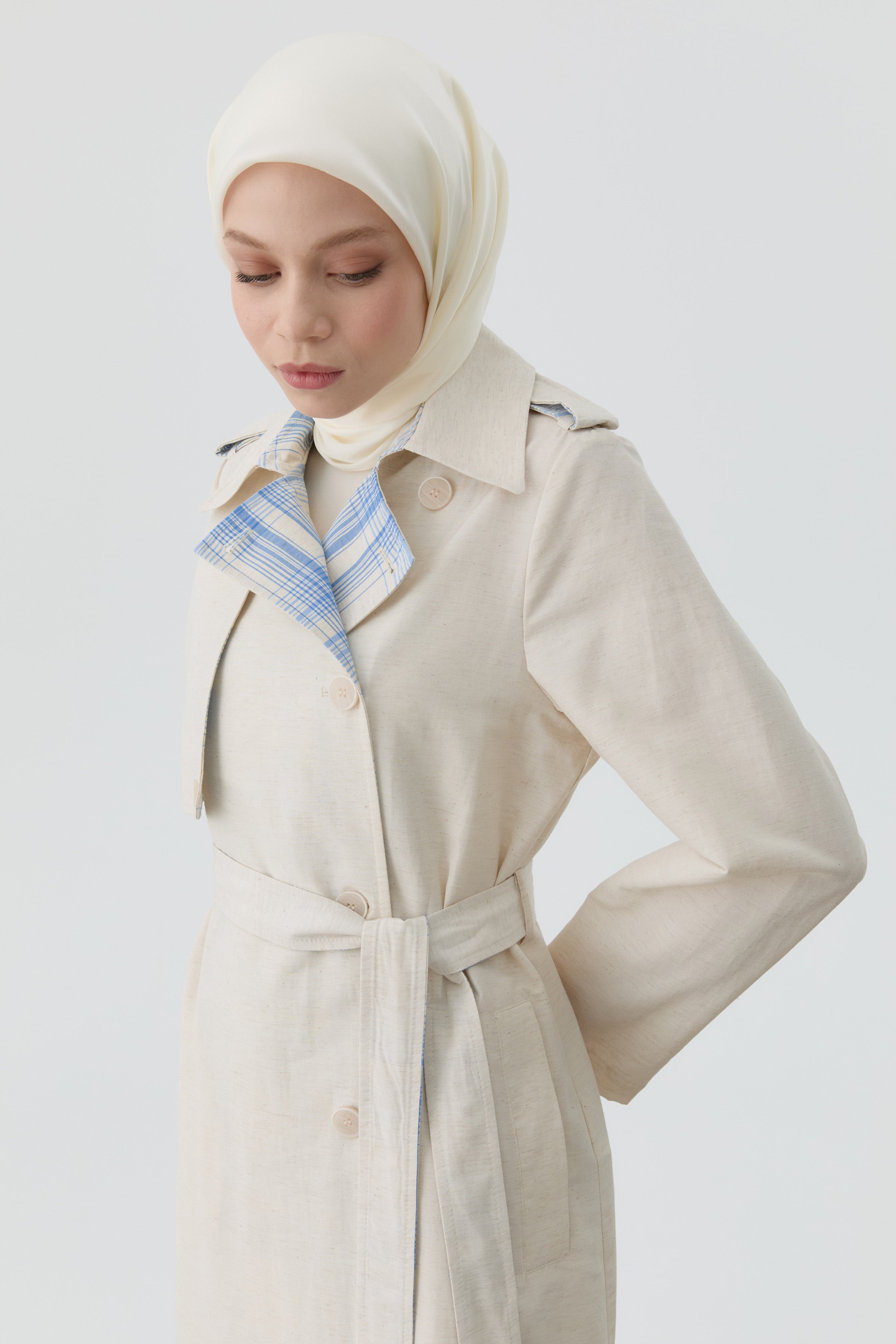 Plaid Combined Belted Trench Coat - Beige - Indigo