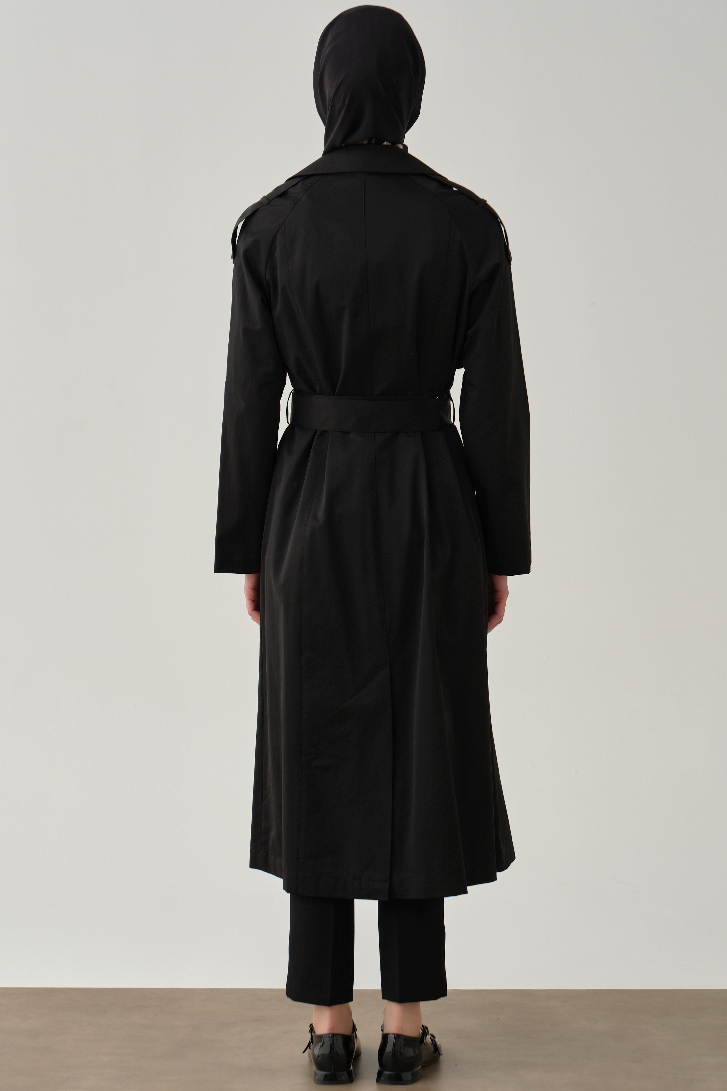 Offering elegance and chic together with its belted and epauletted design, this trench coat provides a modern and sophisticated look. The belt detail elegantly emphasizes your waist, while the epaulette details add a strong touch to your style with the added military chic.