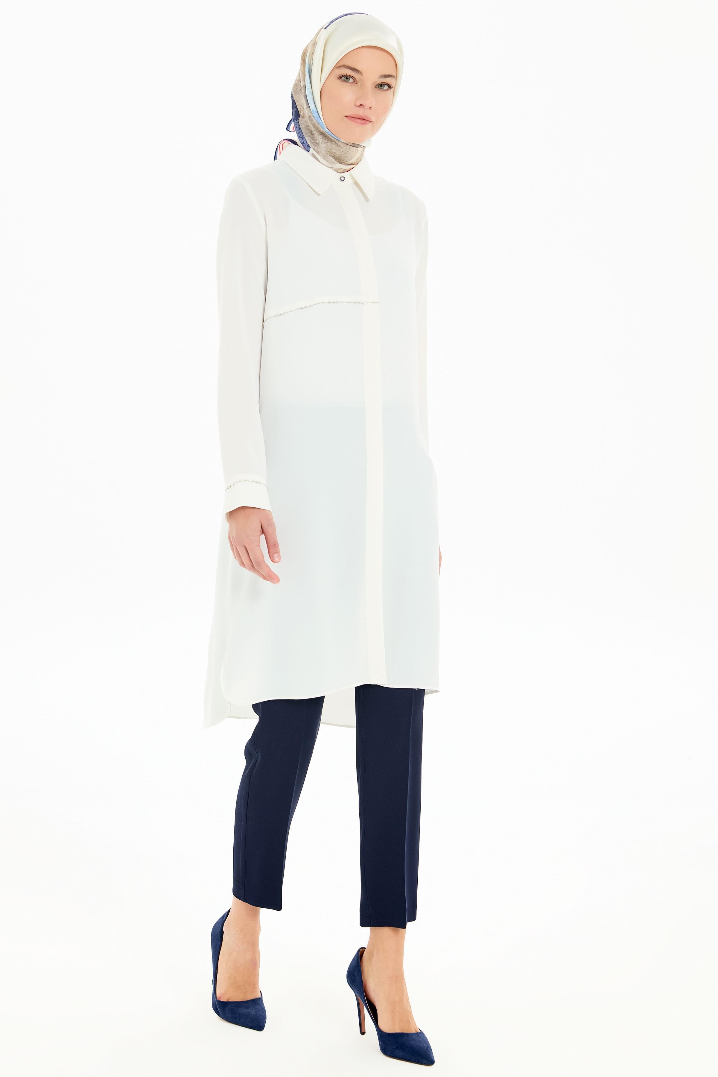 Accessory Stripe Detailed Slit Tunic offers elegance and elegance together. This tunic, which draws attention with its special design, provides an eye-catching look with its slit details and accessory strips.