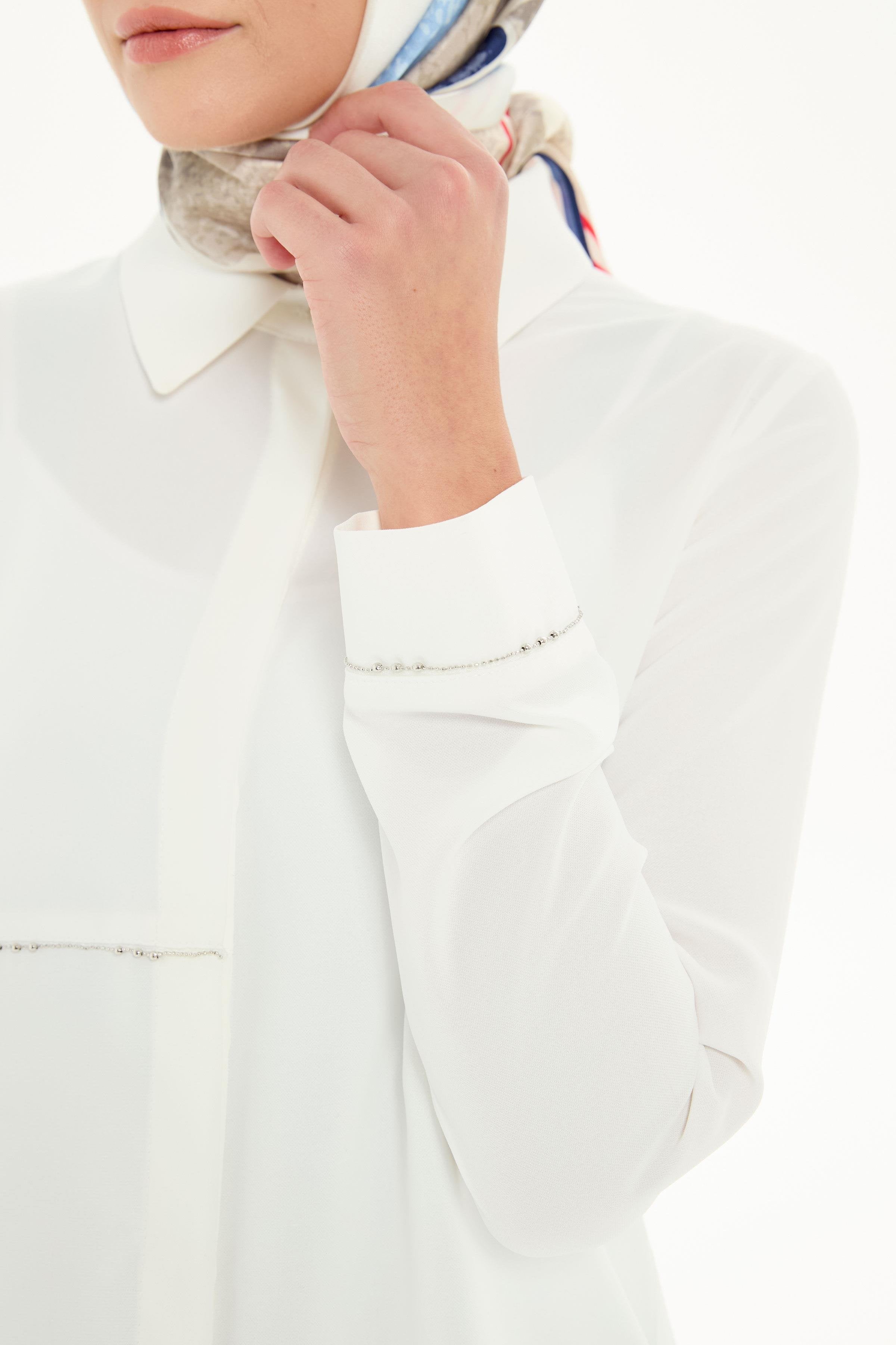 Accessory Stripe Detailed Slit Tunic - Ecru