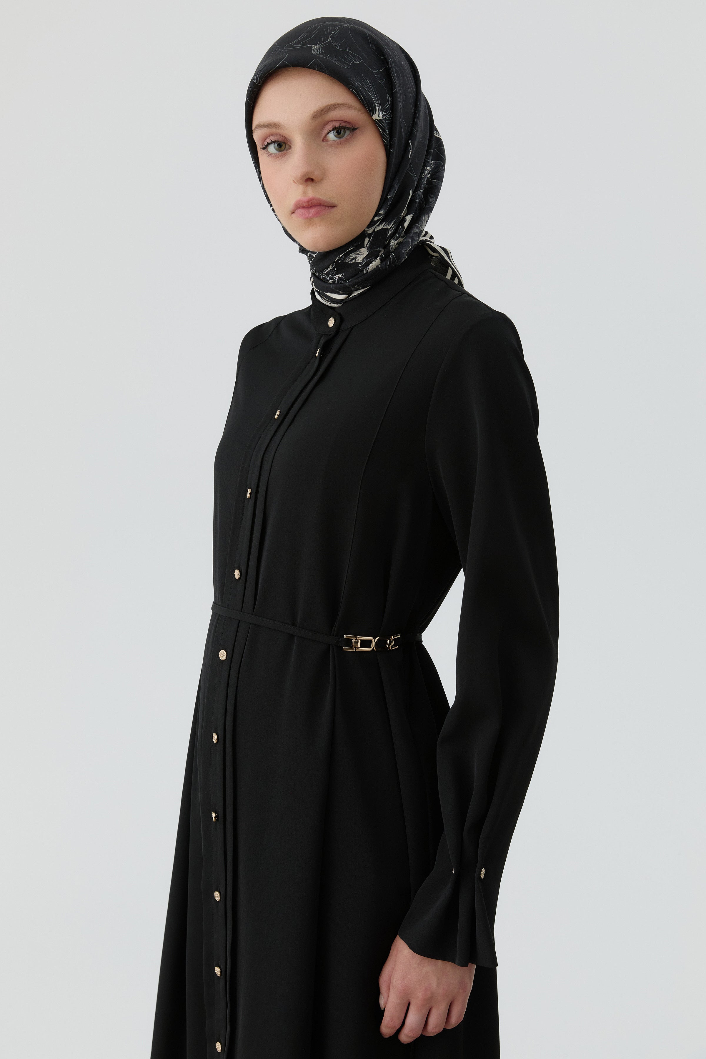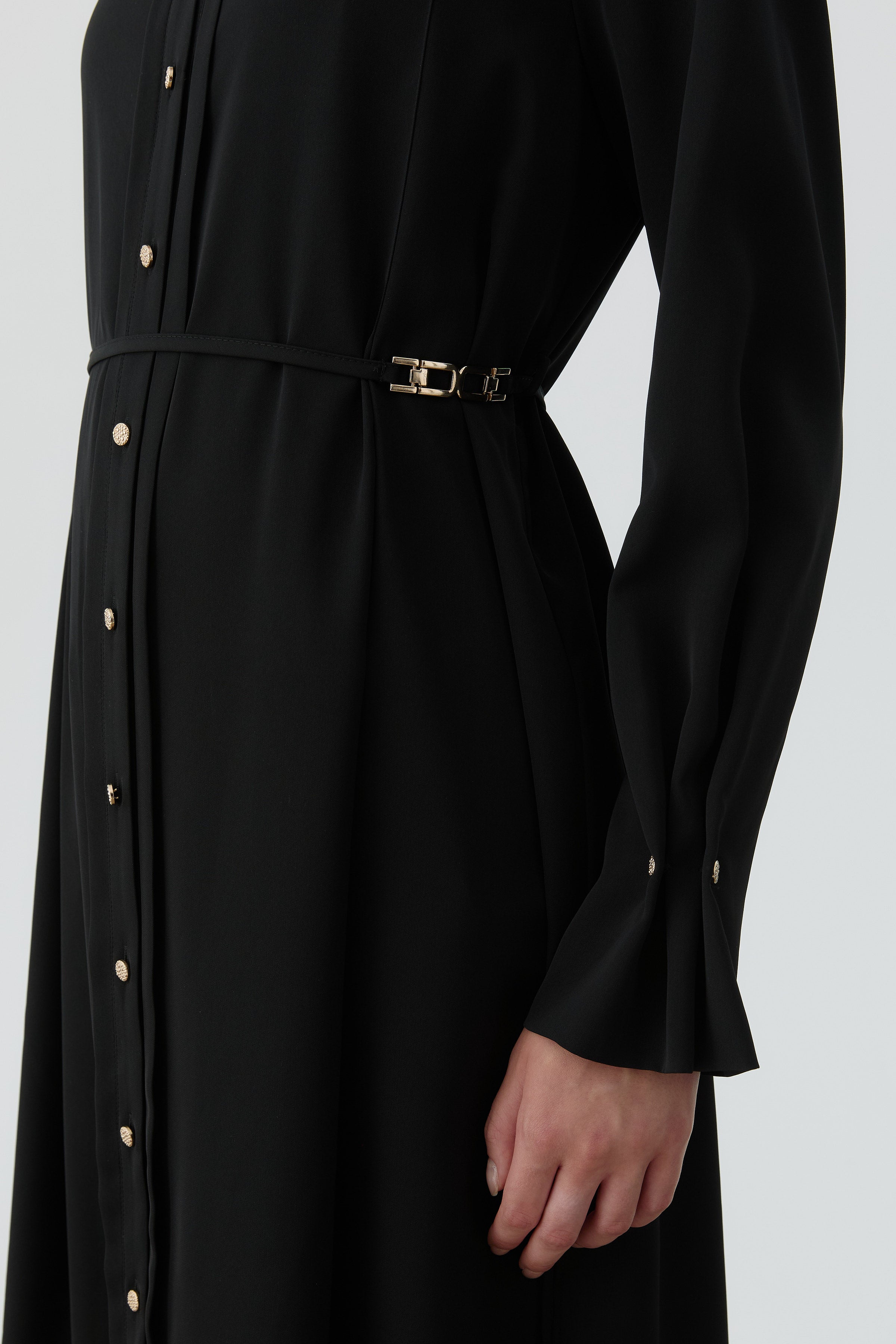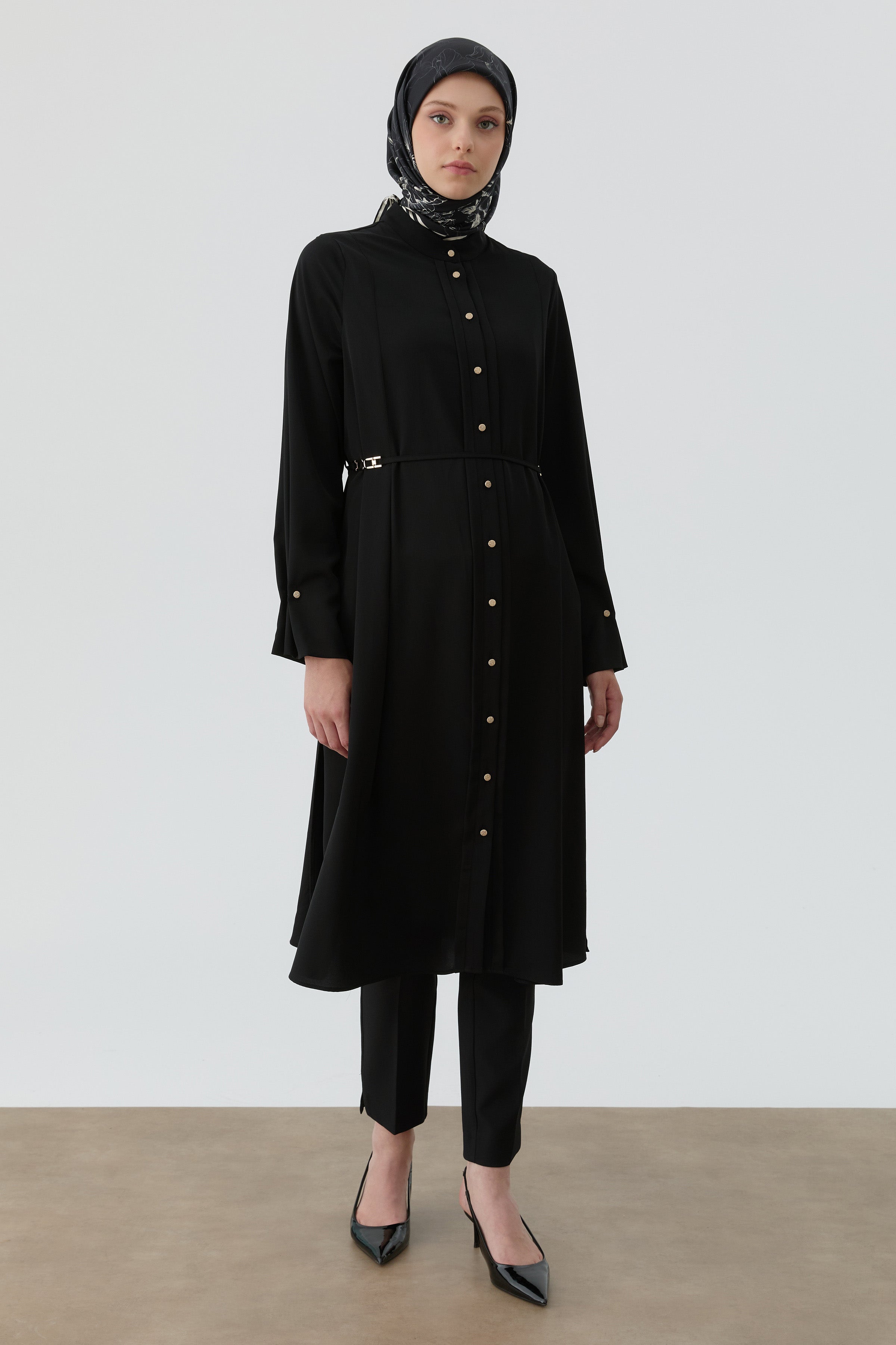Ankle Pleated Button Detailed Tunic - Black