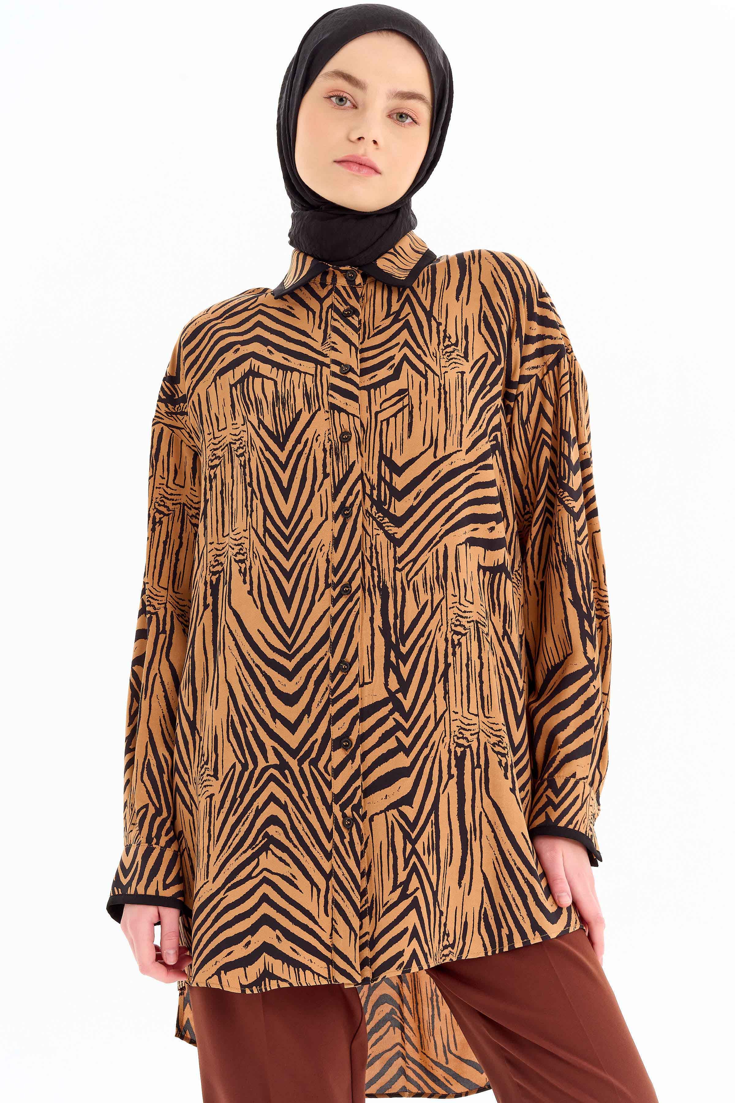 The garnished patterned tunic offers an elegant and eye-catching look. Finely detailed patterns and delicate garnish embroidery add a unique air to the tunic, while highlighting its elegance.