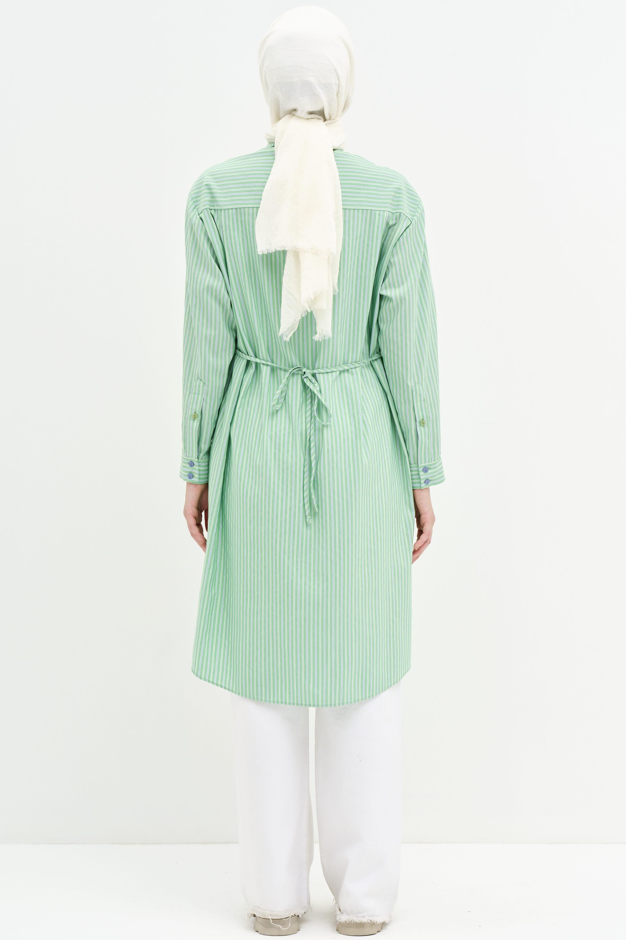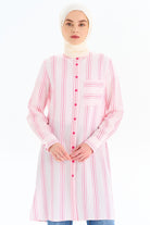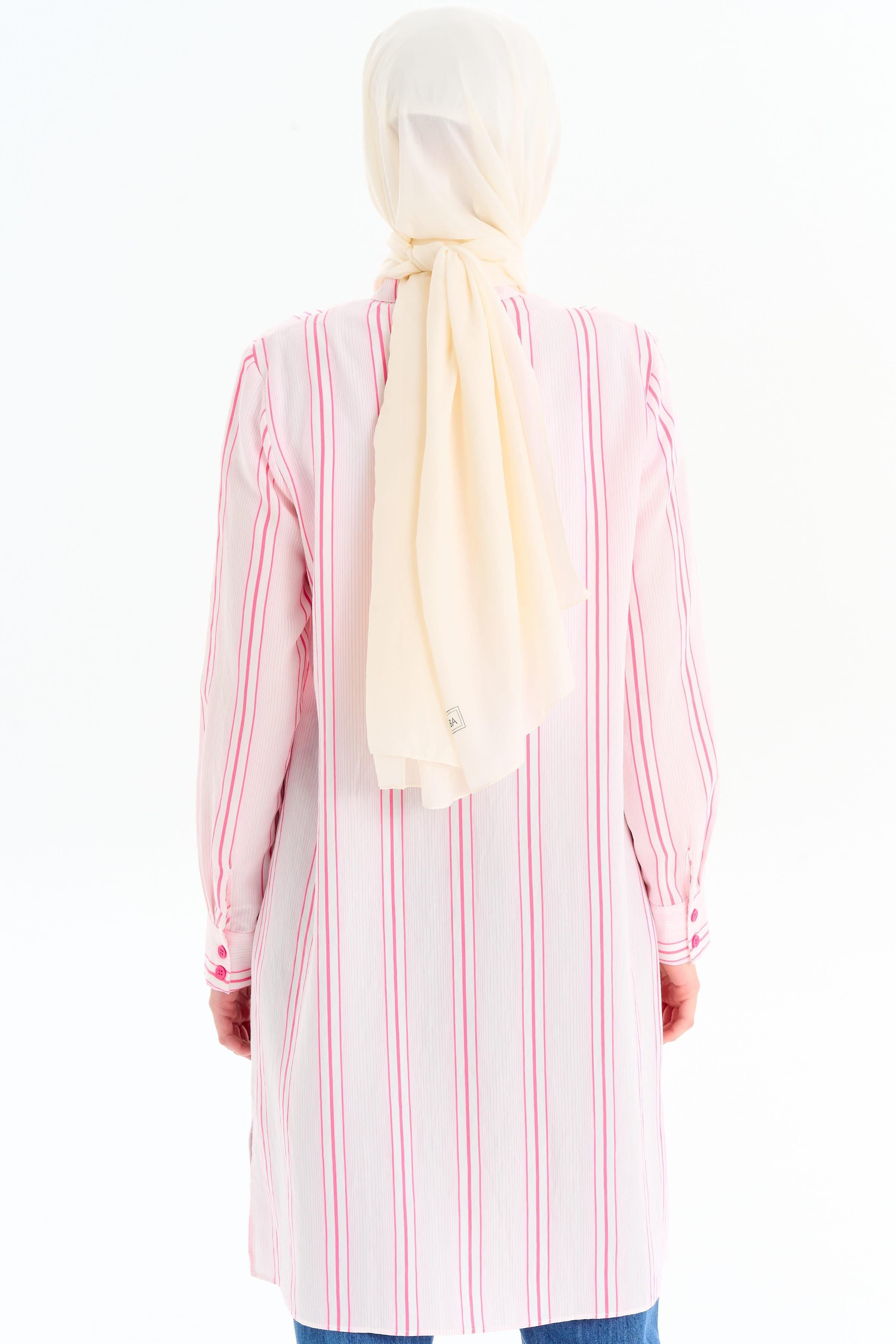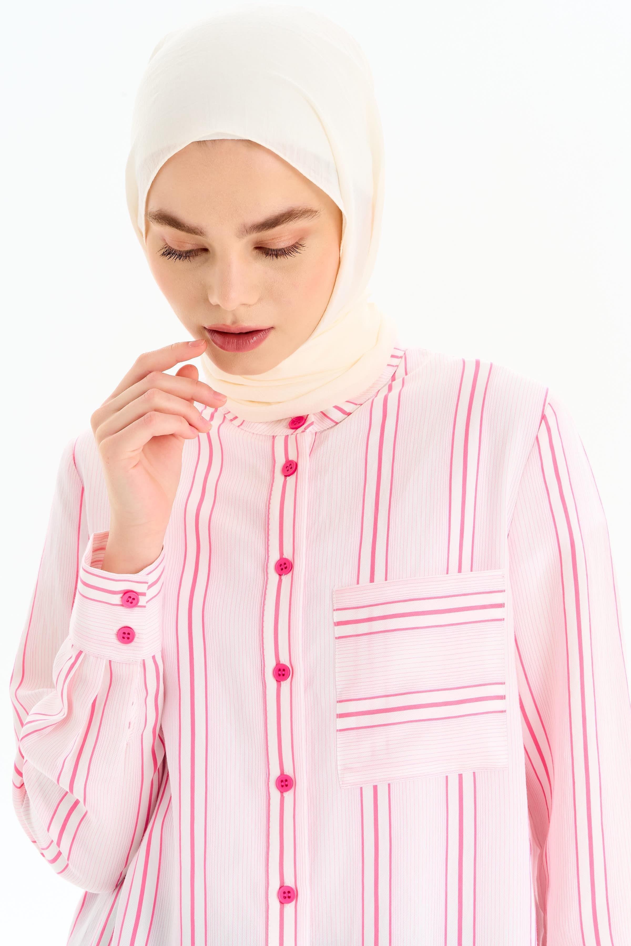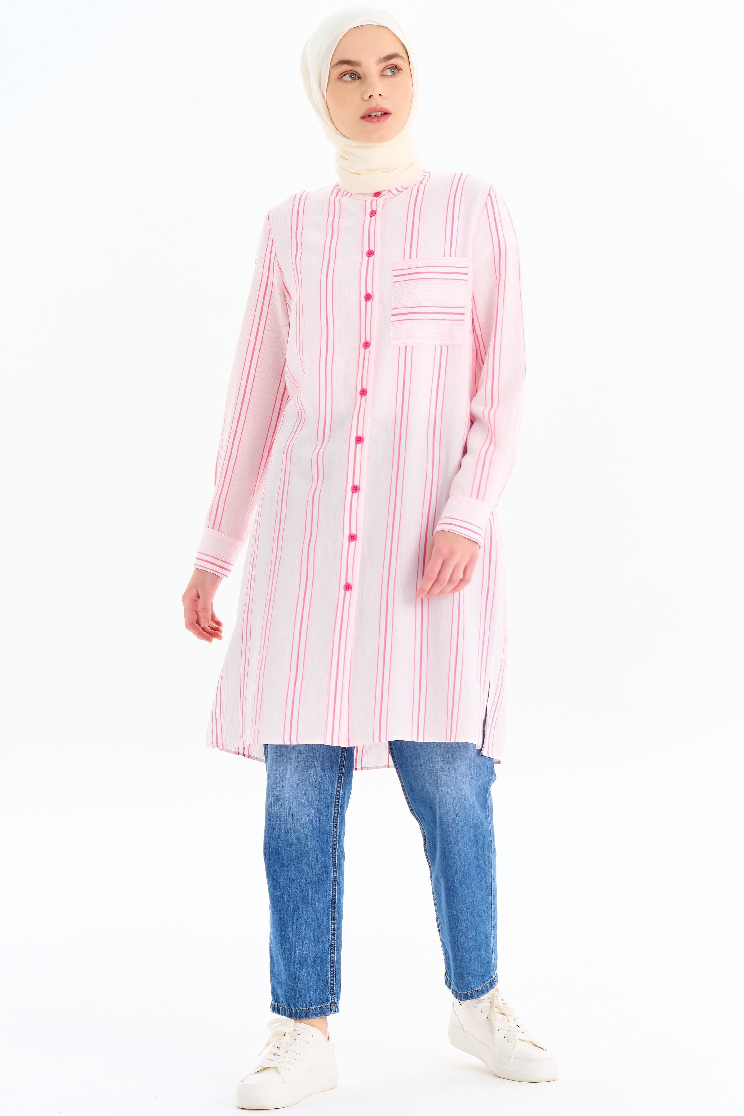 Combining elegance and functionality, this tunic attracts attention with its modern design. While the striped pattern gives the tunic a dynamic look, the prominent slit details highlight your style.