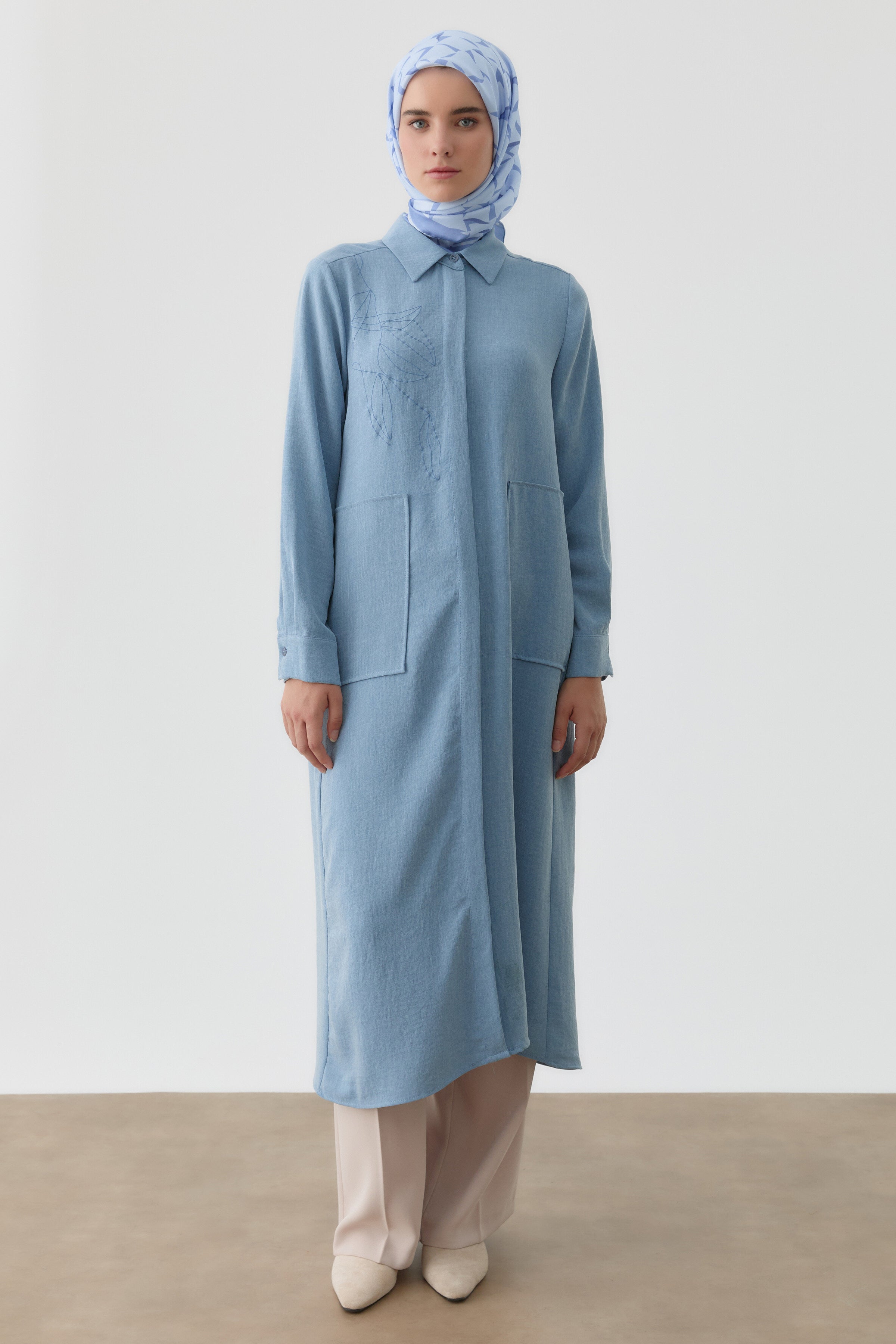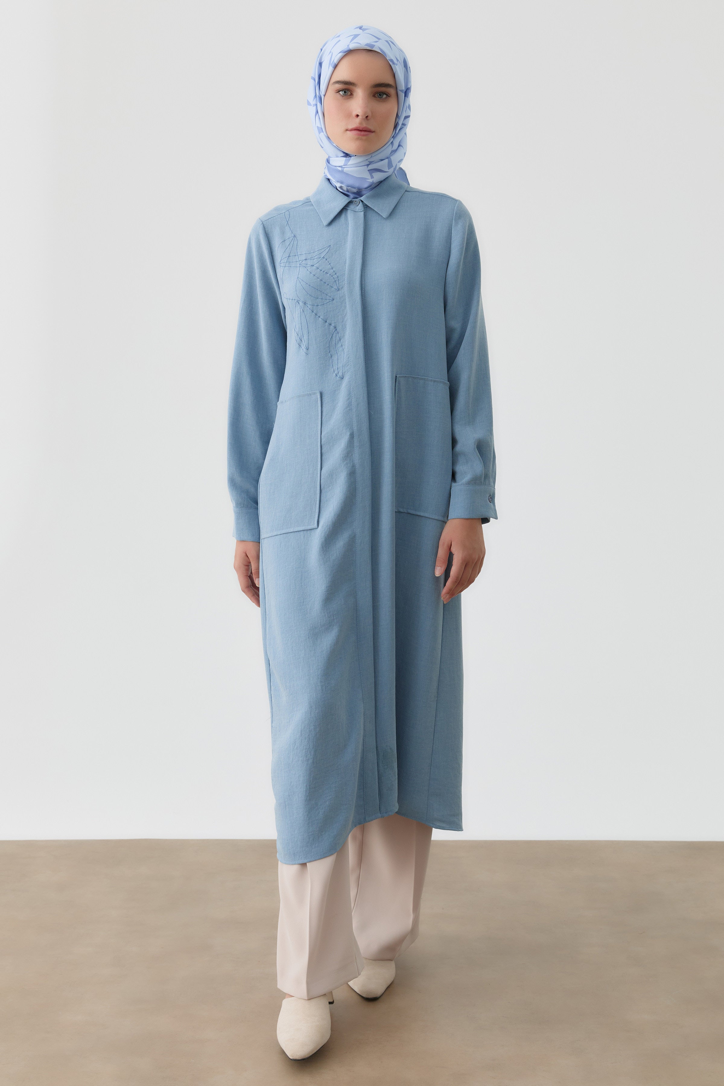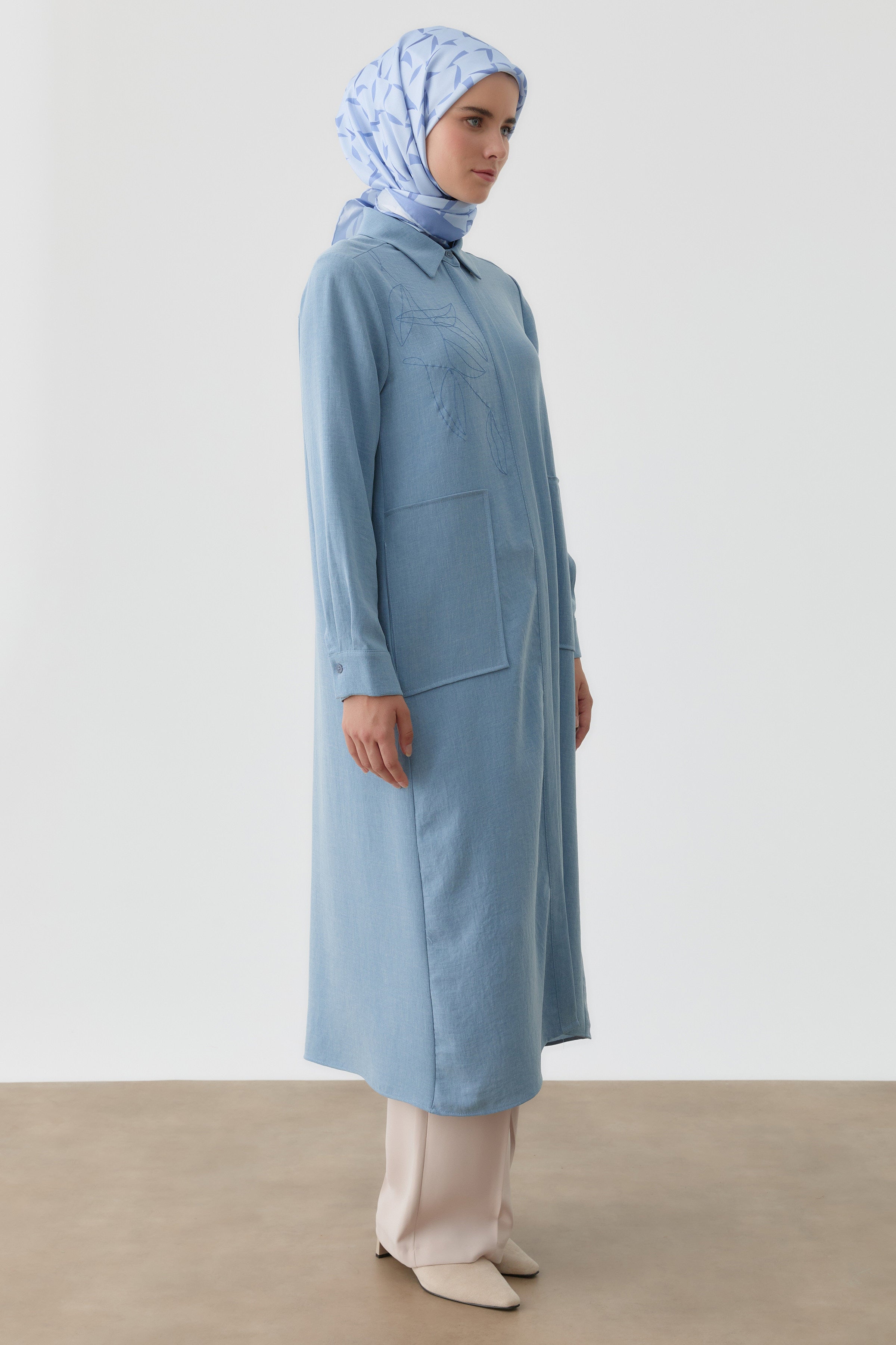 This long tunic, featuring a striking patterned print, offers all-day comfort with its elegant and relaxed cut. It's the perfect way to add a vibrant and modern touch to your everyday style.