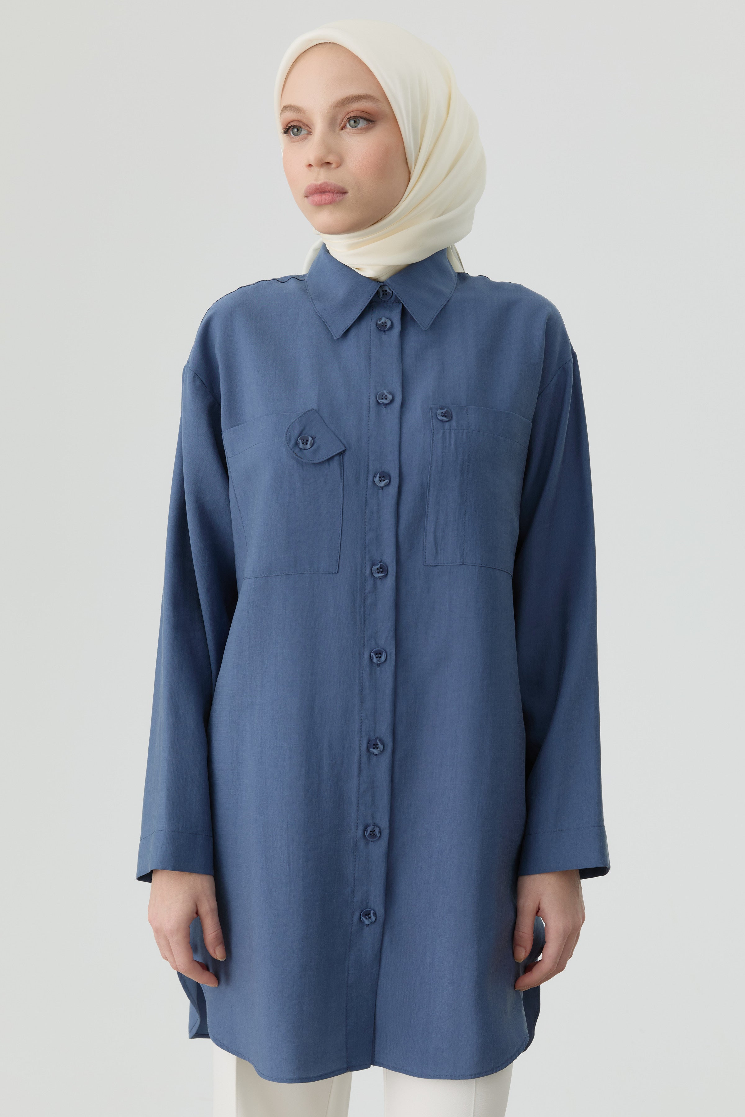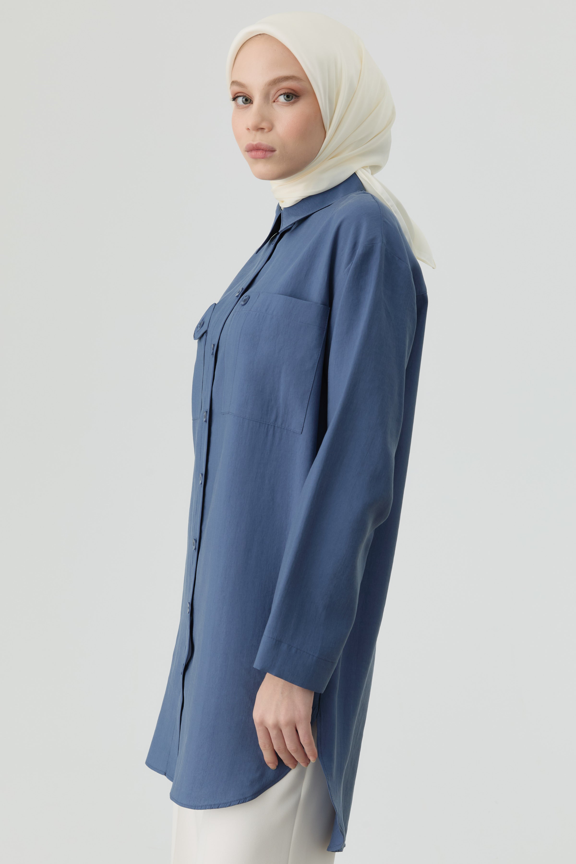 While it offers a modern and casual look with its low shoulder cut, it provides functional use with its front pockets.