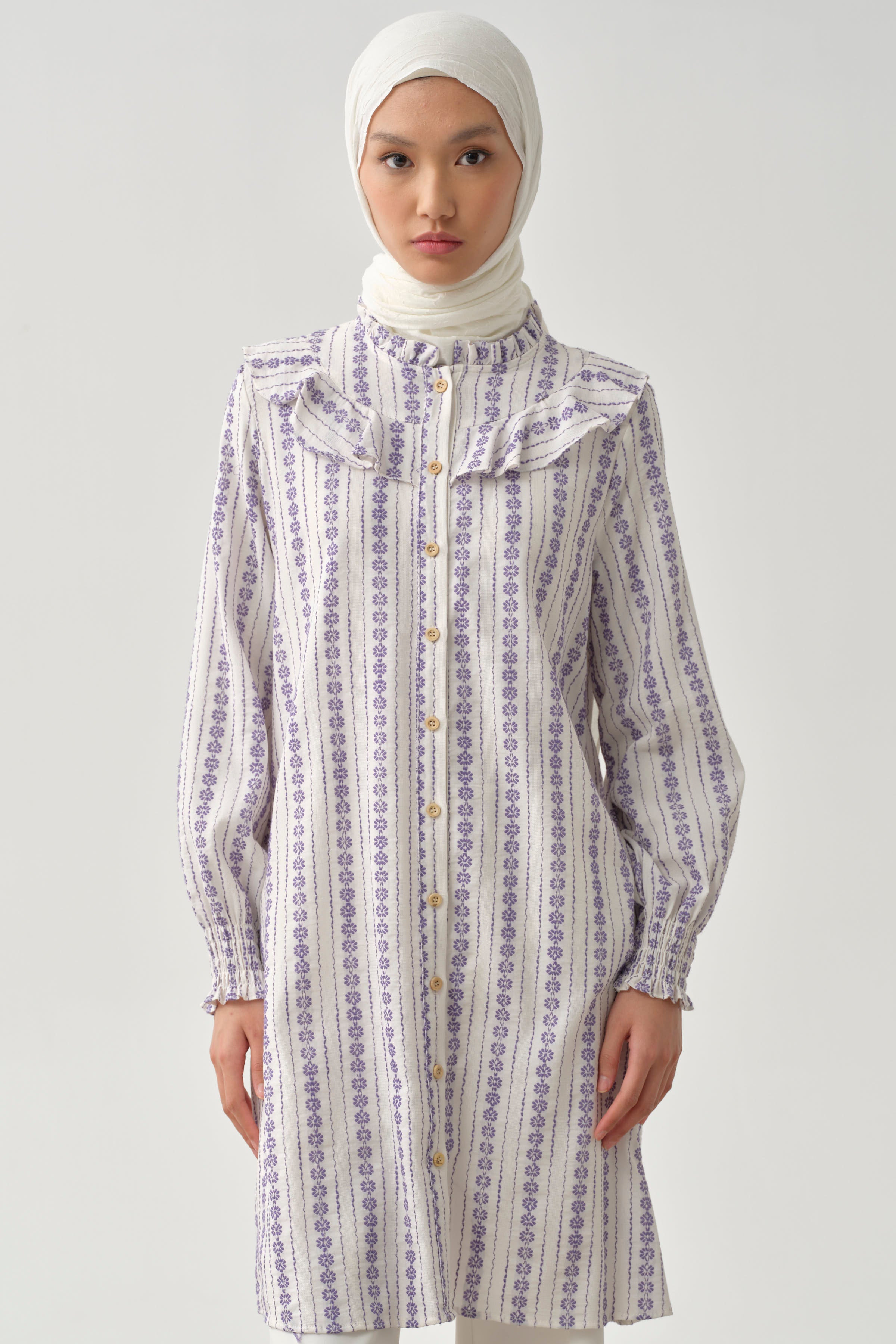 The tunic, which stands out with its feminine and stylish details, is a piece that adapts to every style with its comfortable cut and elegant touches. While providing comfort in daily use, it completes your style with its modern and stylish design.