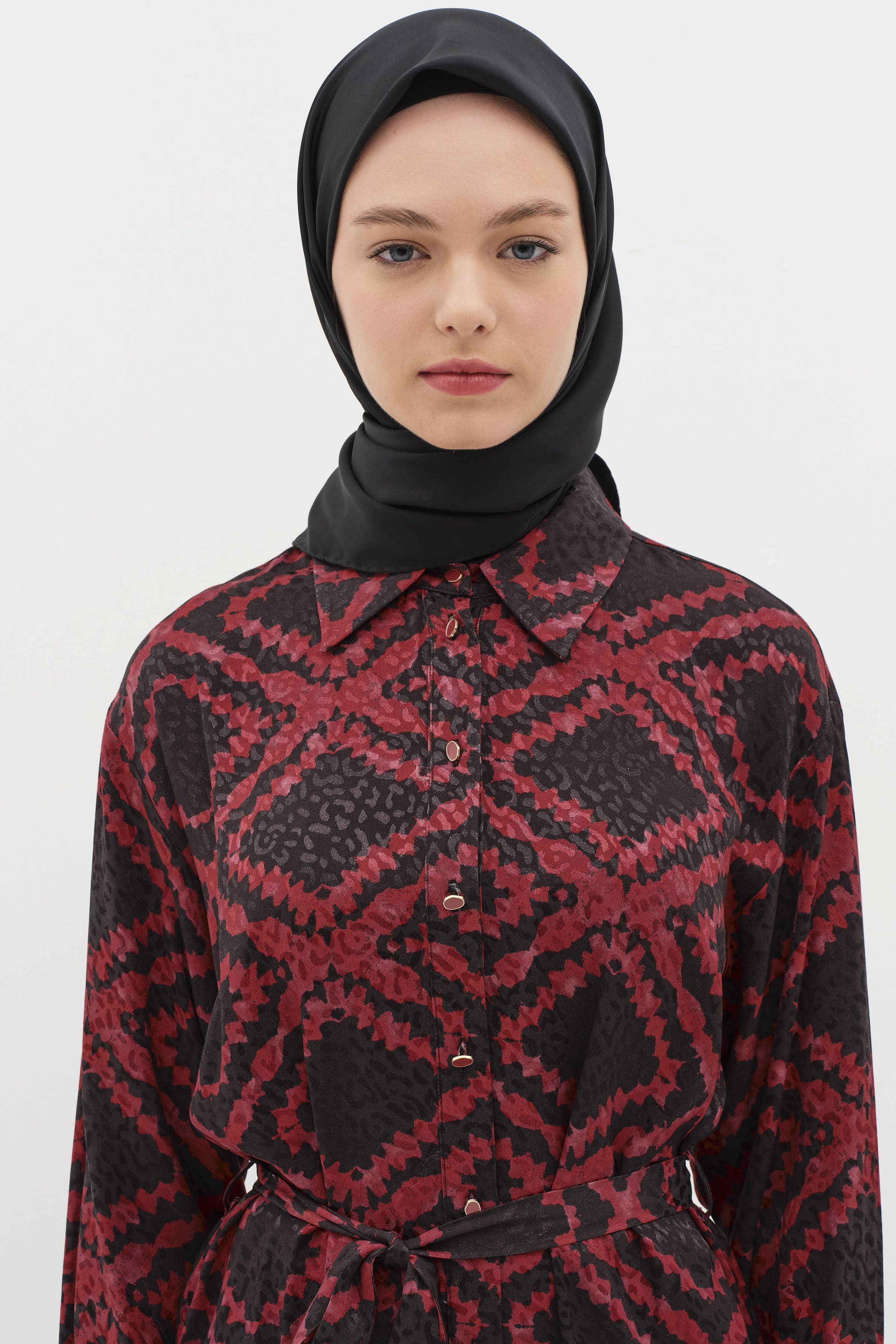 Offering the perfect harmony of elegance and comfort, the belted slit detailed patterned dress is an ideal choice for those looking for elegance and comfort together.