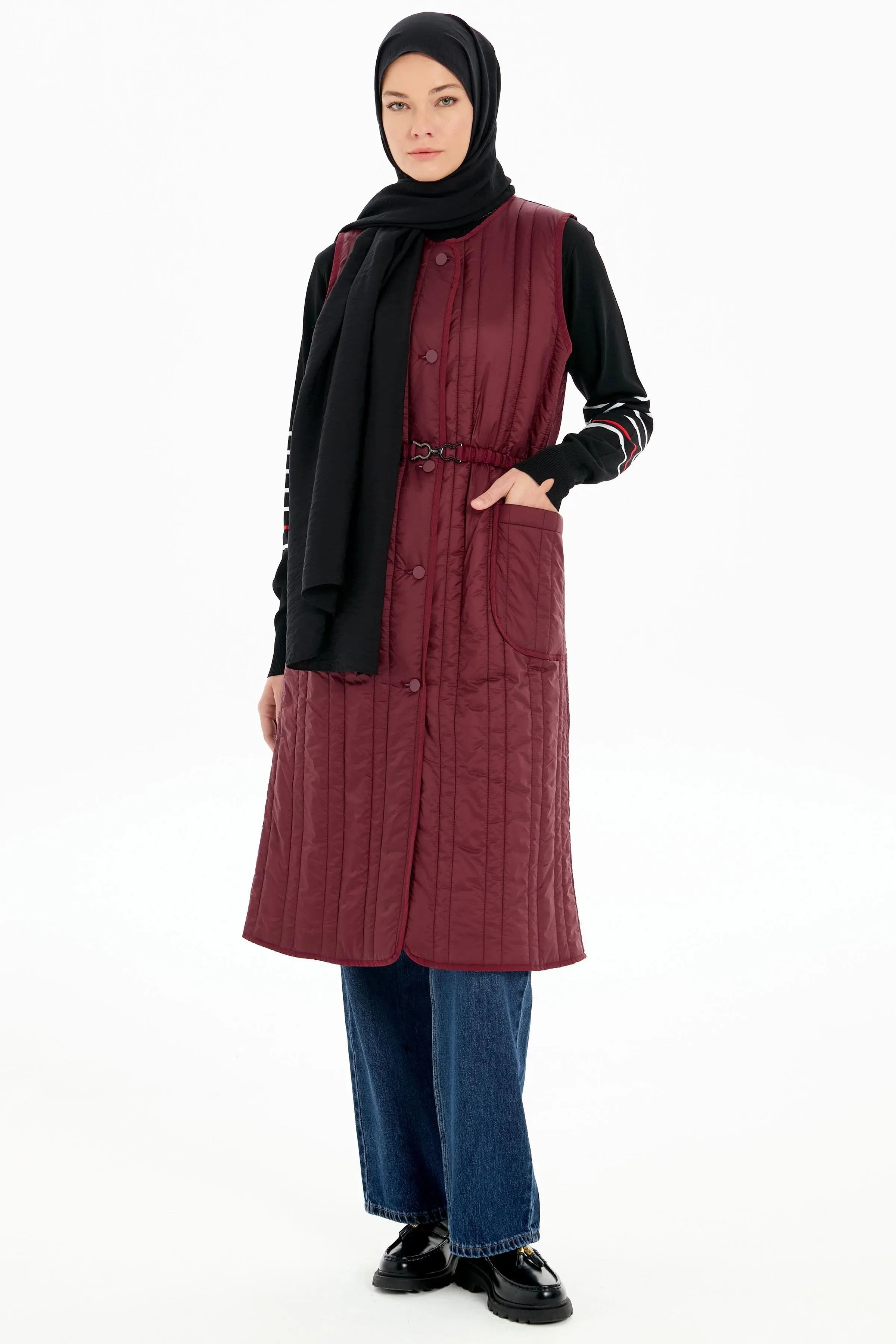 This quilted vest with piping detail stands out with its modern cut and special piping details, while also being very warm.