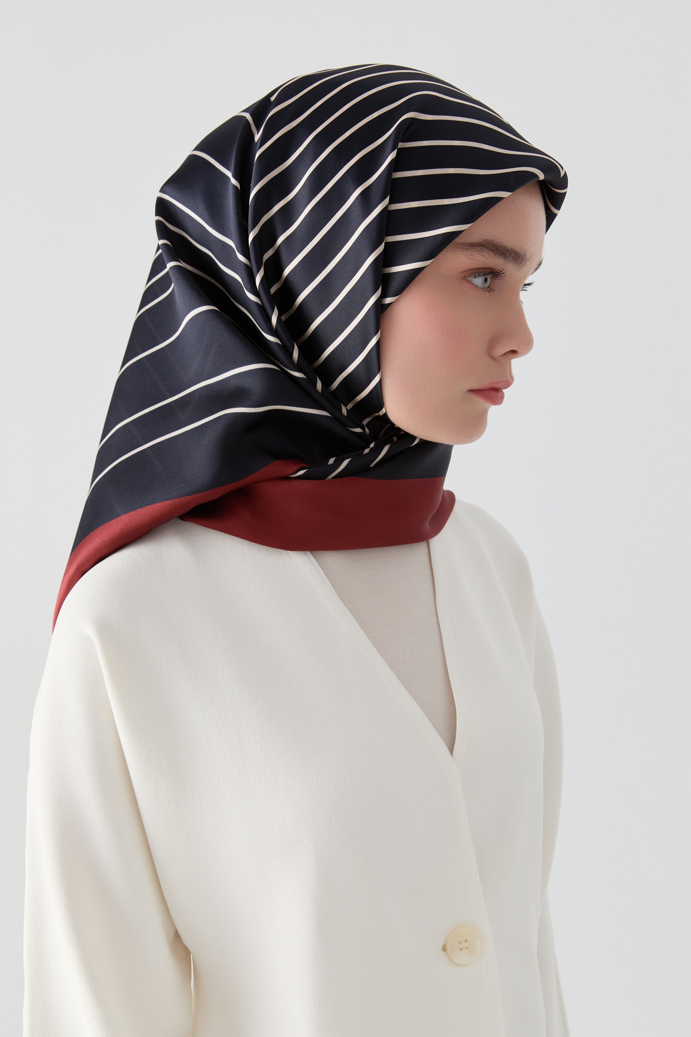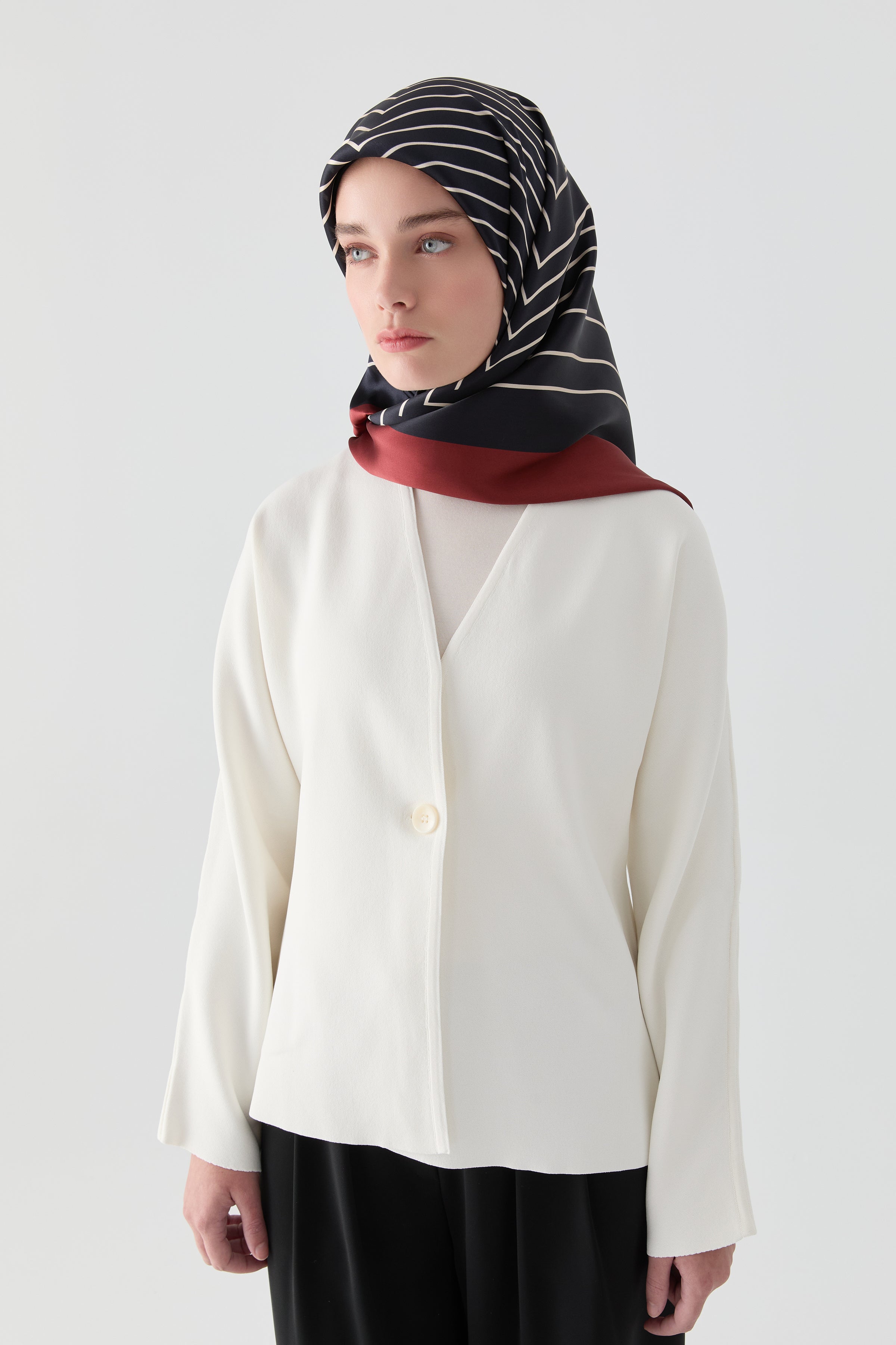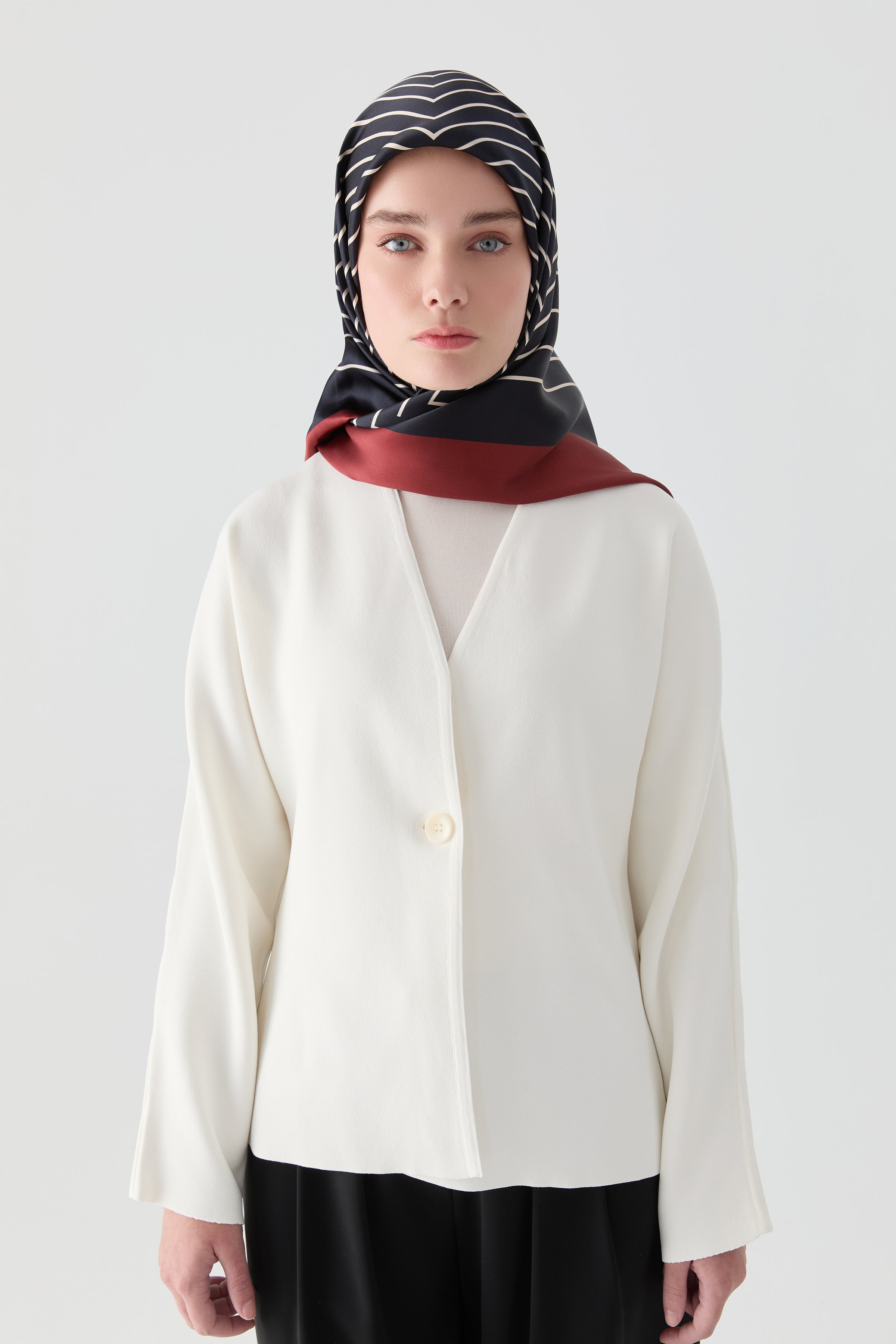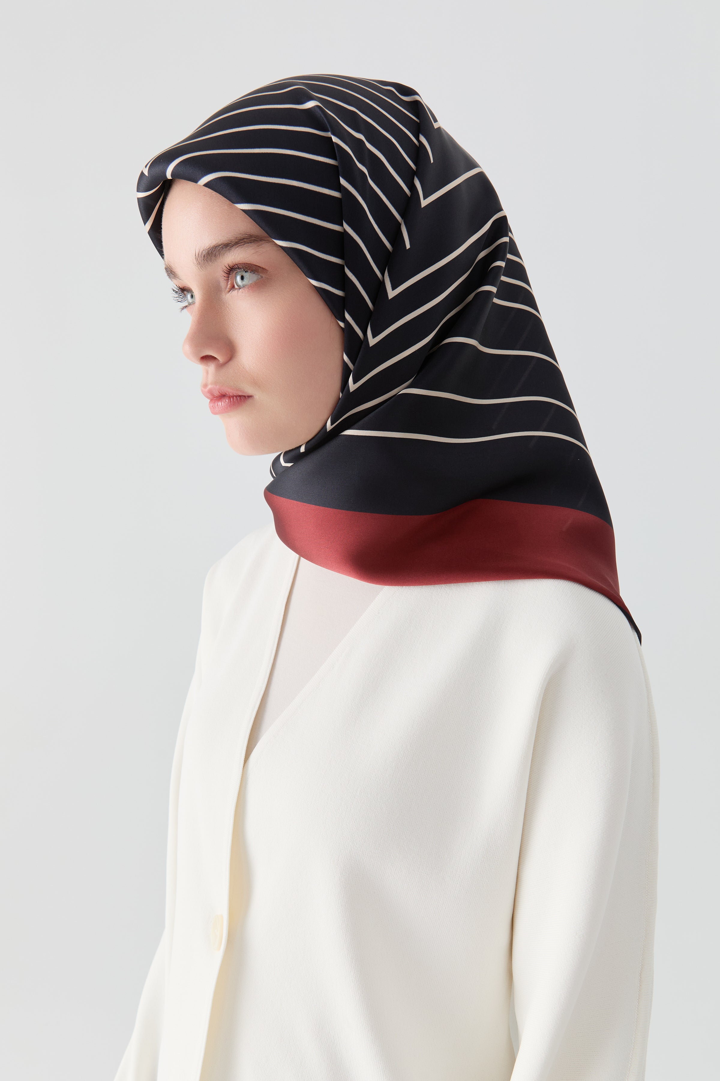 This scarf, distinguished by the natural sheen of its soft Sura silk, conveys the "harmony" concept it takes its name from in every detail. Its fluid texture and vibrant color transitions combine classic elegance with a modern interpretation.