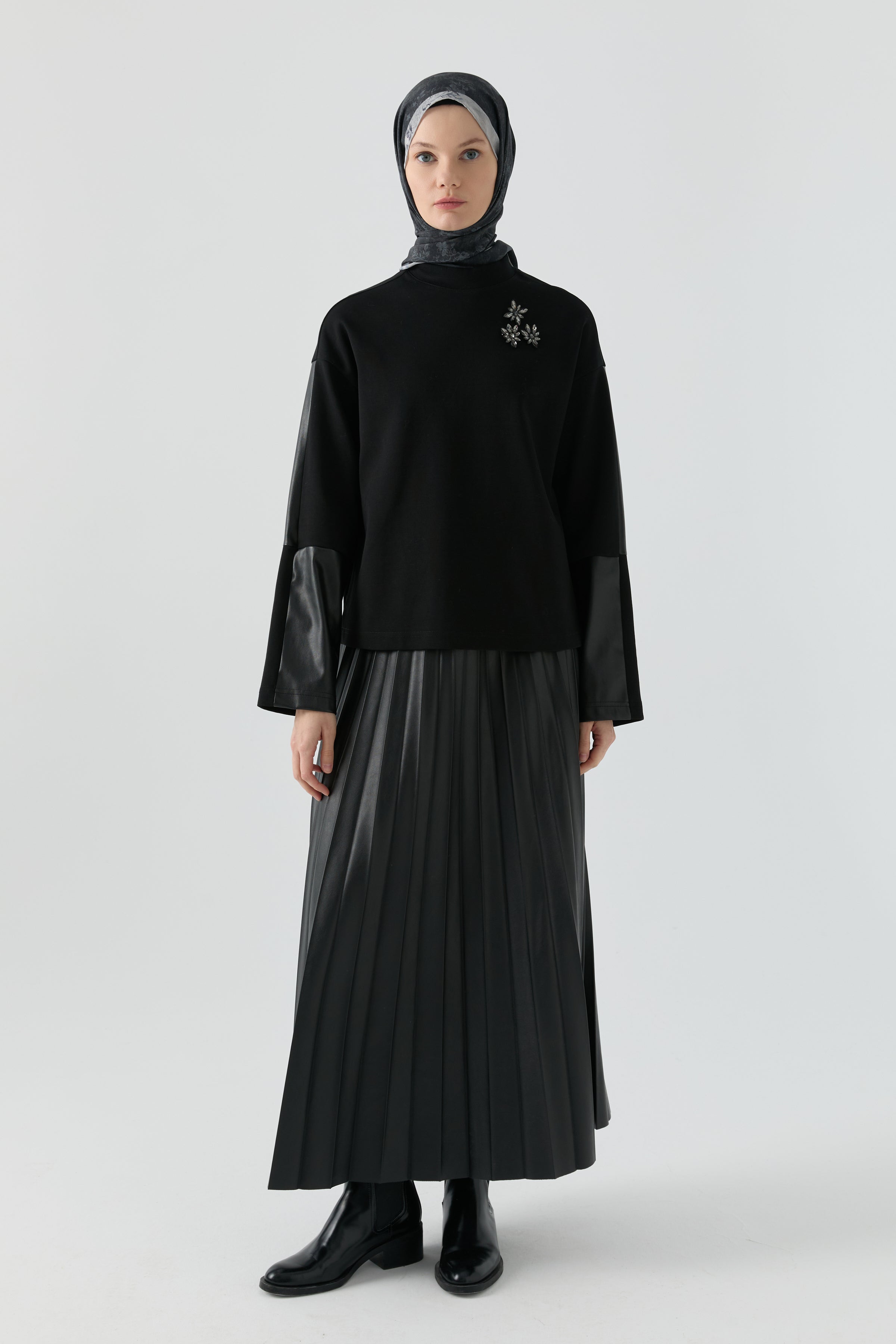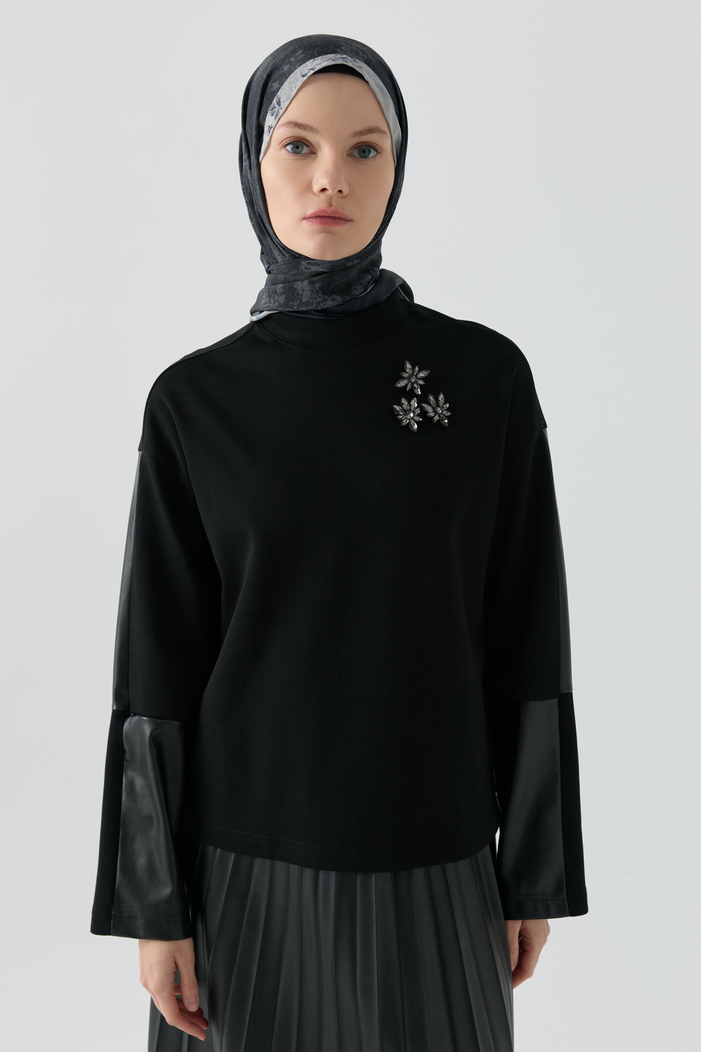 This ensemble, which complements the harmony of the top and bottom pieces with elegant accessory details, adds a modern and sophisticated touch to its simple form. Its fluid texture ensures all-day comfort, while subtle accessory accents add subtle sparkle and character to the design.