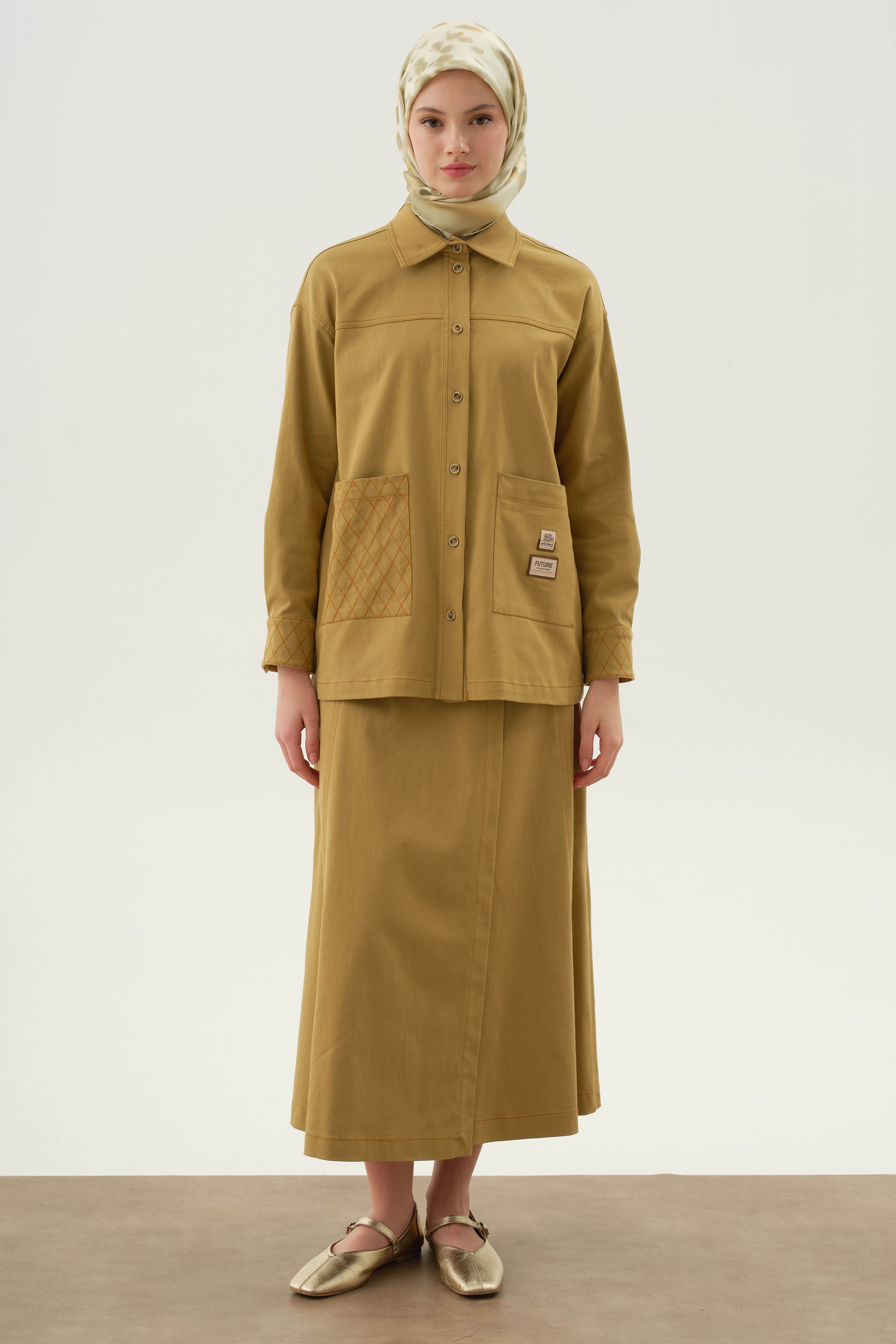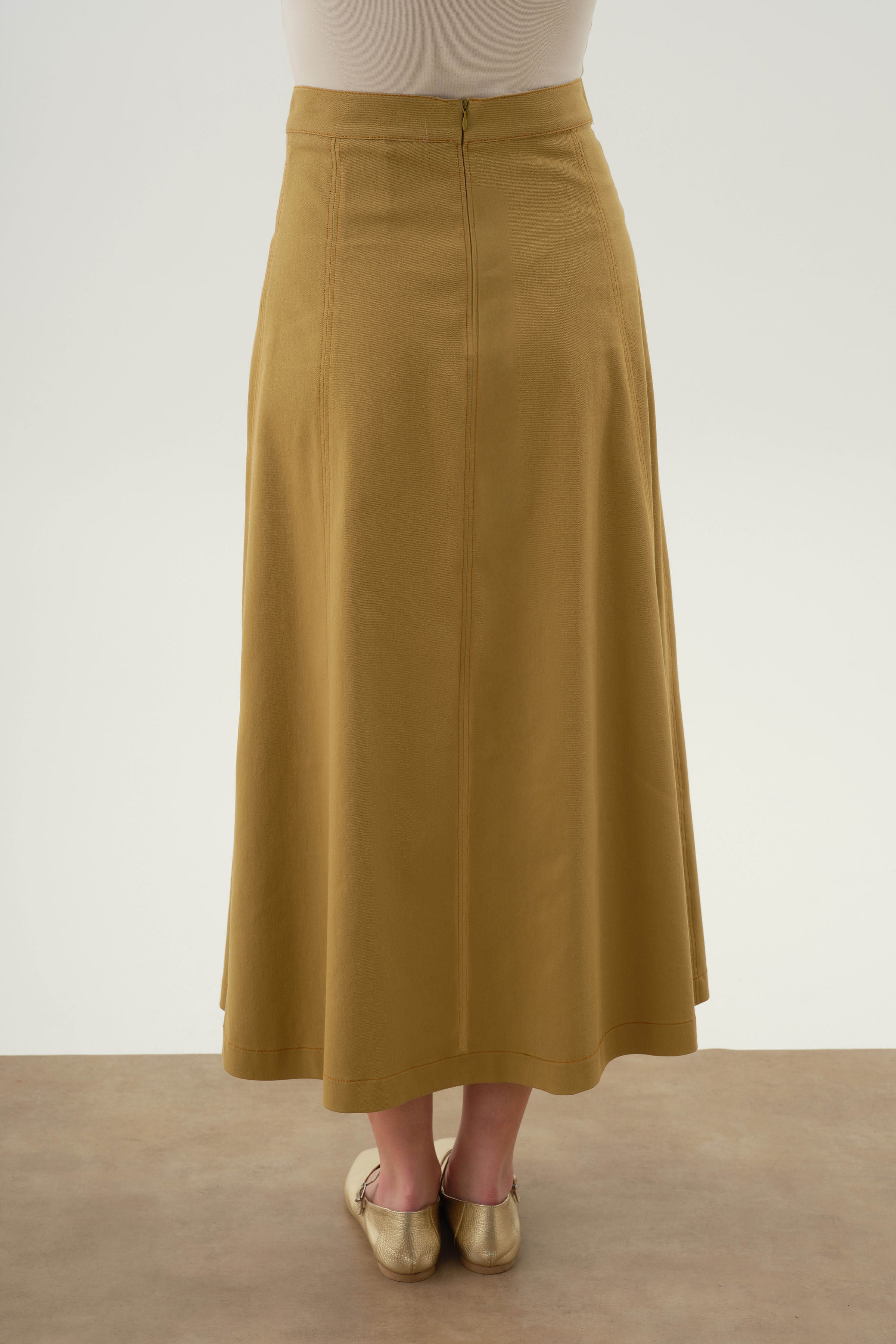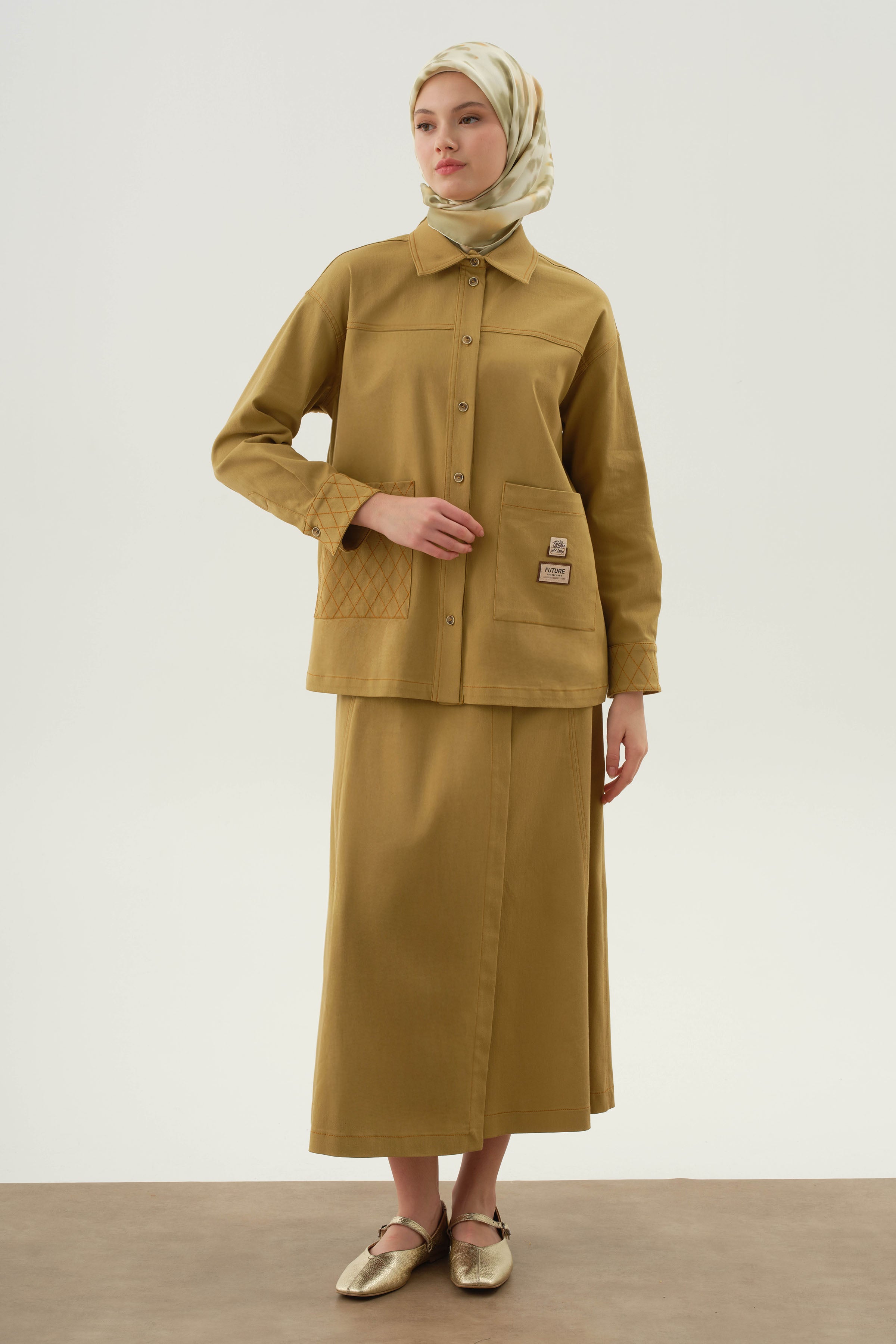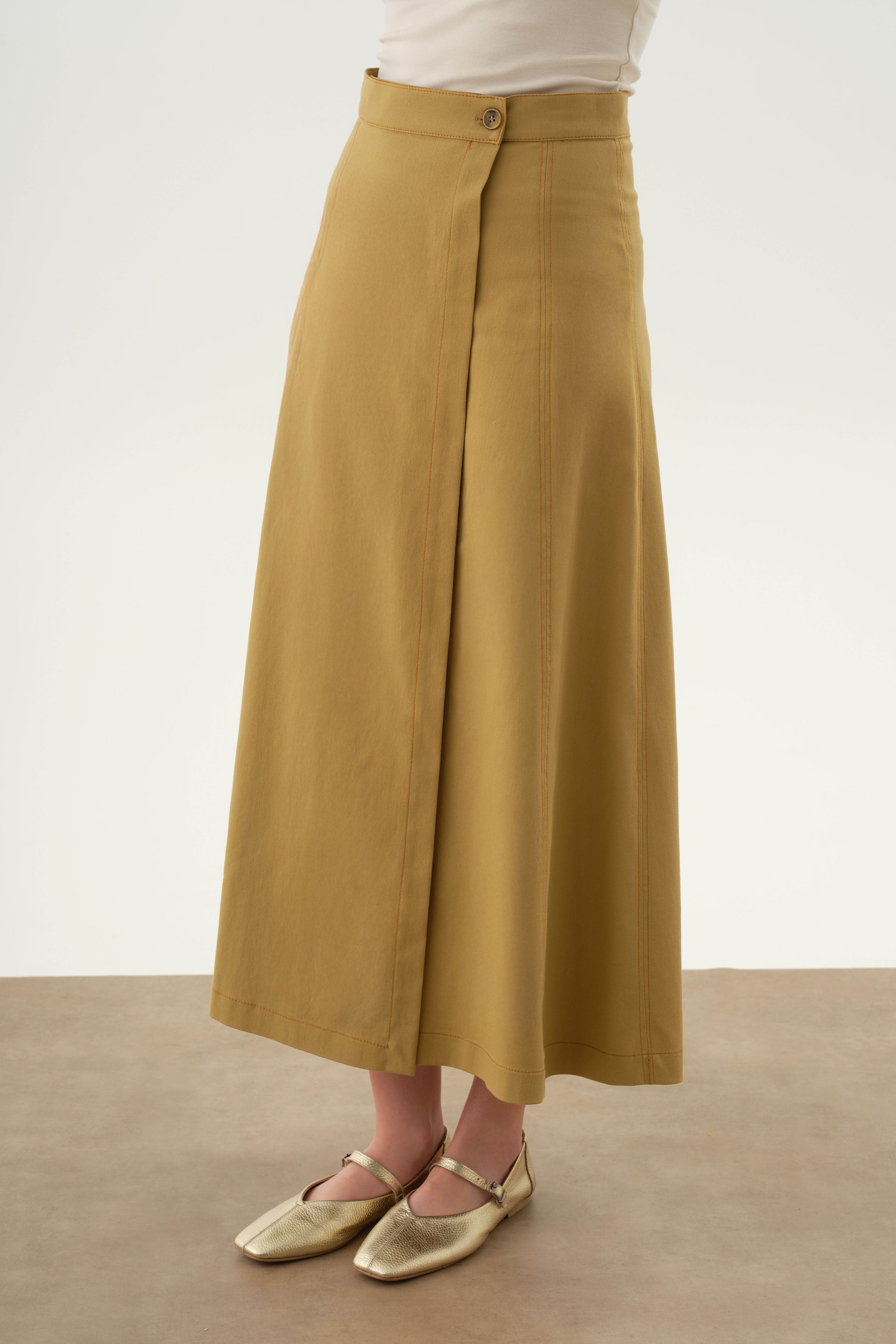 This skirt, which draws attention with its modern wrap closure and pieced design, adds dynamism to your style with its dynamic form. While providing comfort all day long thanks to its comfortable pattern, it easily adapts to different combinations with its stylish look. An ideal piece for both daily and special looks.