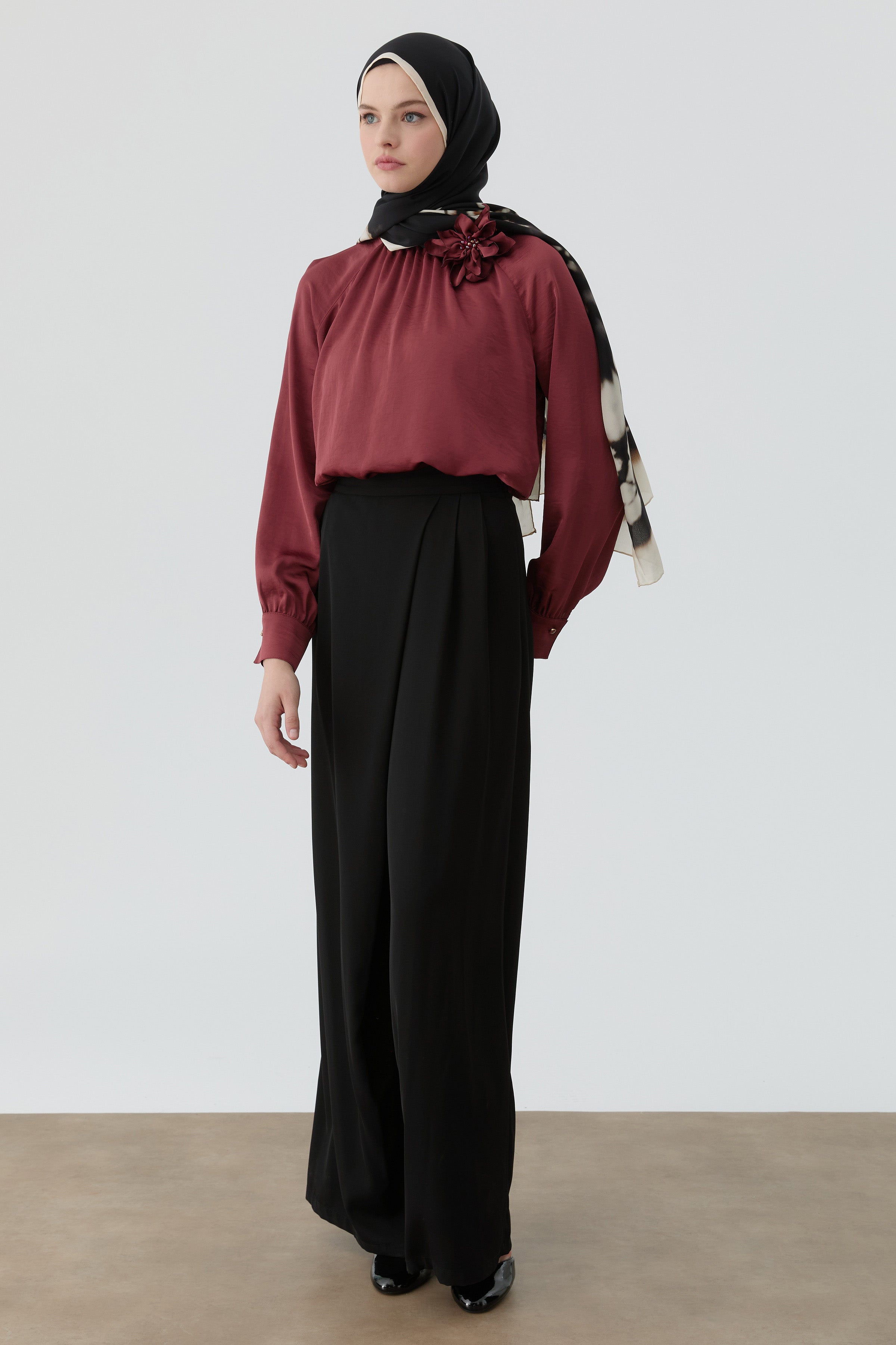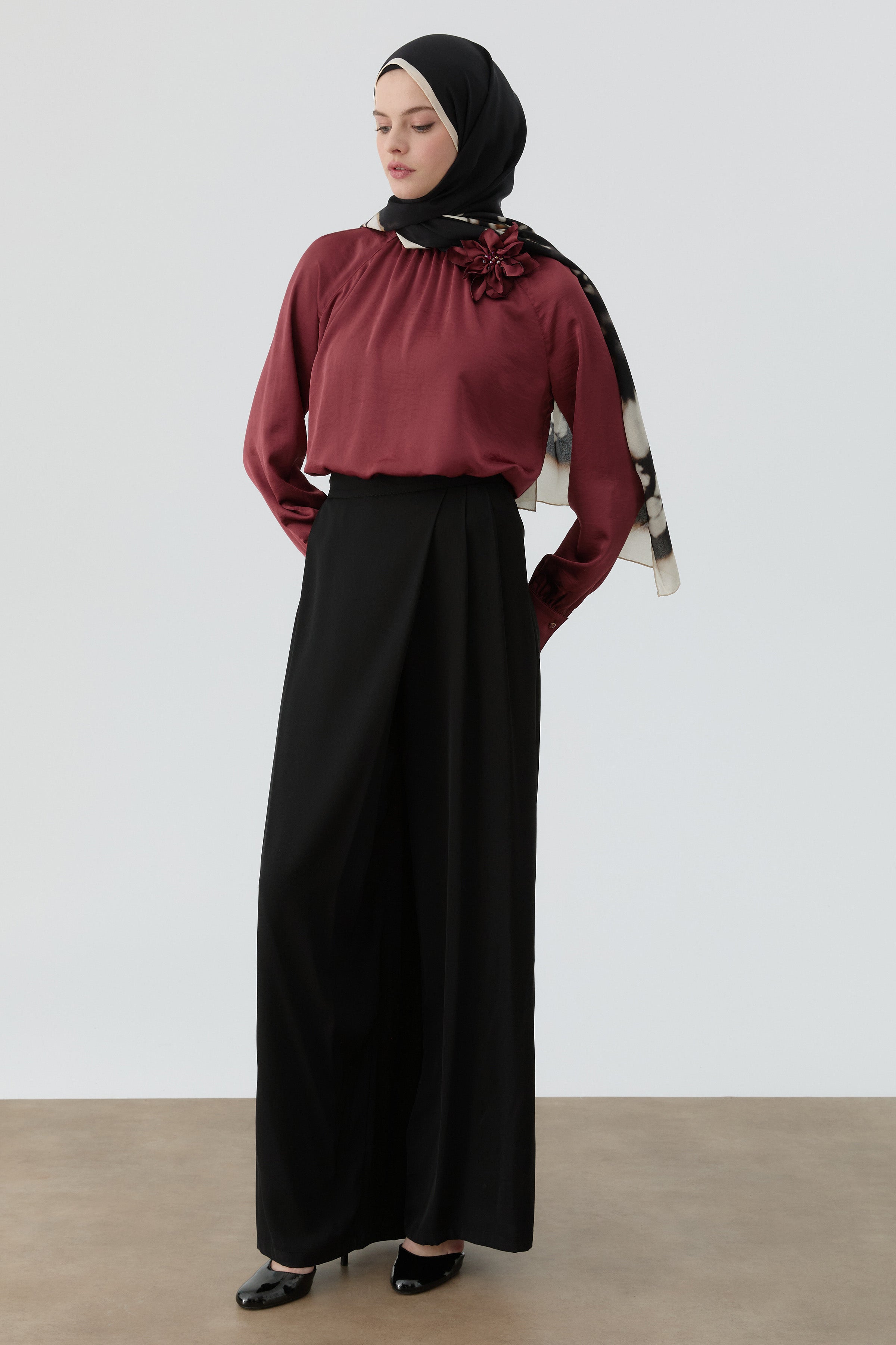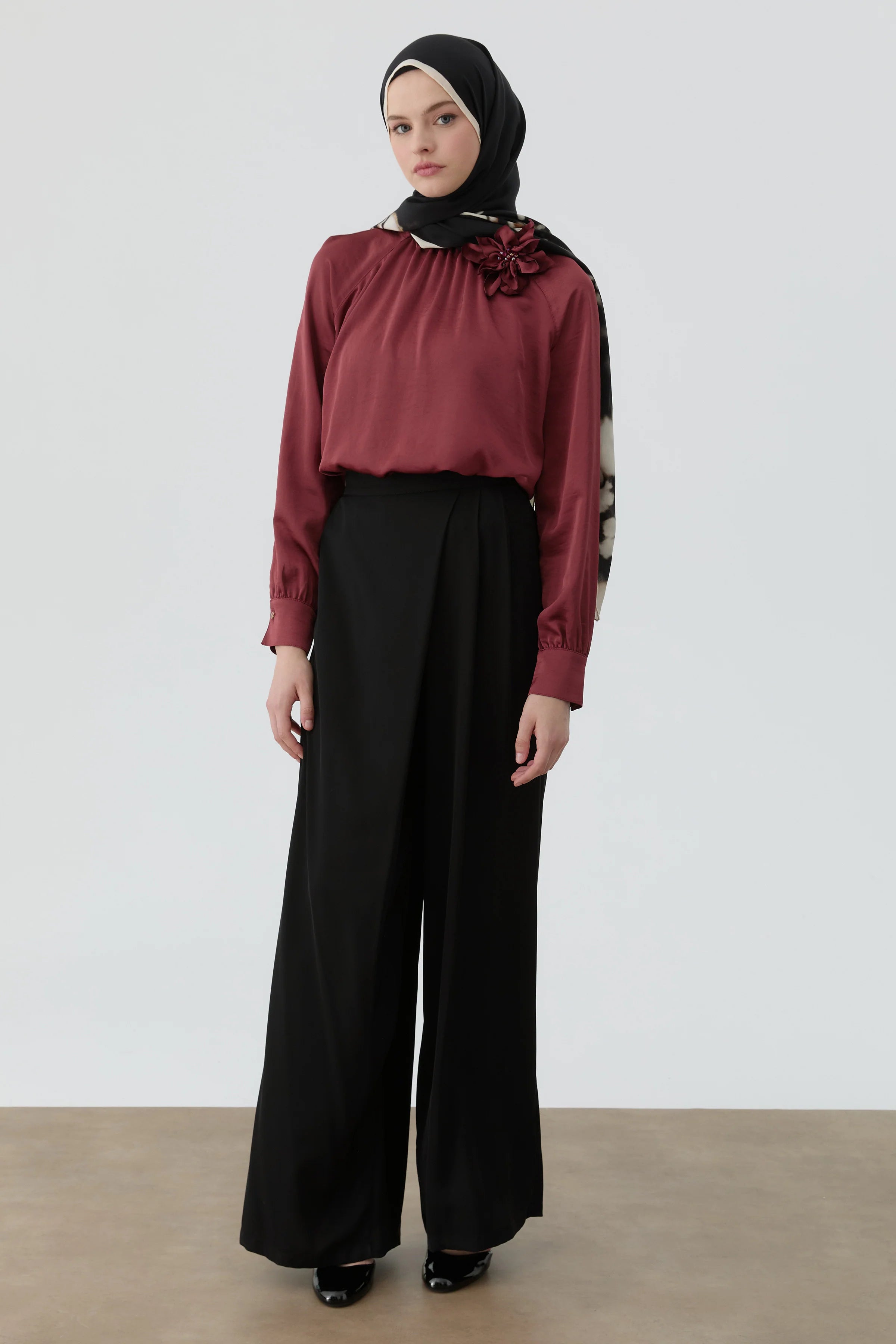 Offering a layered look with its wrap cut, these trousers create a dynamic and fluid silhouette thanks to the pleat details.