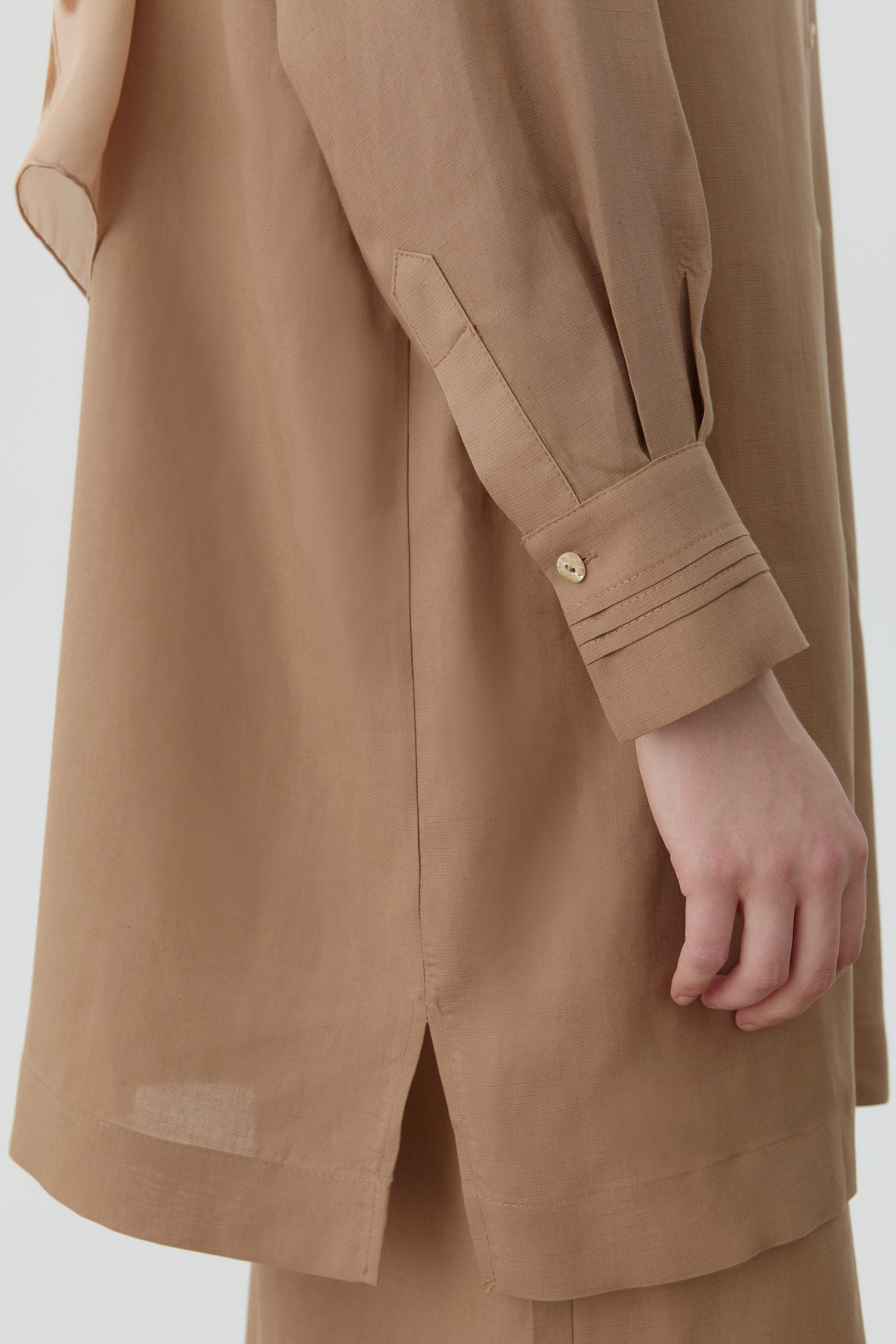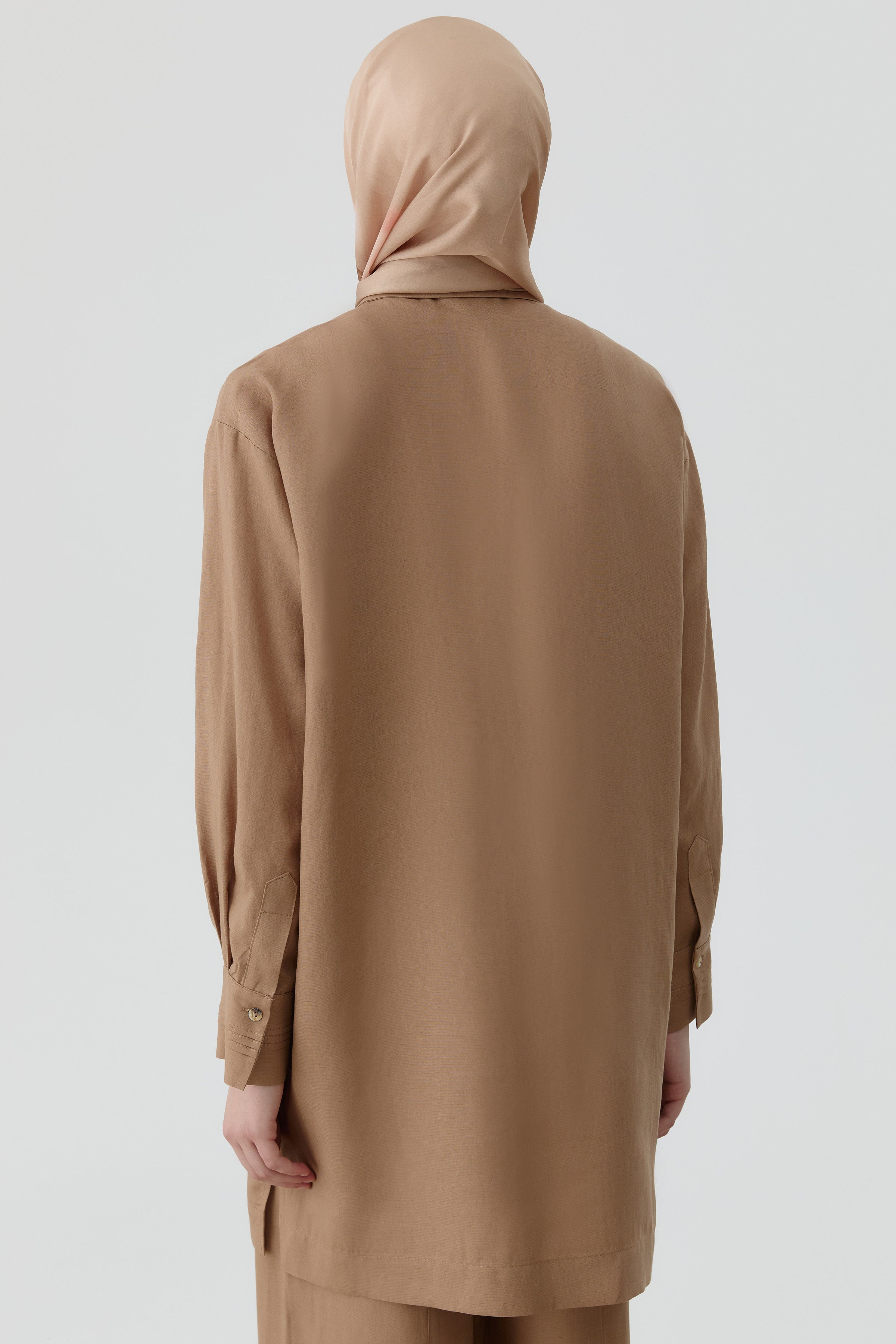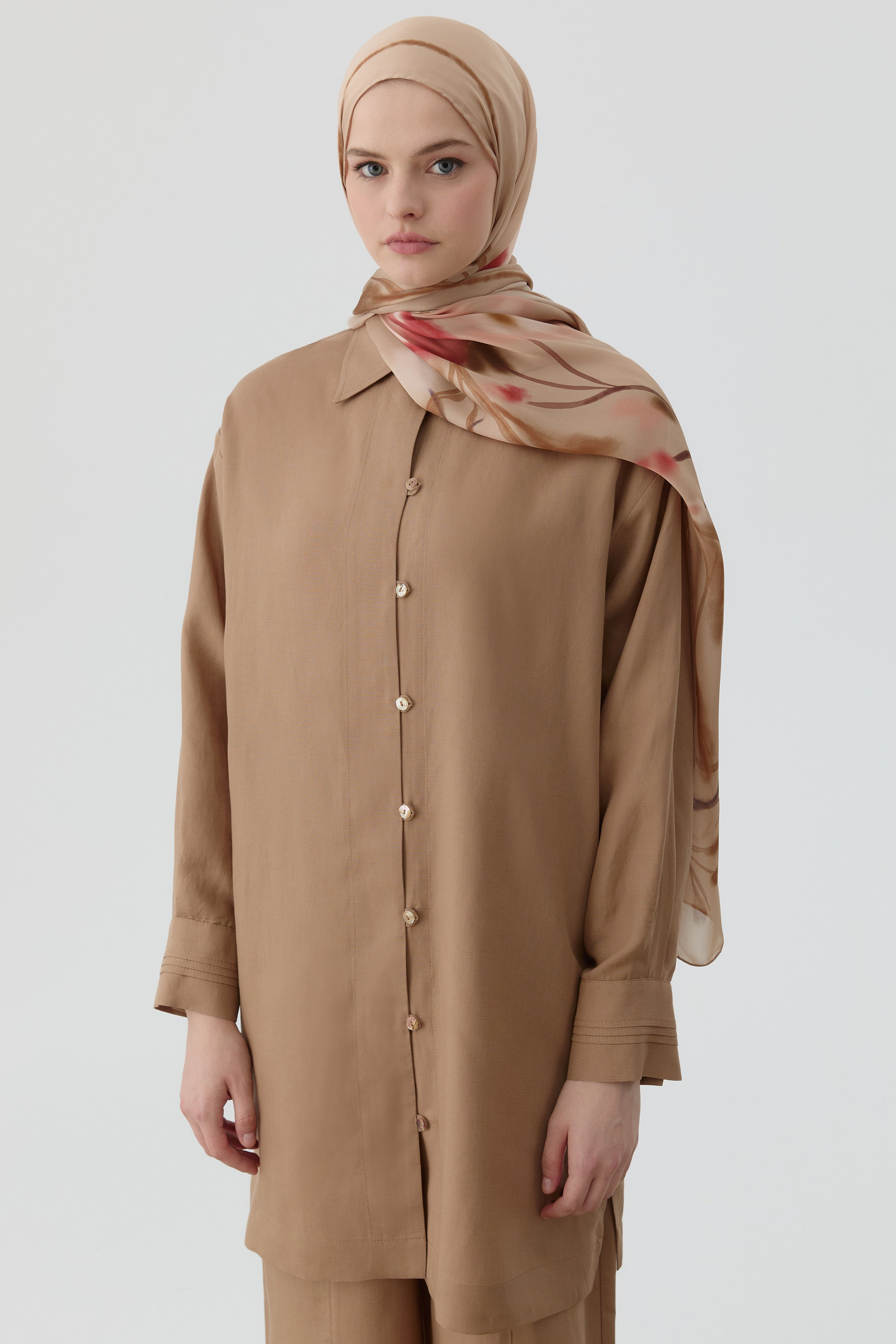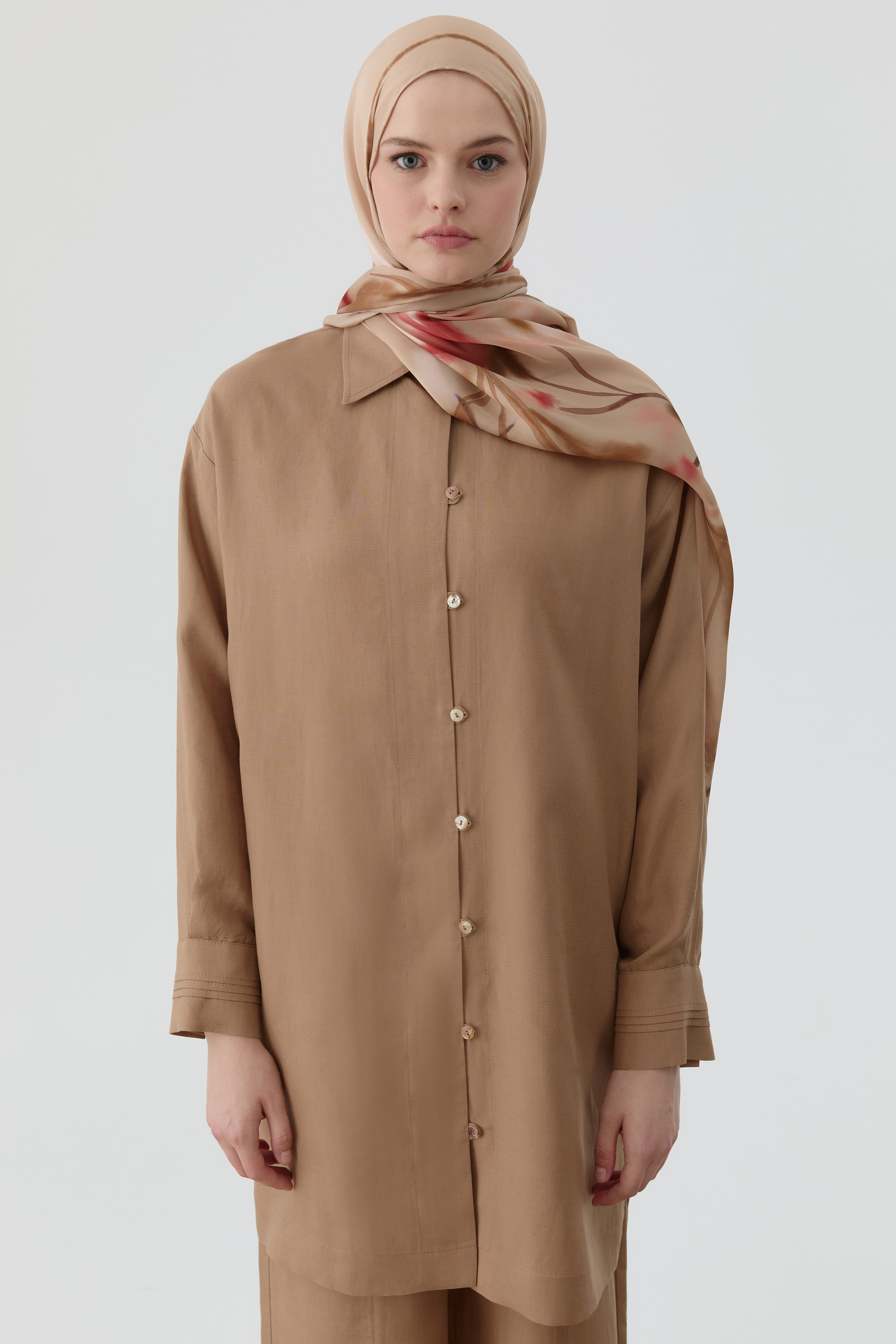 While it creates an elegant silhouette thanks to its flowing structure, it easily adapts to casual and urban combinations.