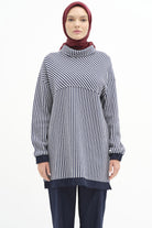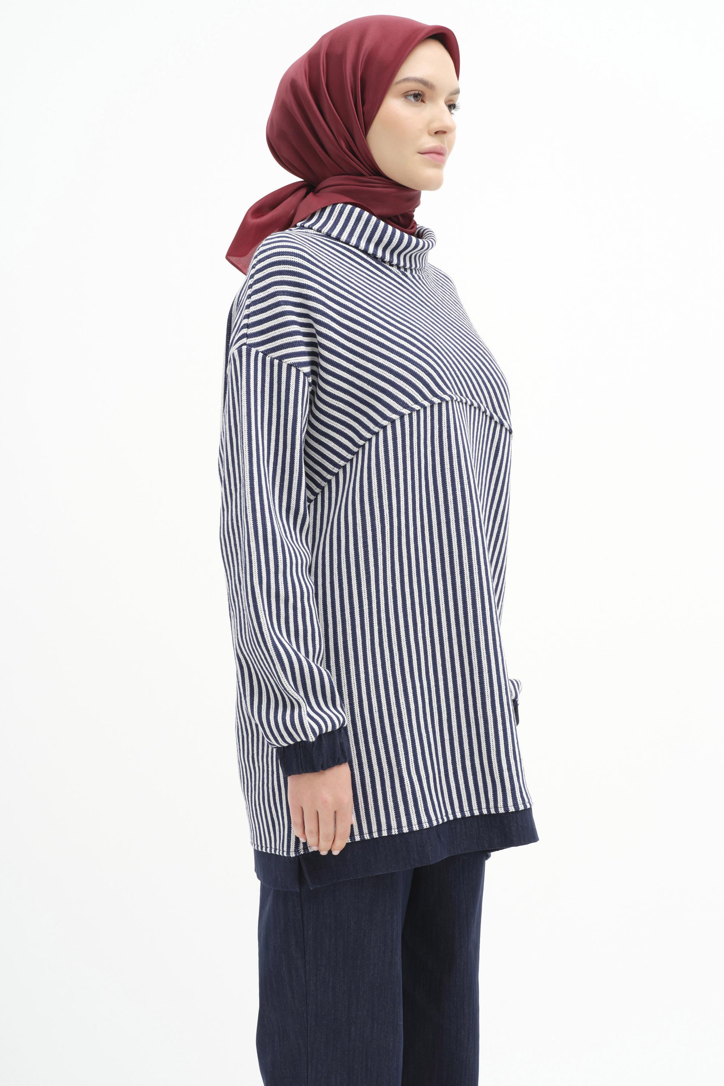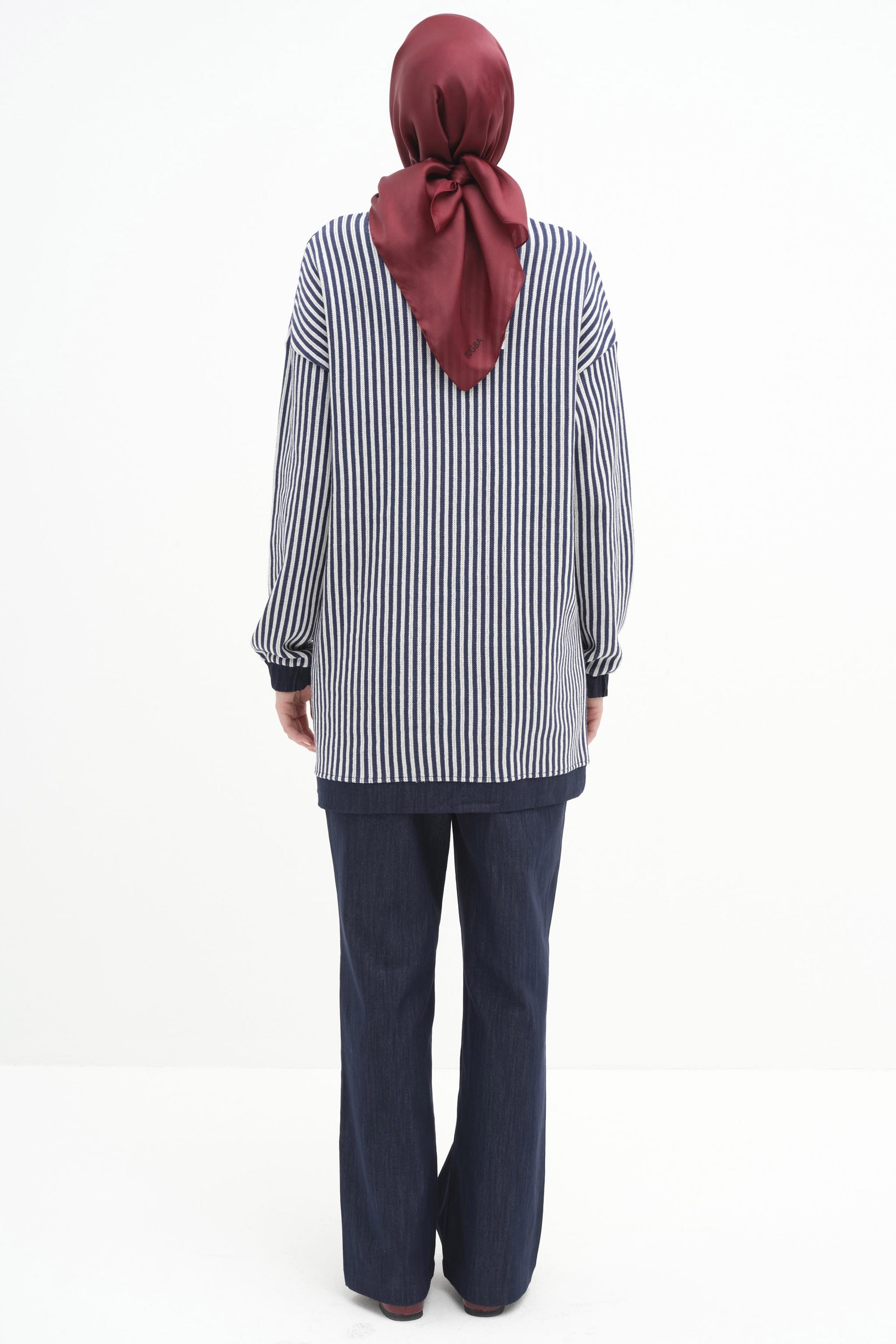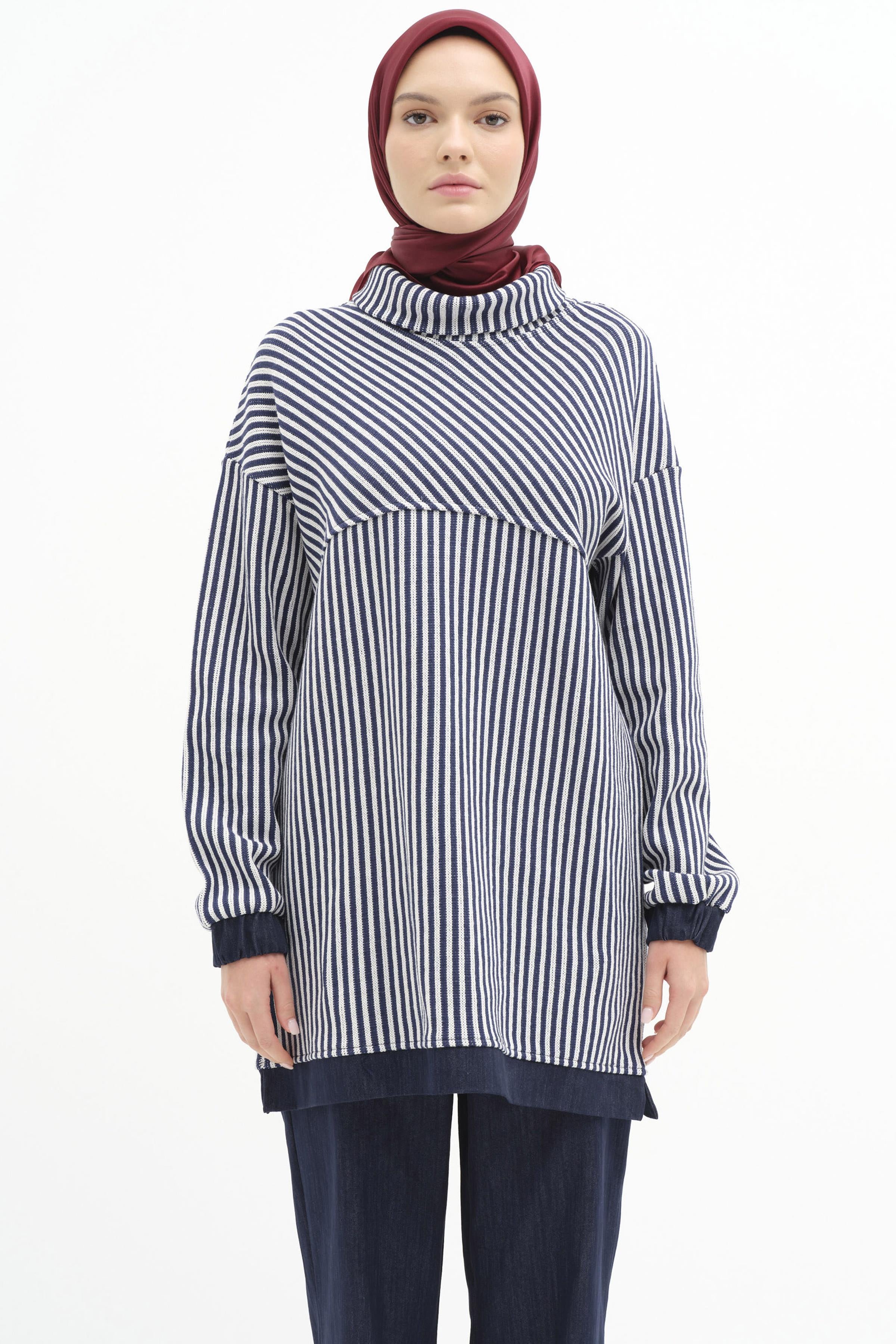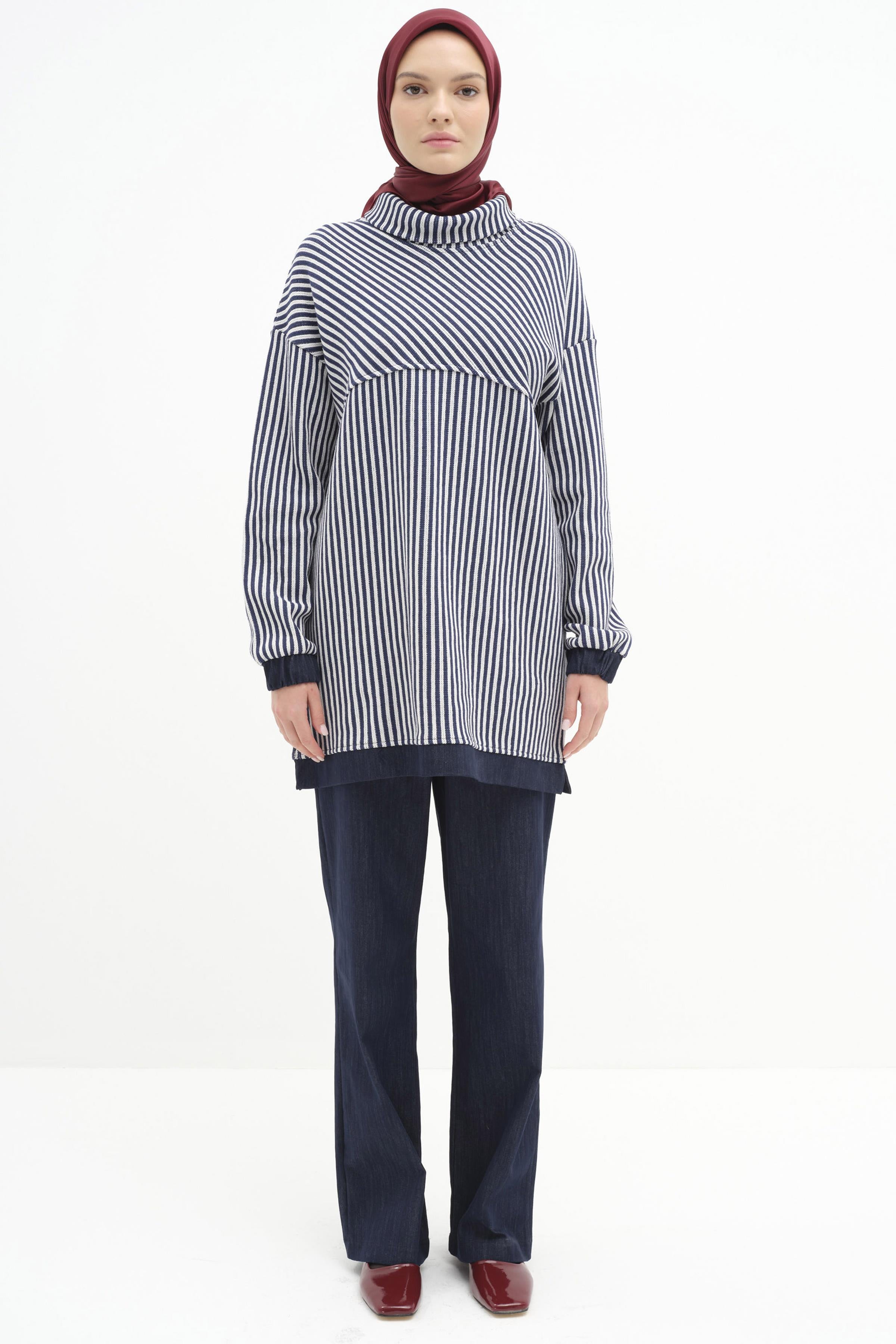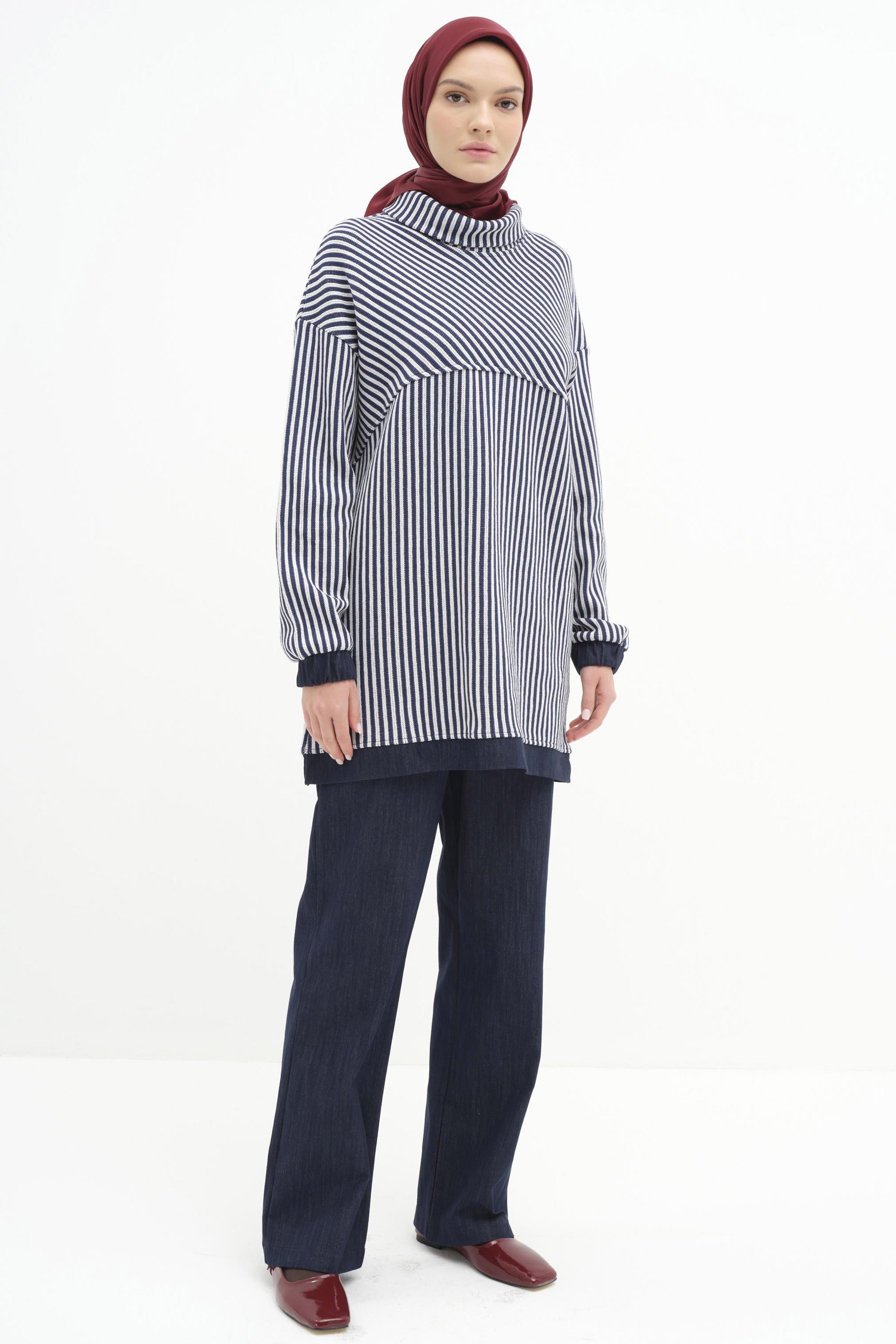 The Striped Tunic and Pants Set offers a modern and elegant look with its dynamic stripe pattern. The tunic provides comfort with its relaxed fit, while the matching pants complete your stylish look.