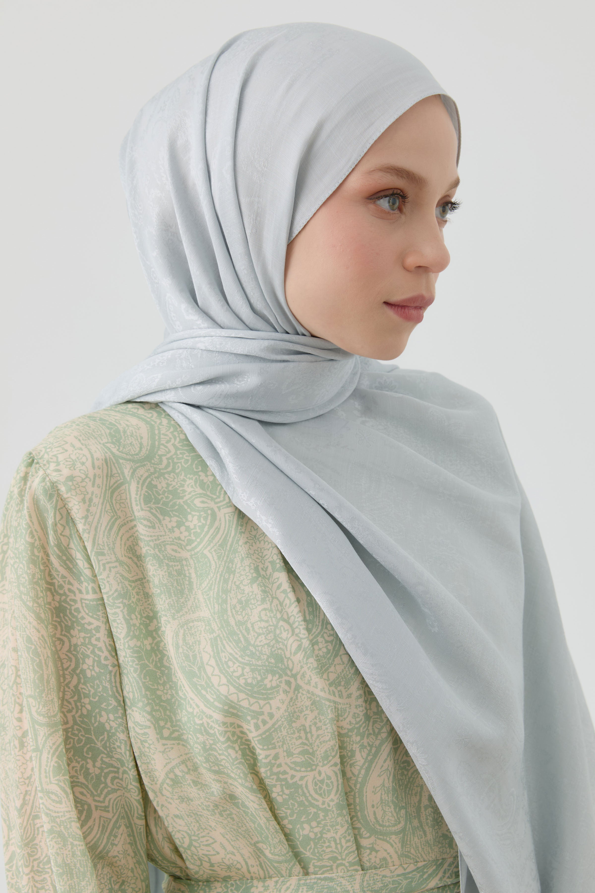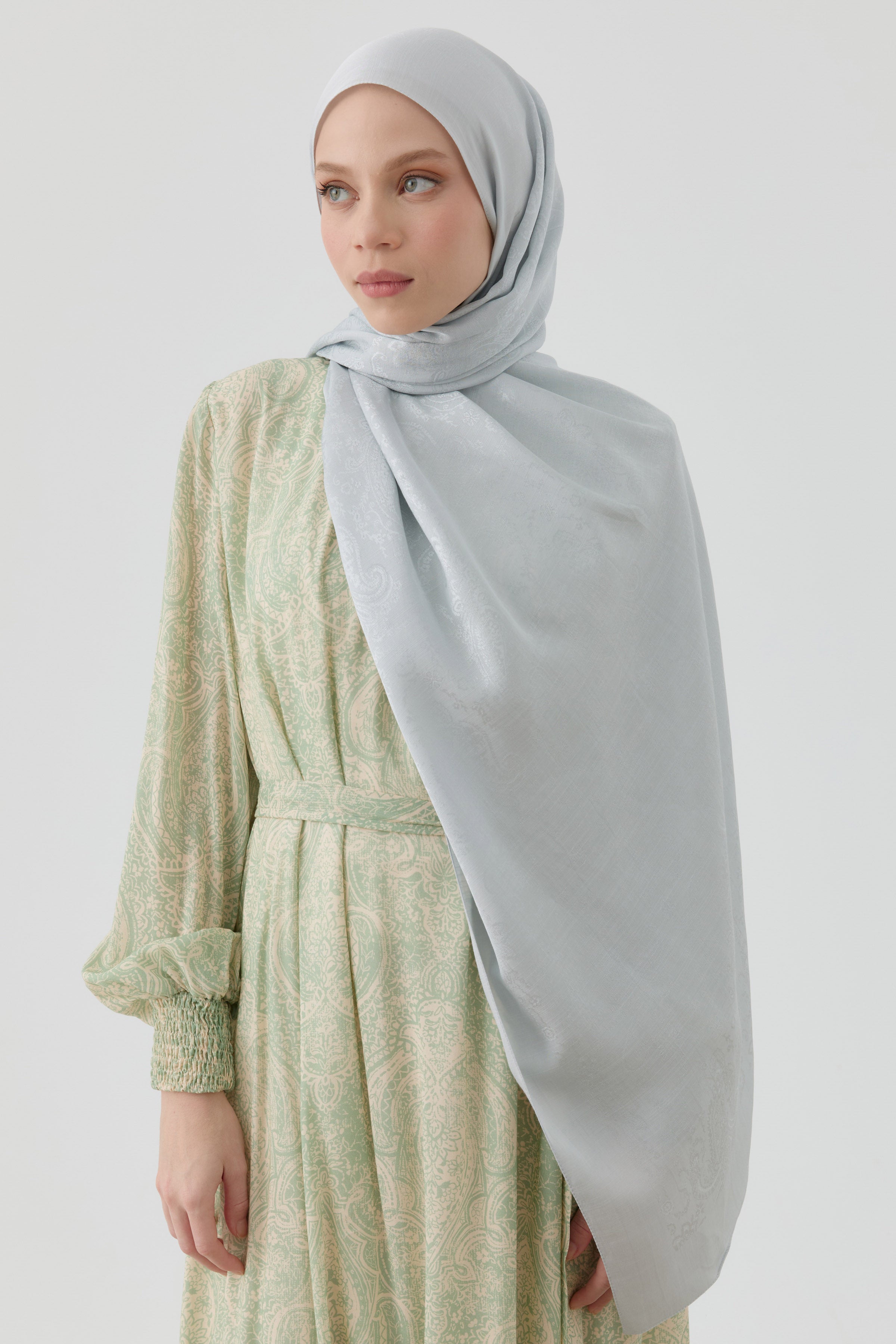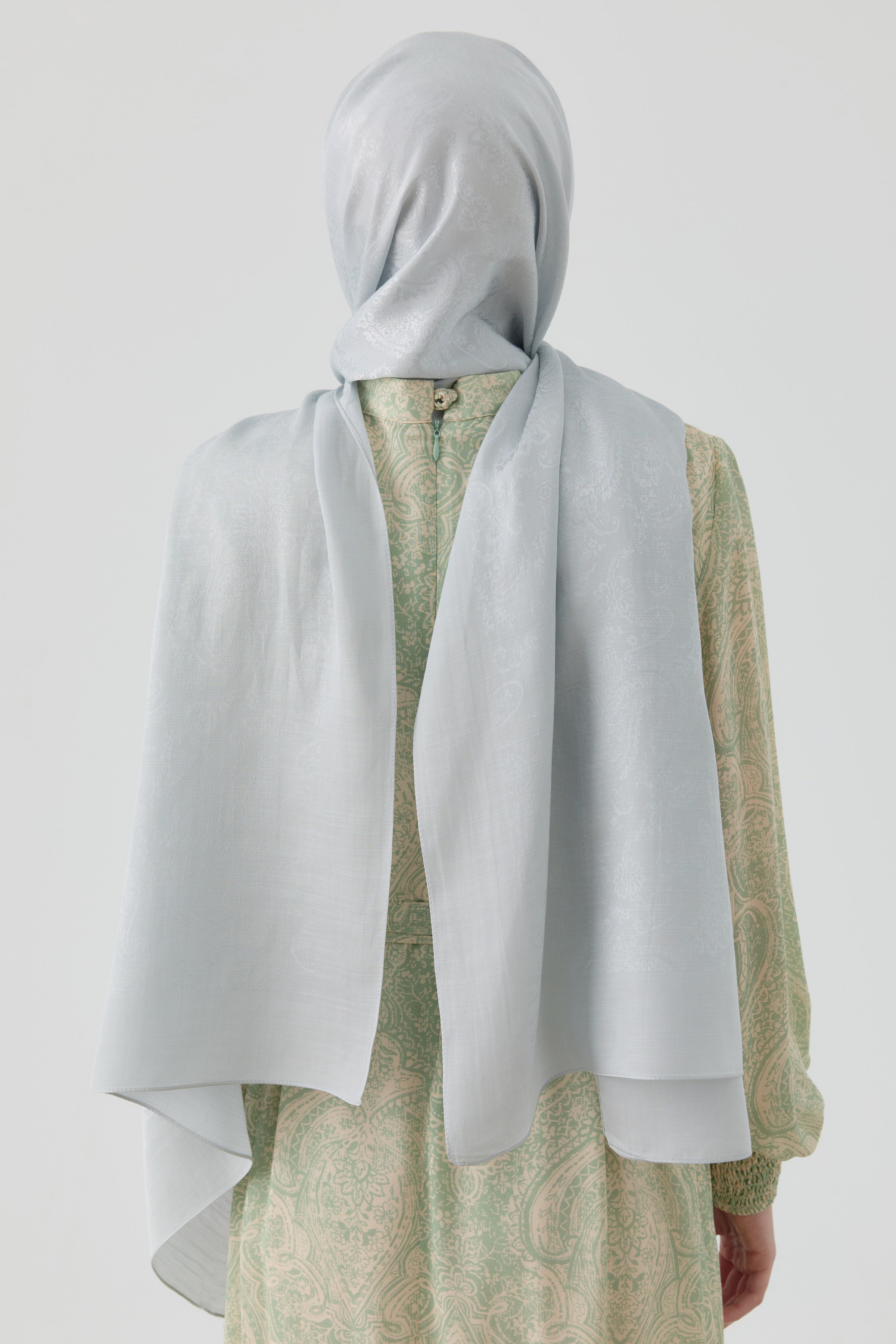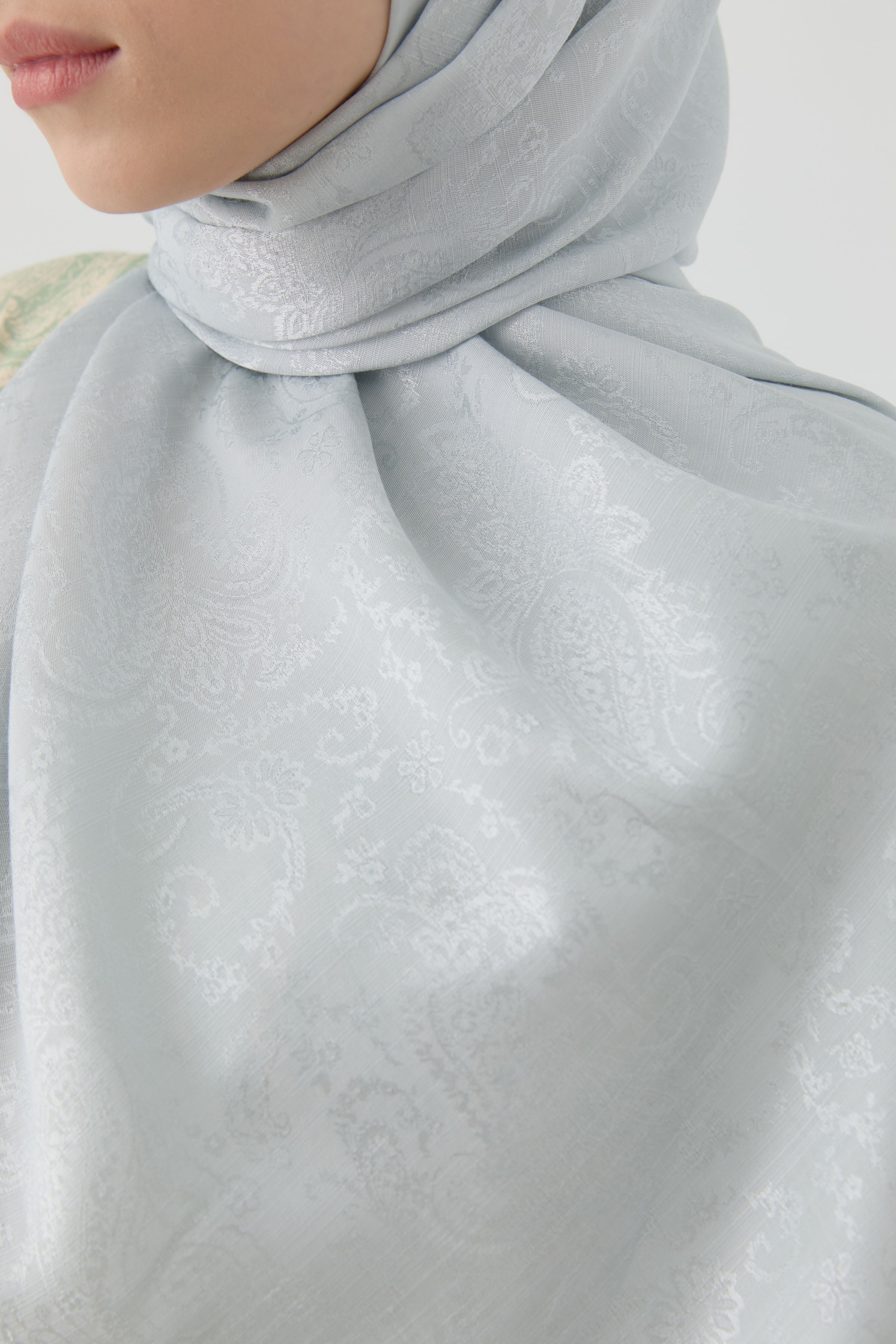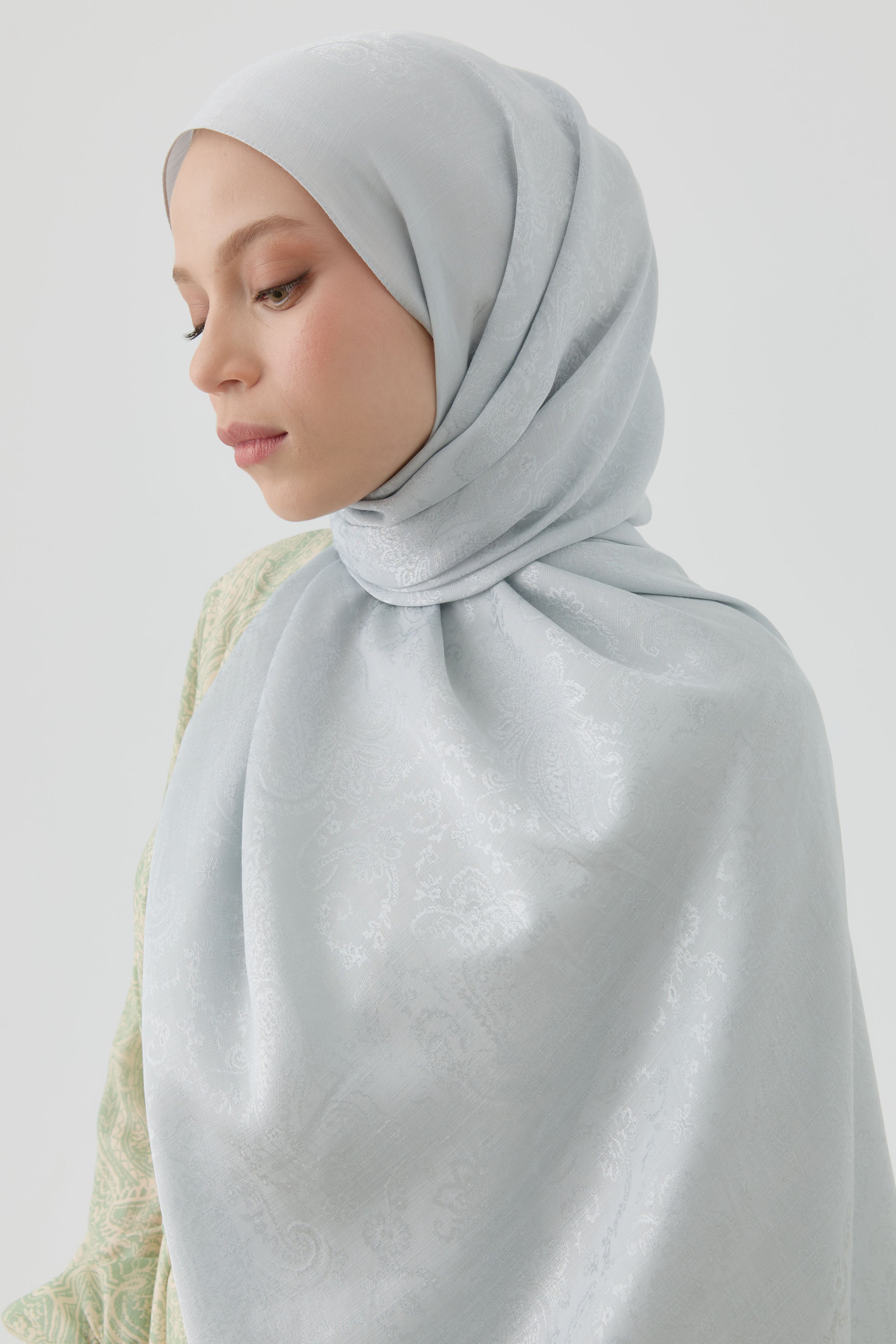 Nida Natural Shawl with Ethnic Shawl Pattern - Silver