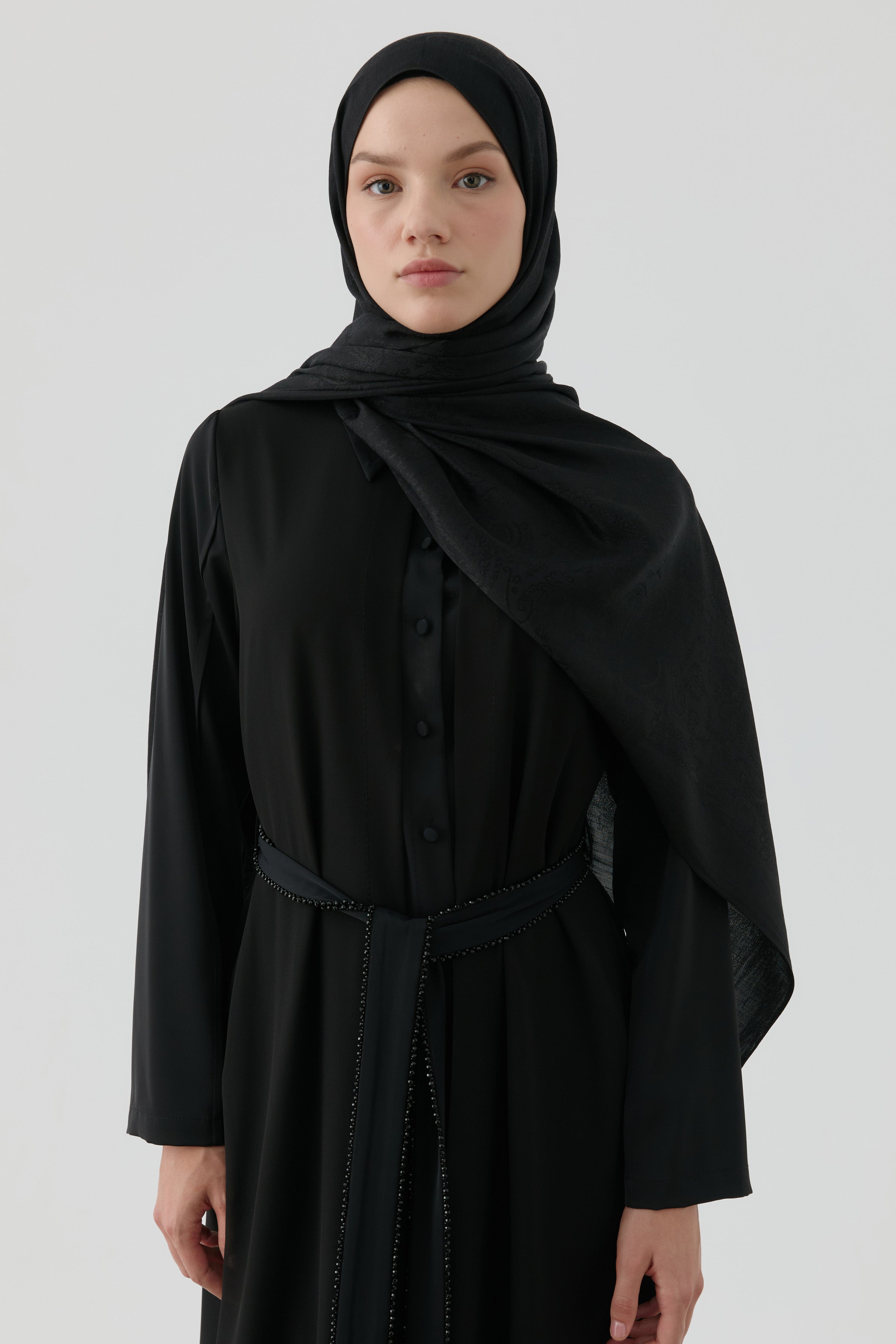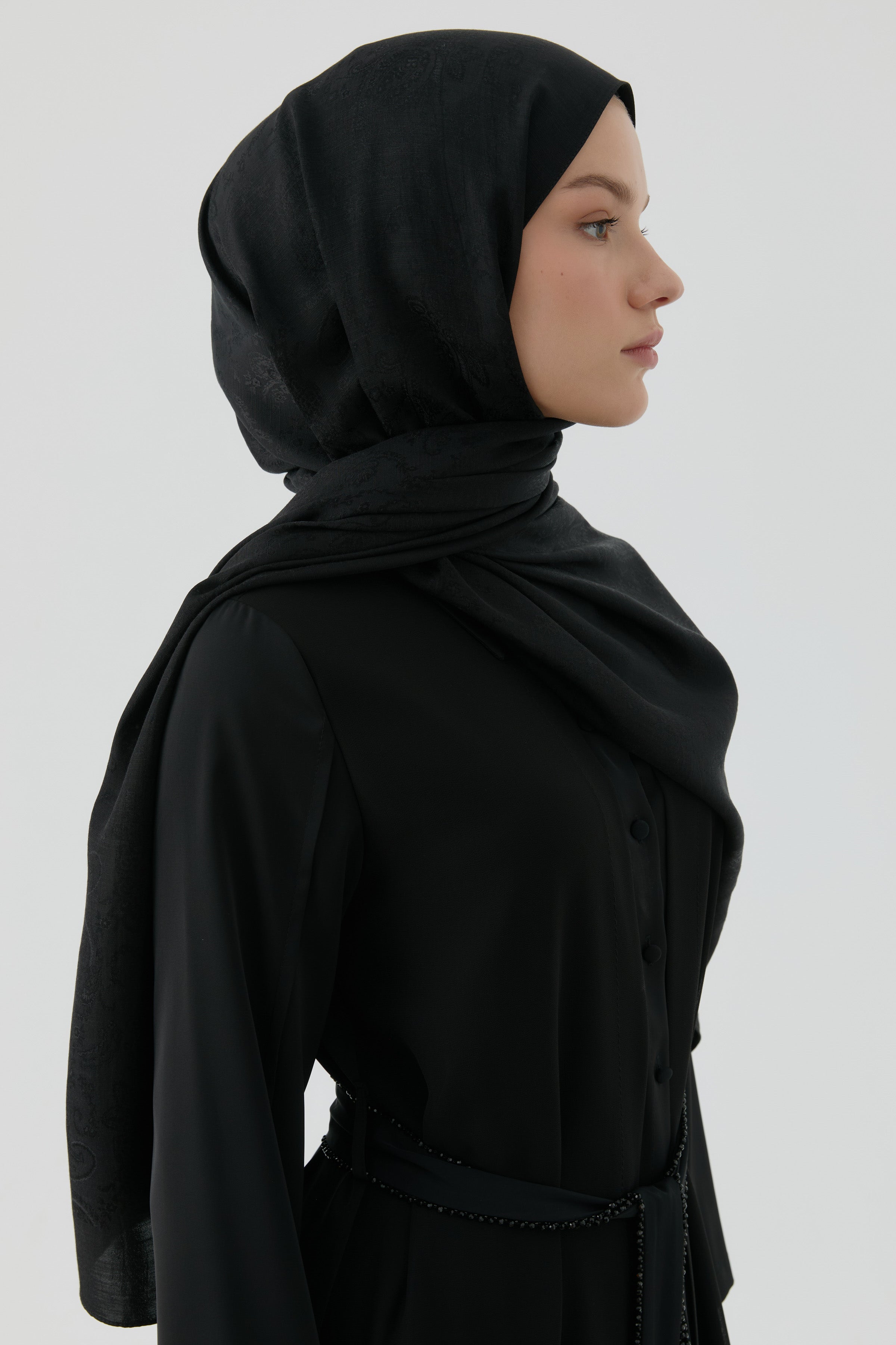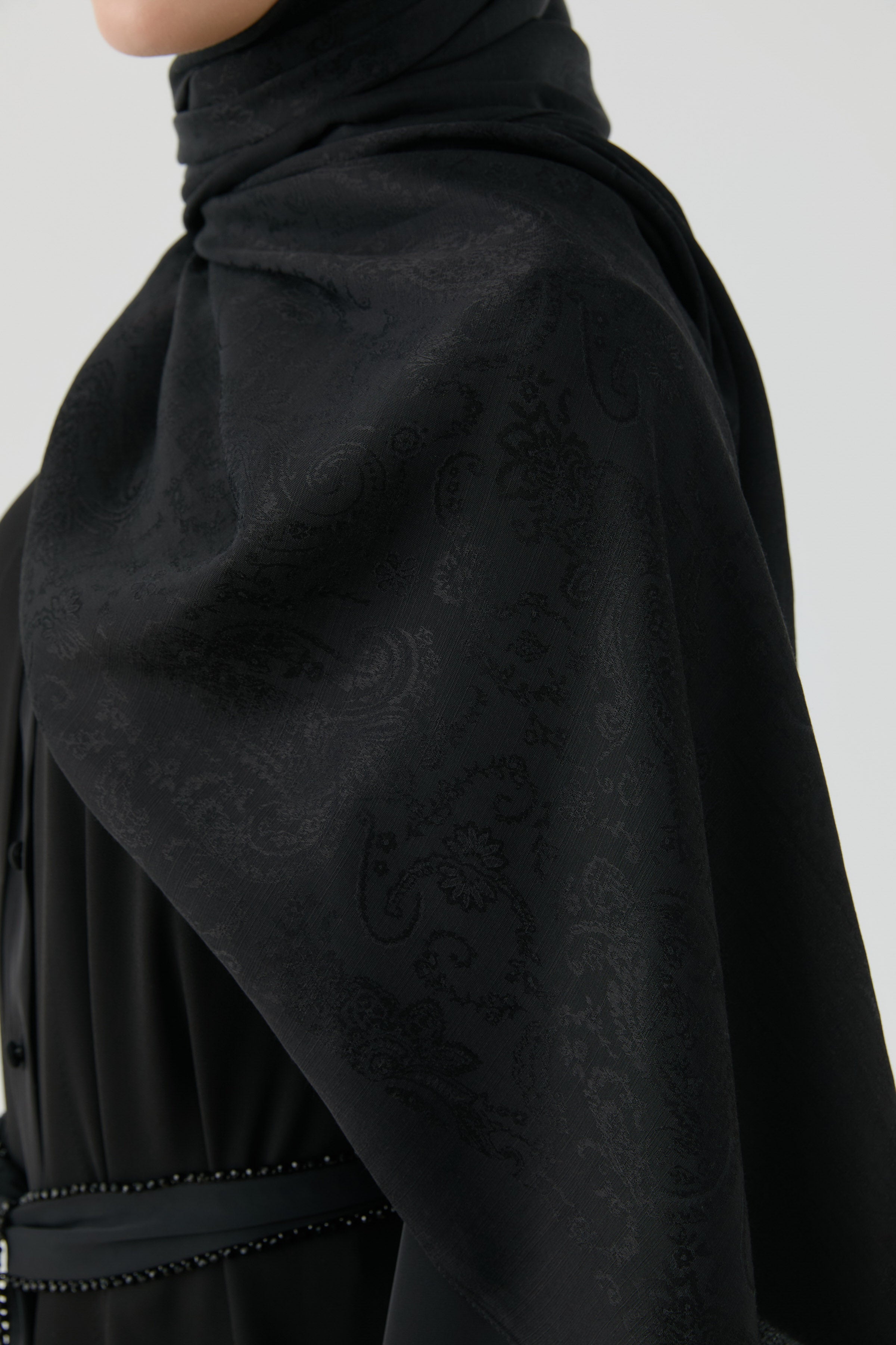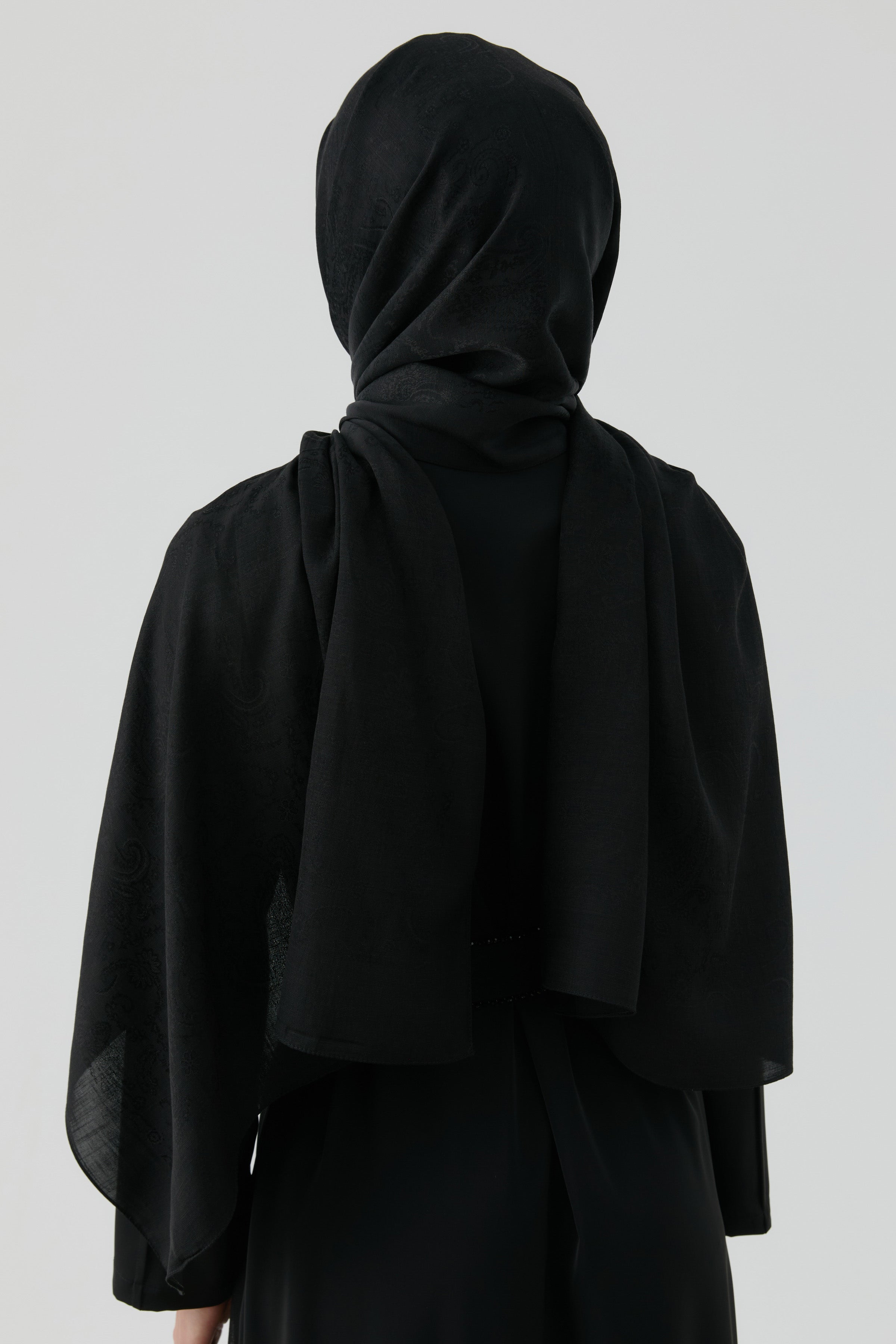 Nida Natural Shawl with Ethnic Shawl Pattern - Black