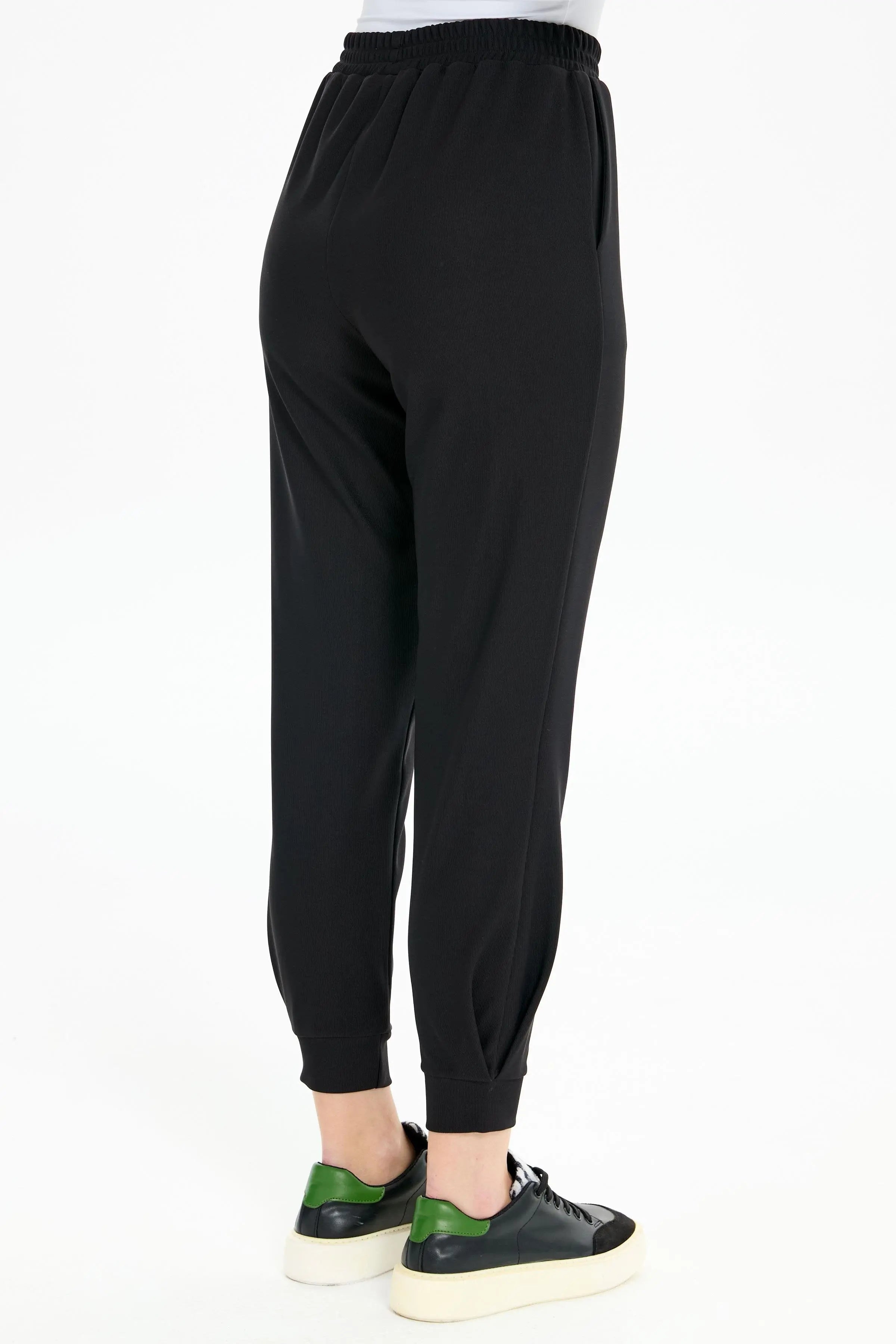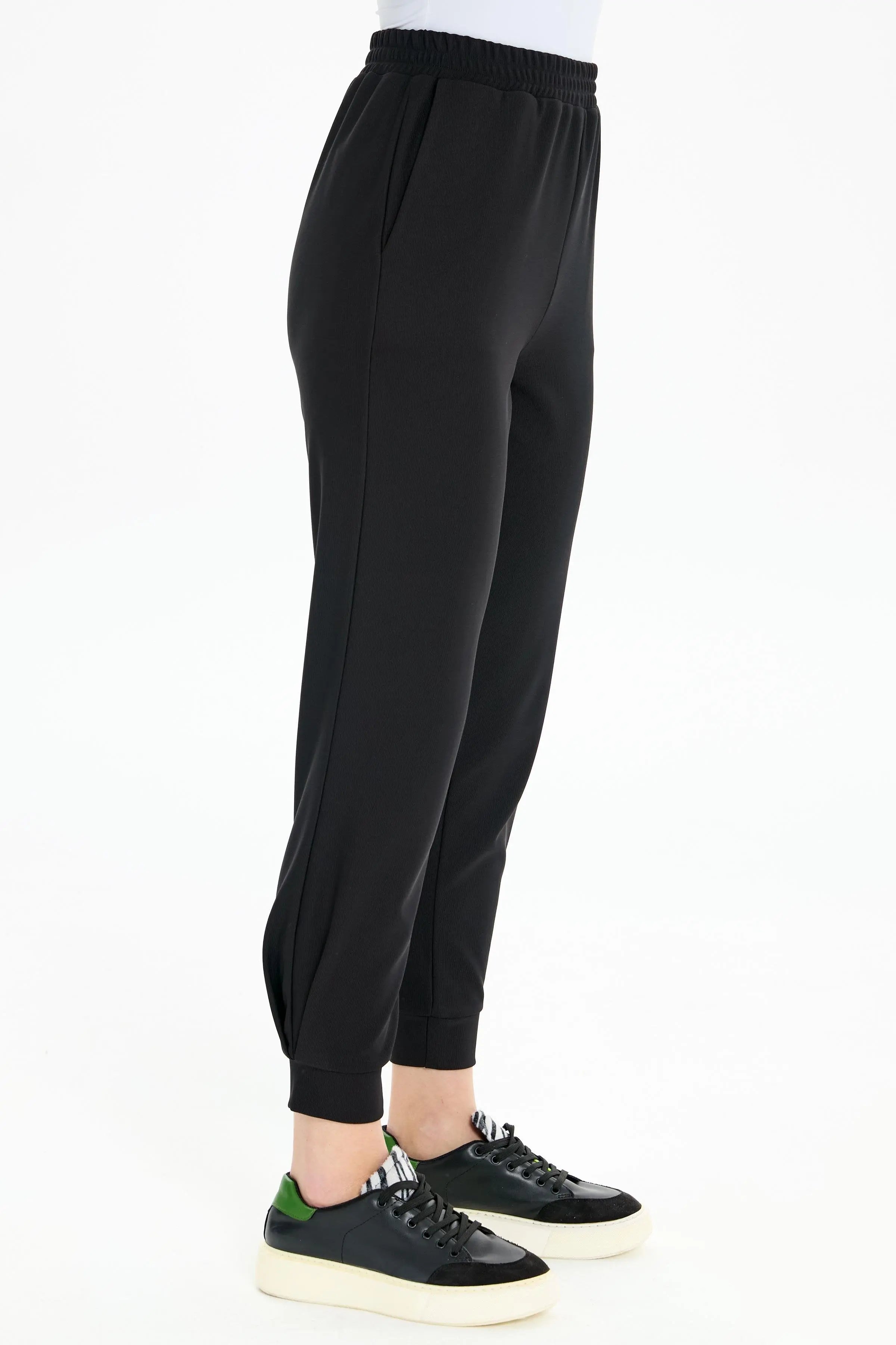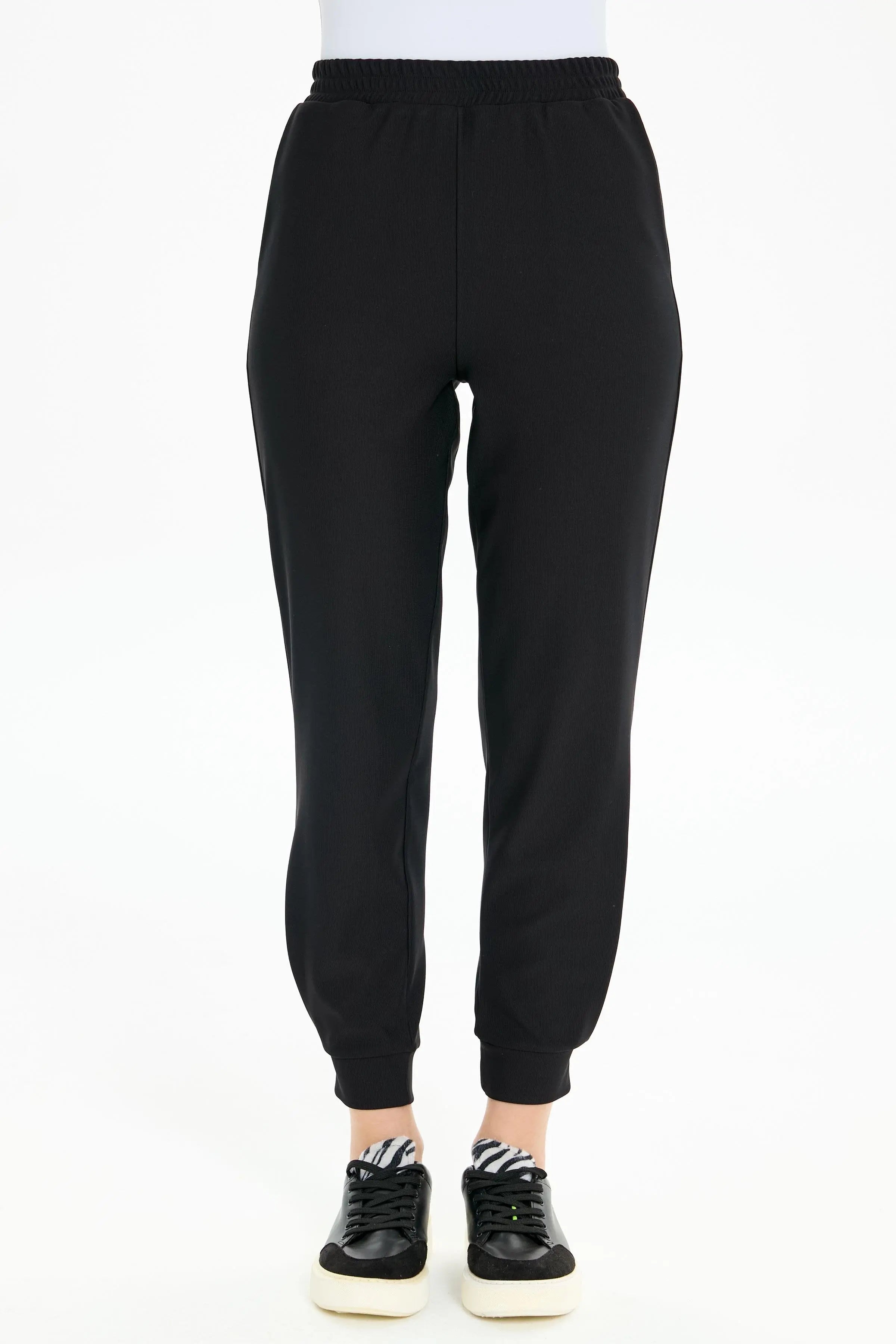 Zipper Slit Knitted Tunic Trouser Set - Black