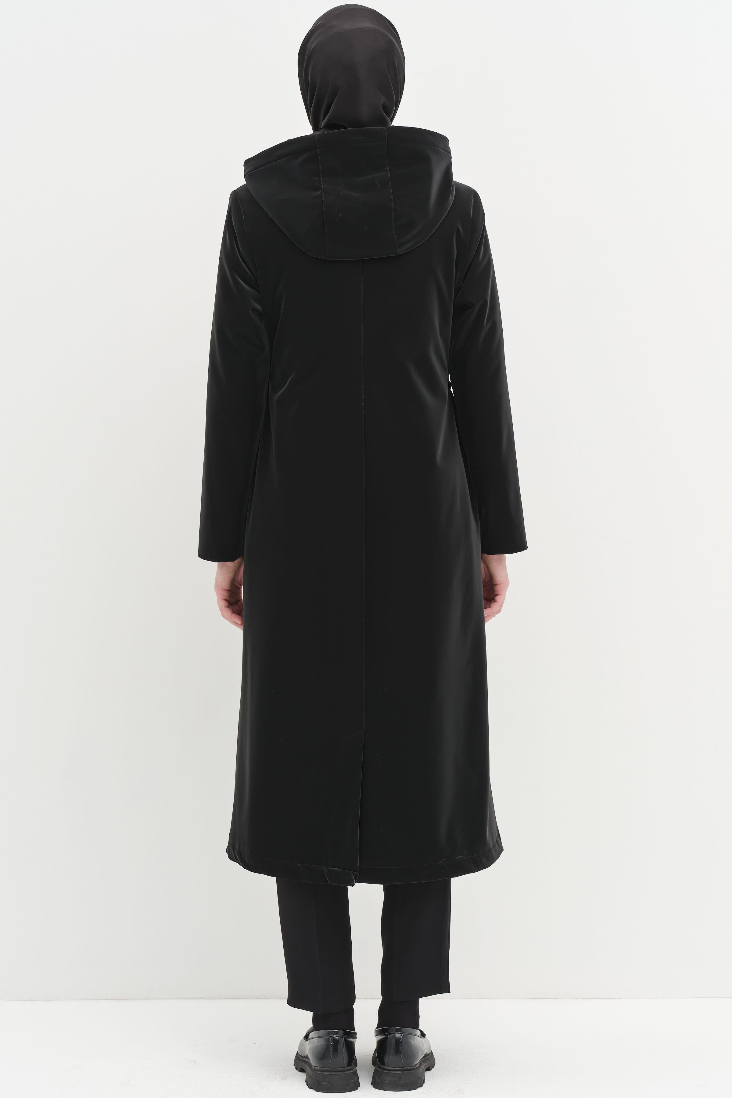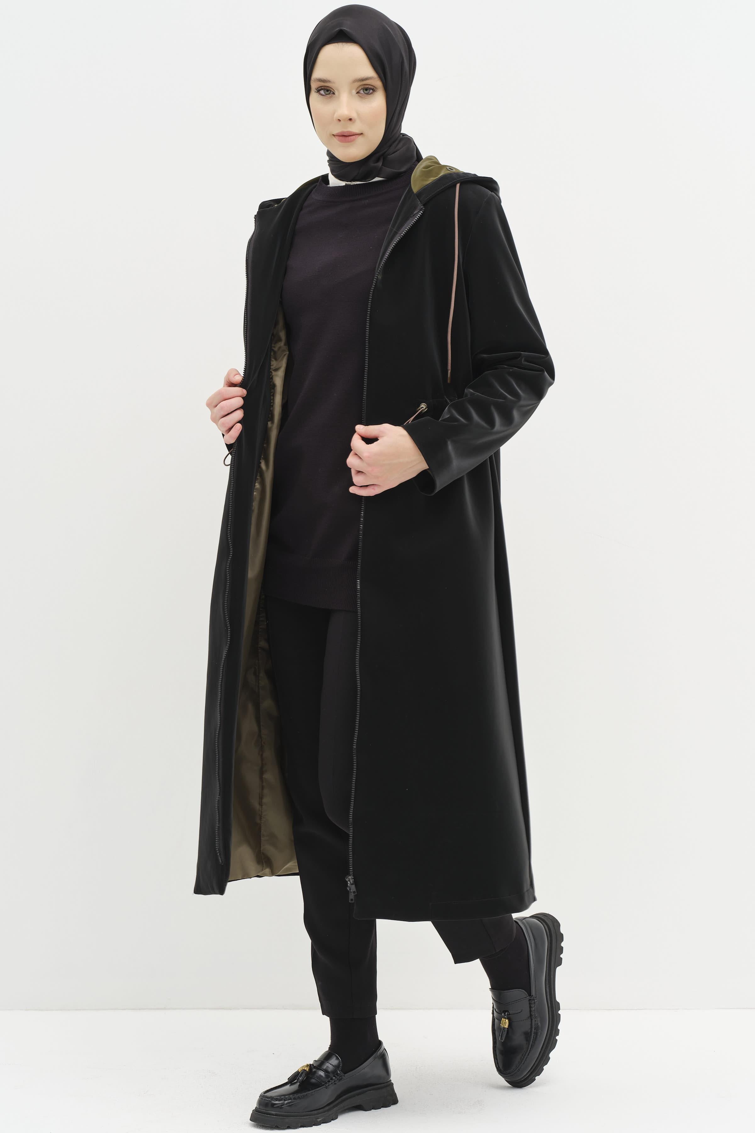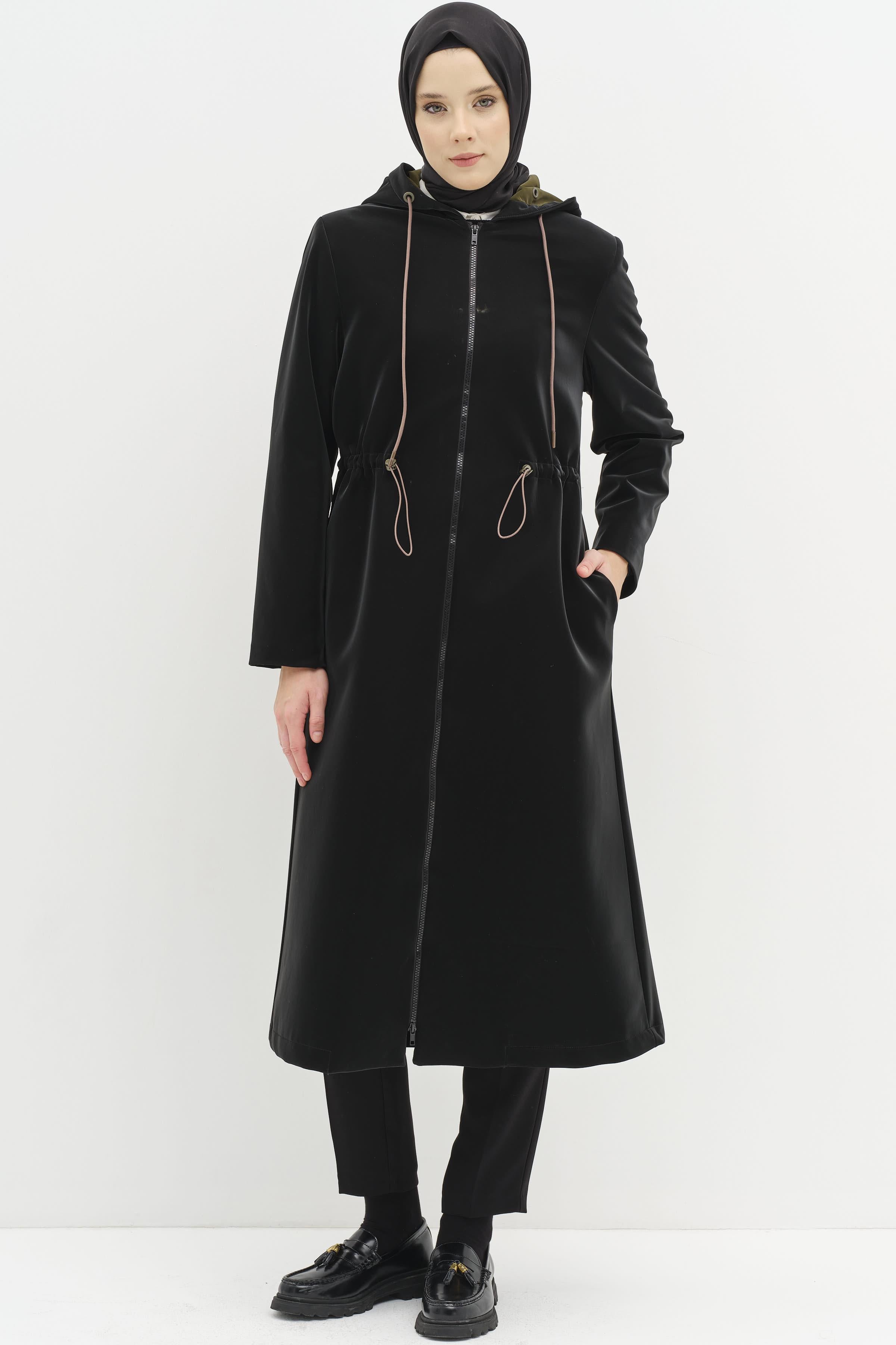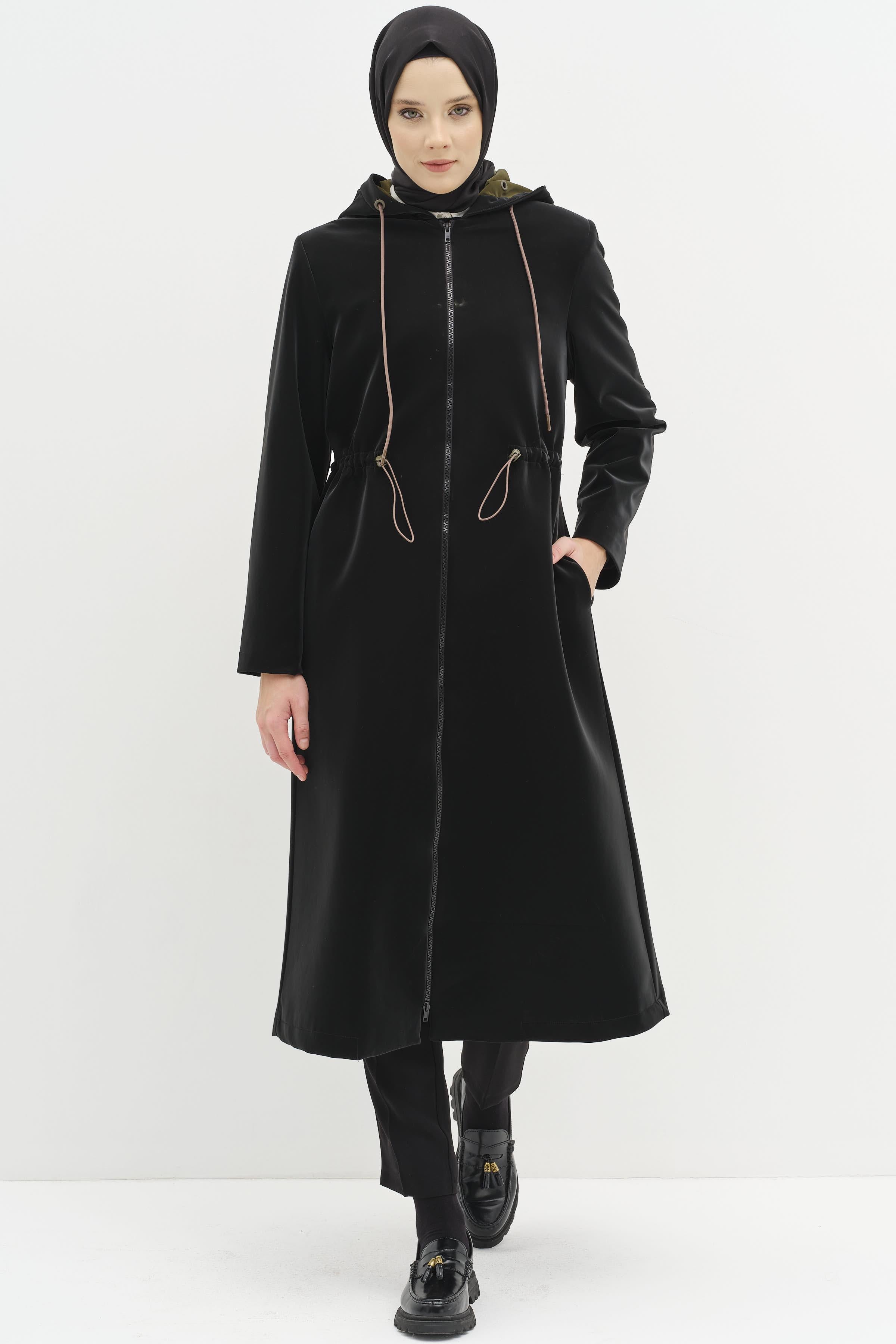 The Trimmed Elastic Waist Raincoat is both a functional and stylish outerwear piece.