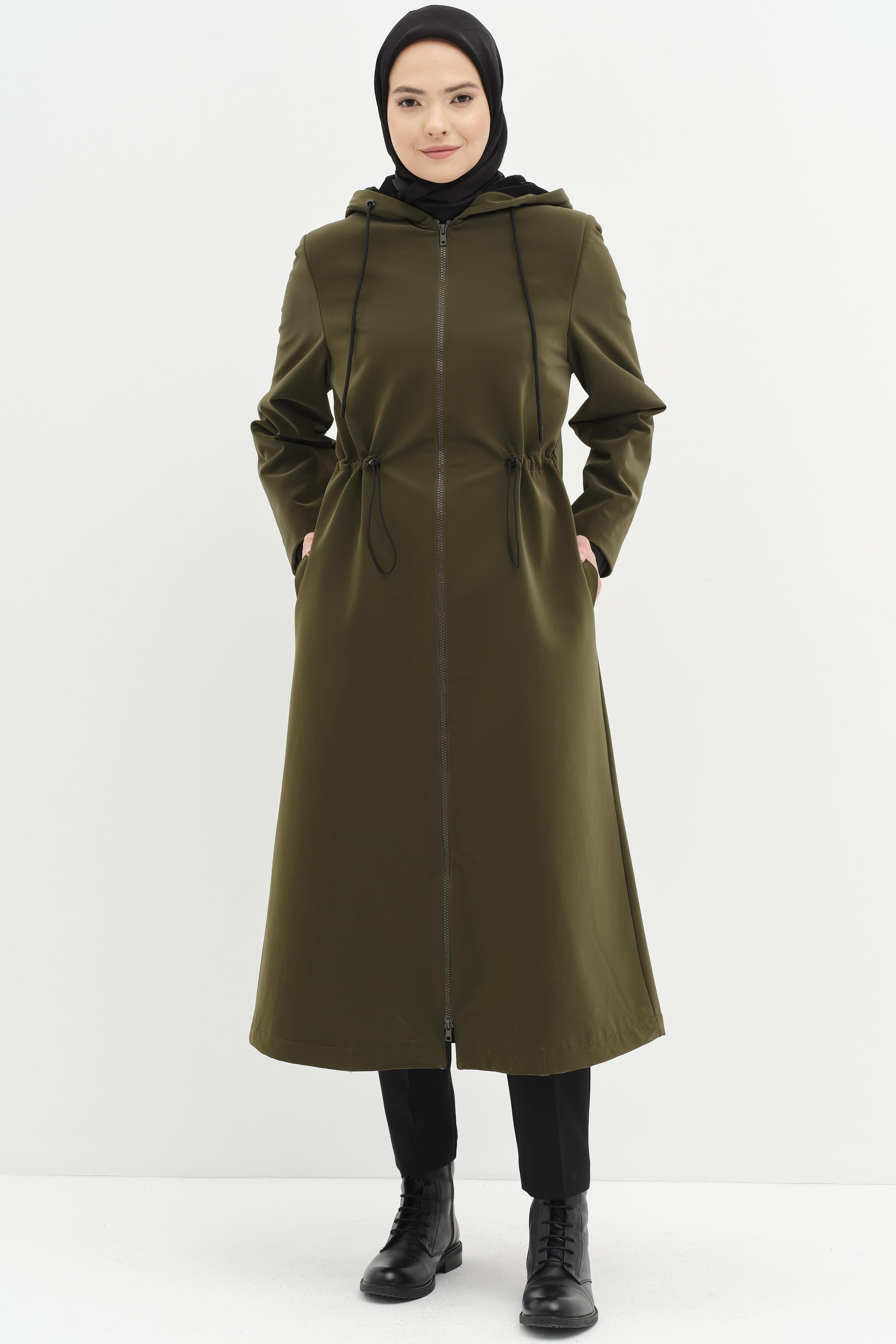 Its waterproof feature provides protection on rainy days, while the elasticated waistband accentuates your figure, creating a more stylish silhouette.
