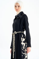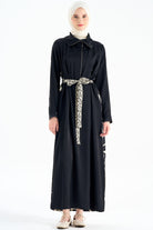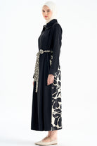 The decorative details add a unique touch to the dress, while the belted design provides a feminine and elegant look. You can personalize your style by combining it with different accessories and shoes.