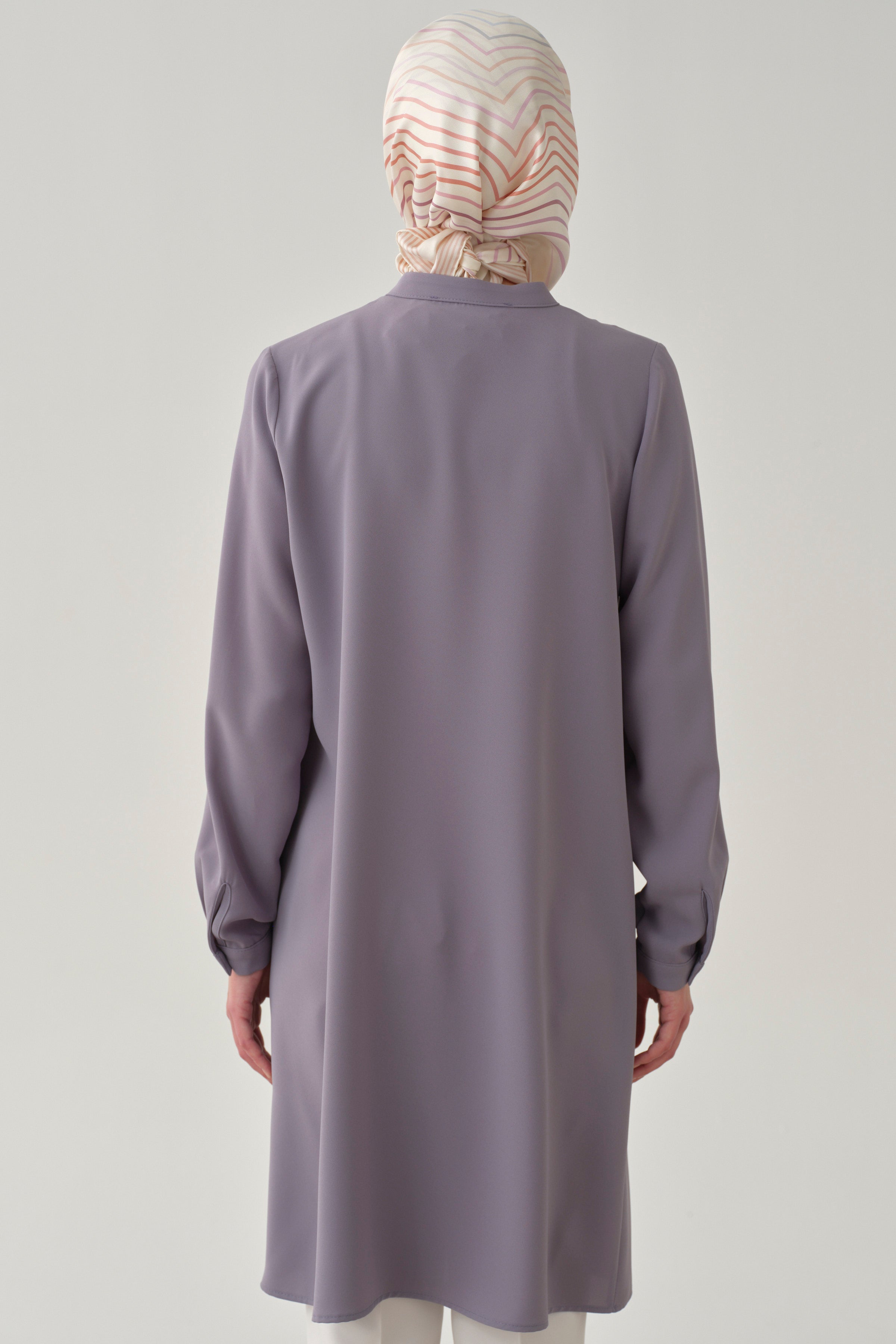 Mandarin Collar Hidden Placket Tunic - Lilac