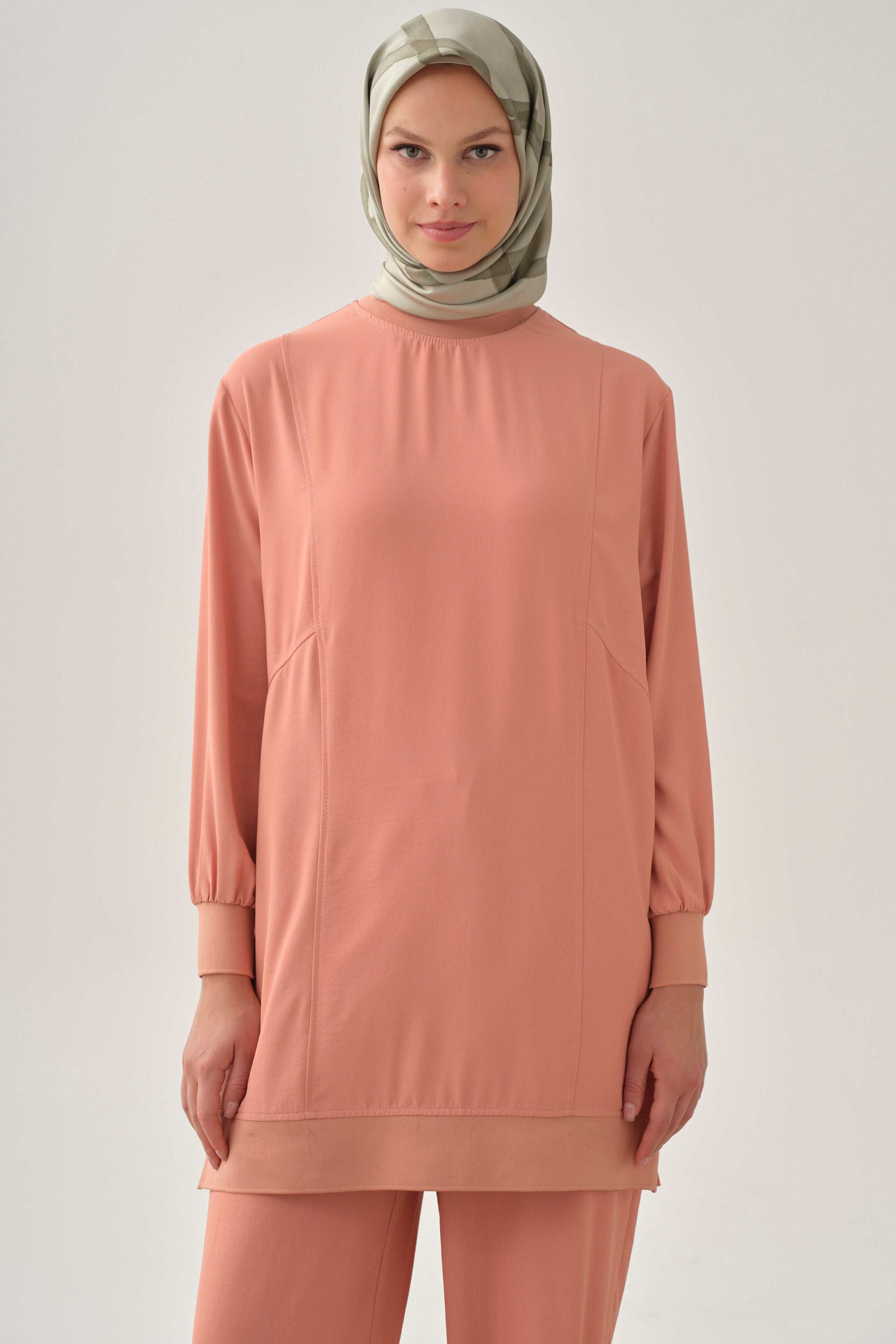 Ribbed Tunic with Cutout Details - Salmon