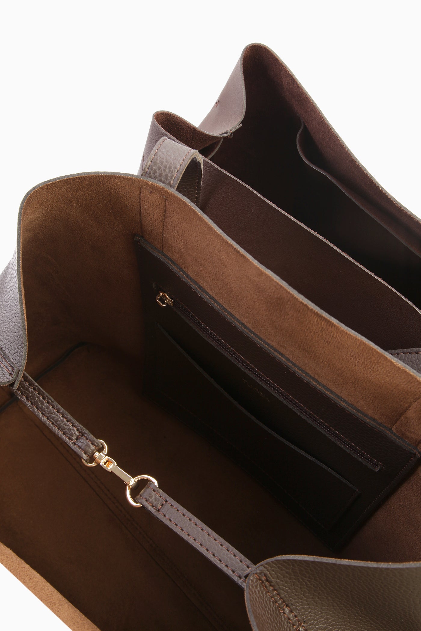 Interior Details: Small bag without zipper, zippered interior pocket.