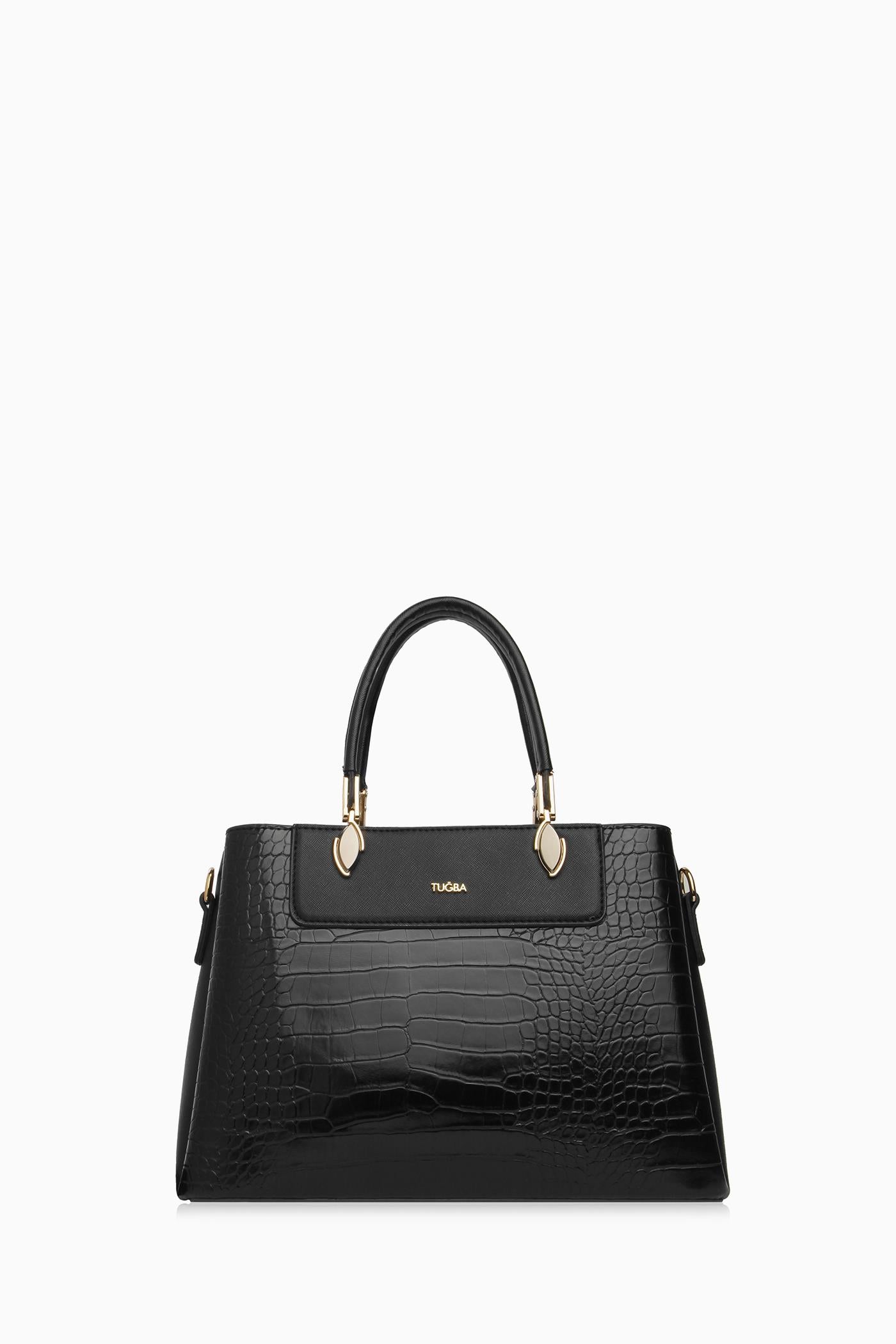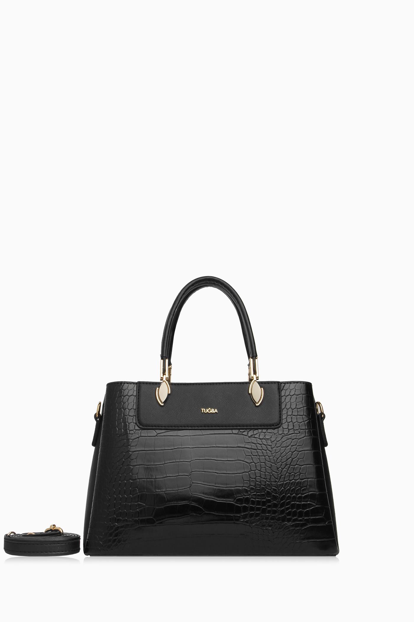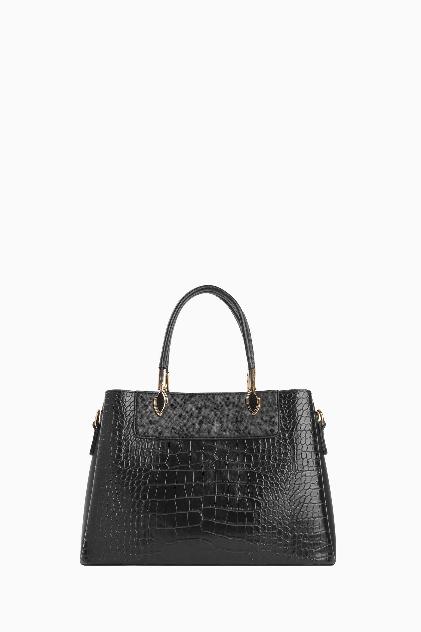 Crocodile Double Handle Bag - Black