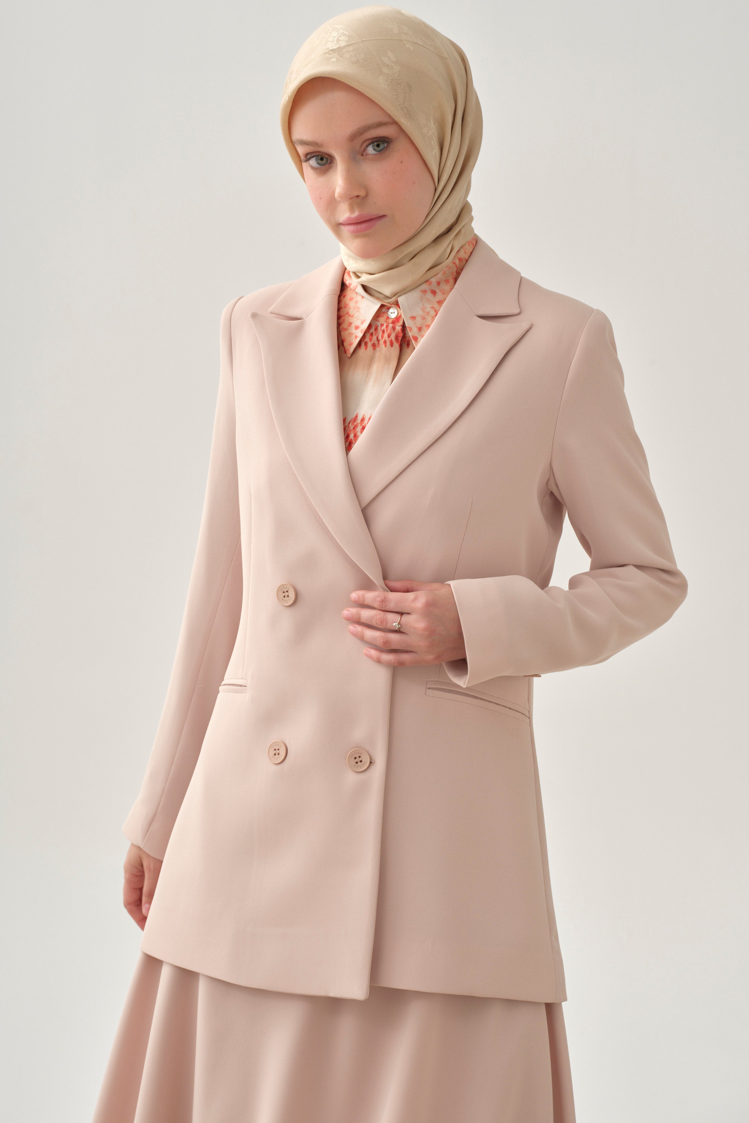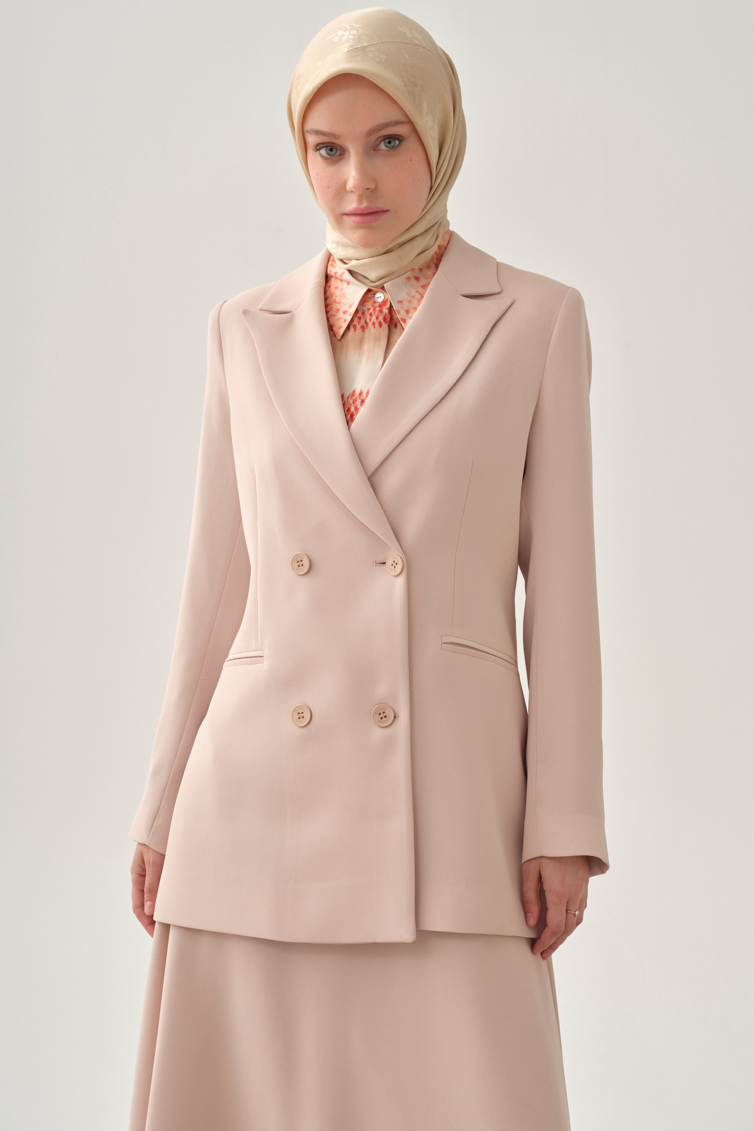 Double Breasted Basic Jacket - Beige