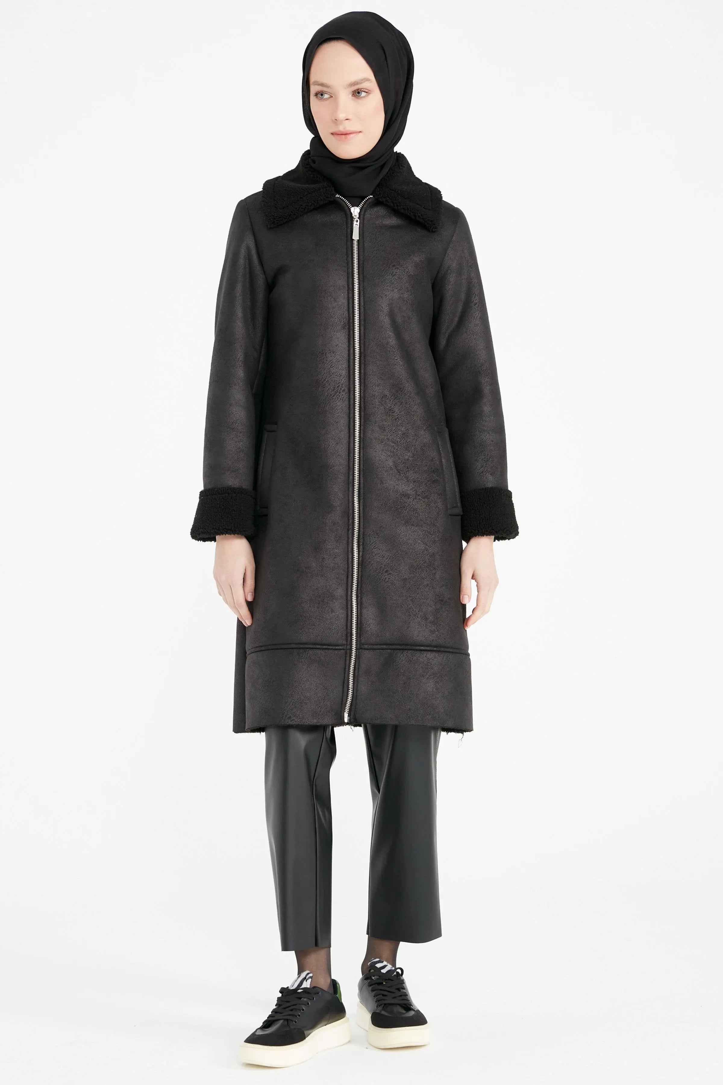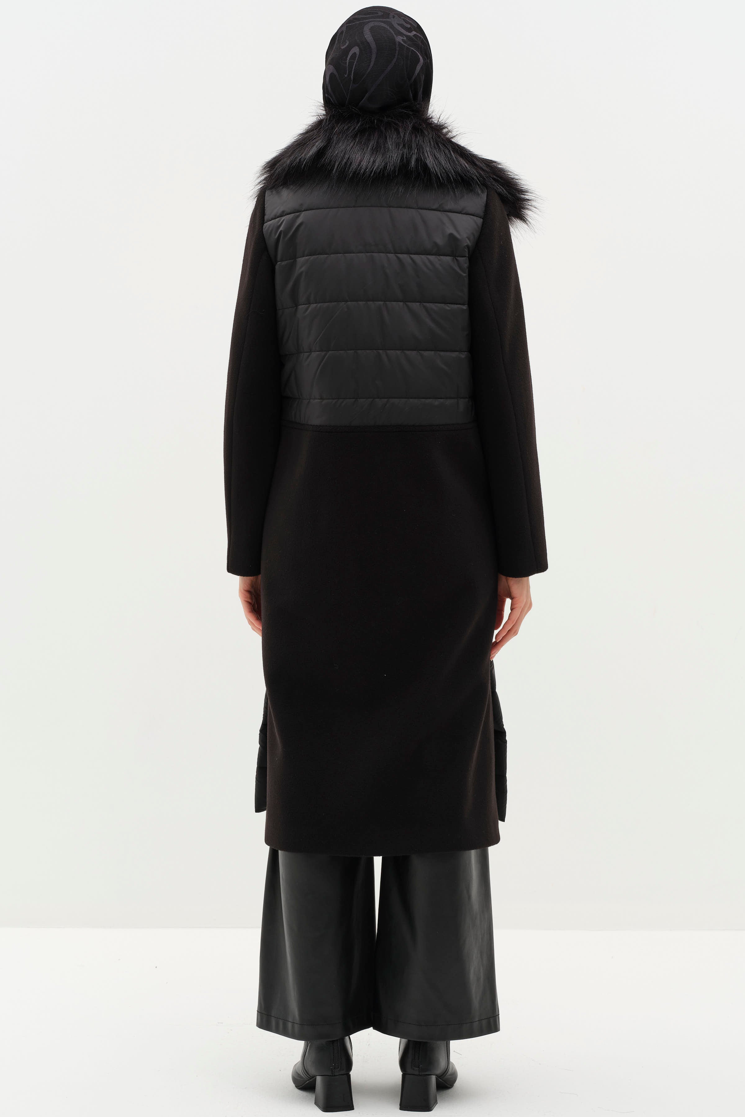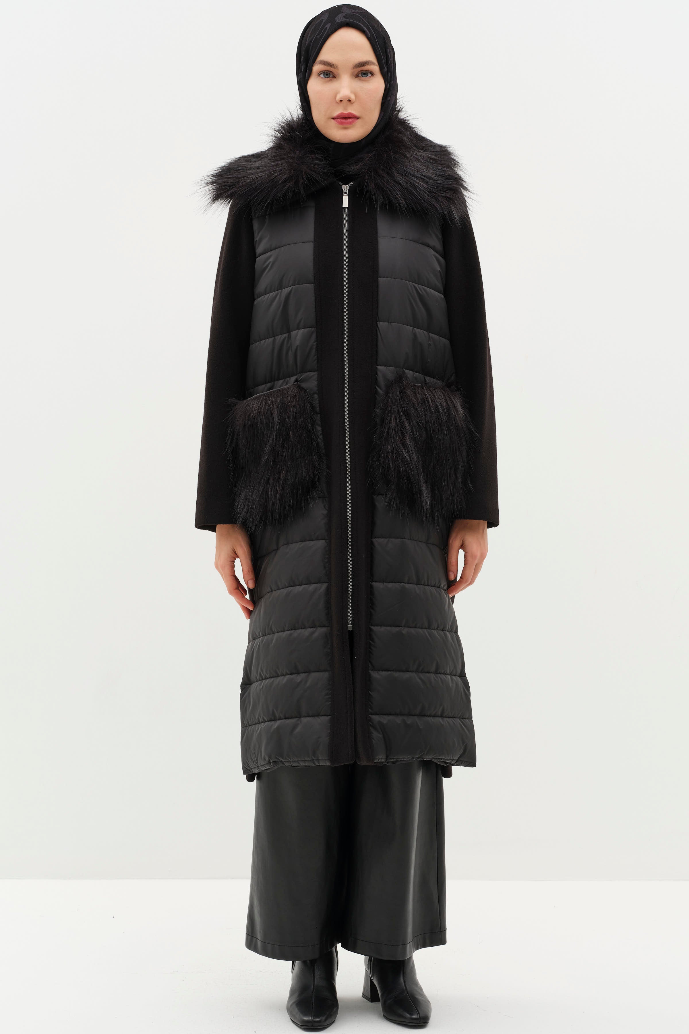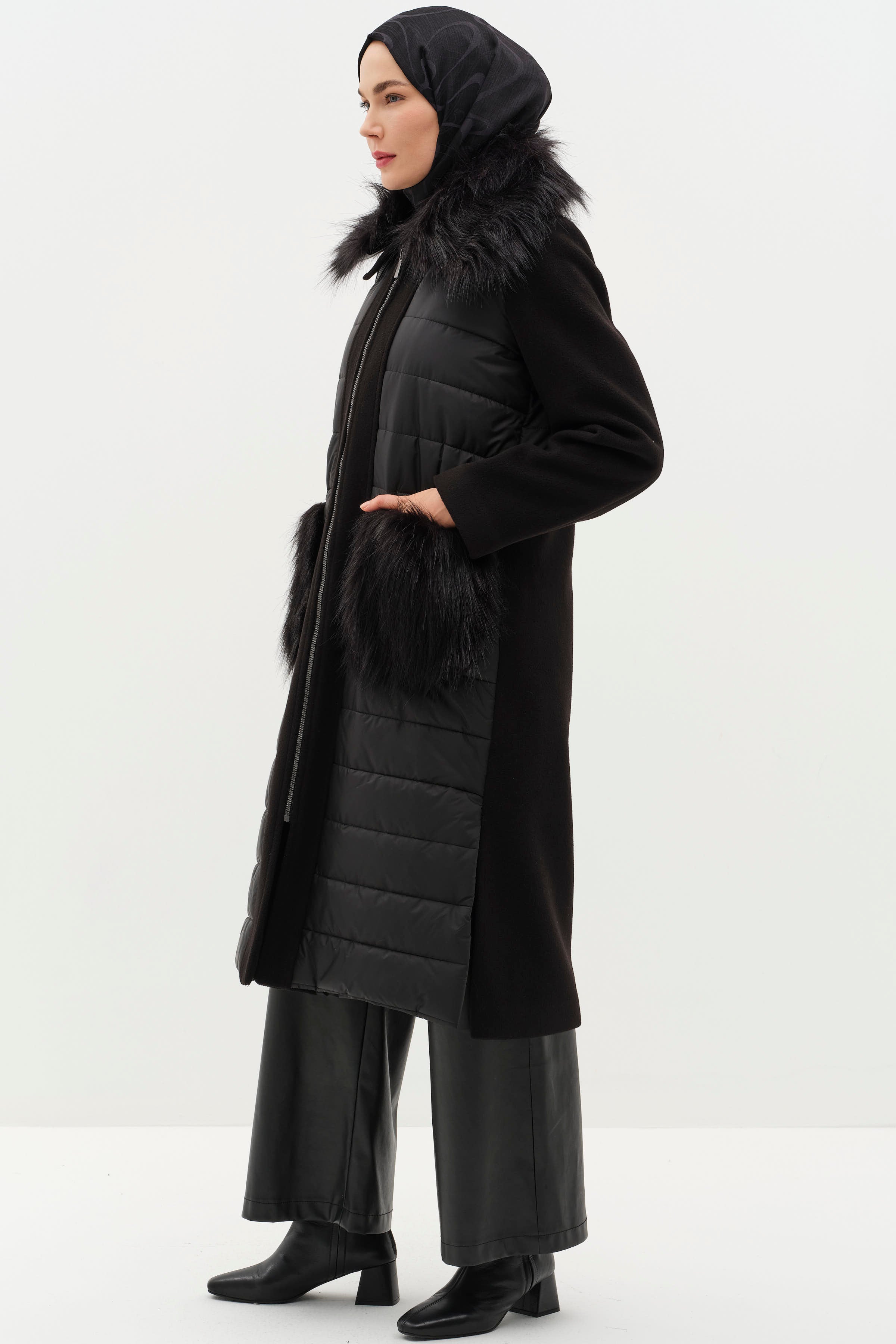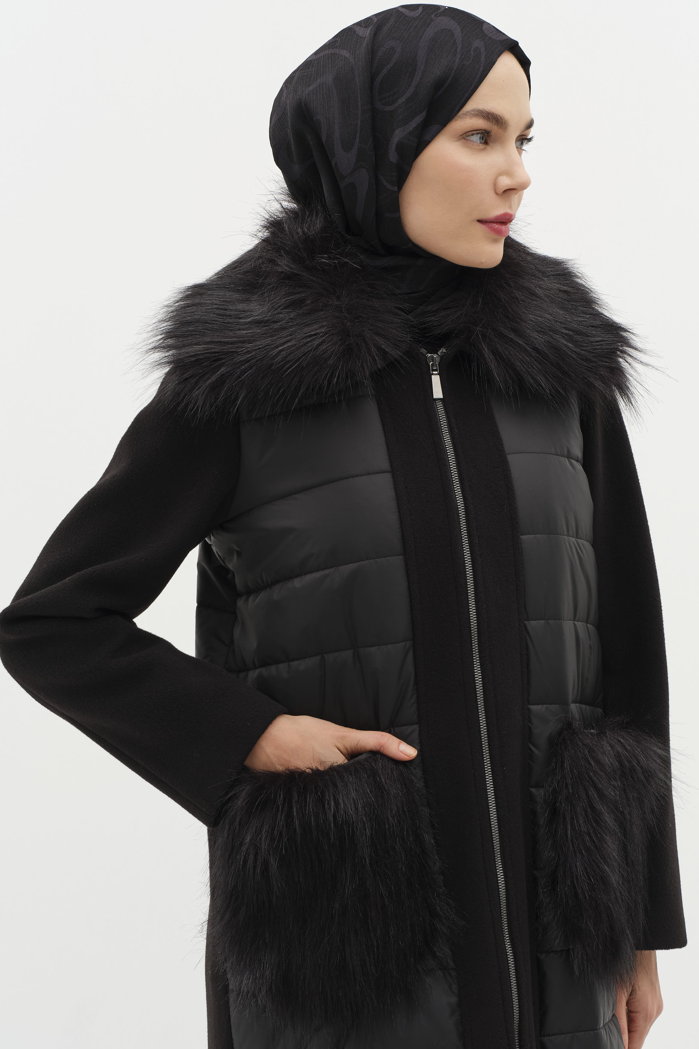 Featuring fur pocket and collar details, this coat offers a luxurious touch, providing both warmth and style in cold weather. Its soft, high-quality texture, combined with its elegant design, will elevate your style.