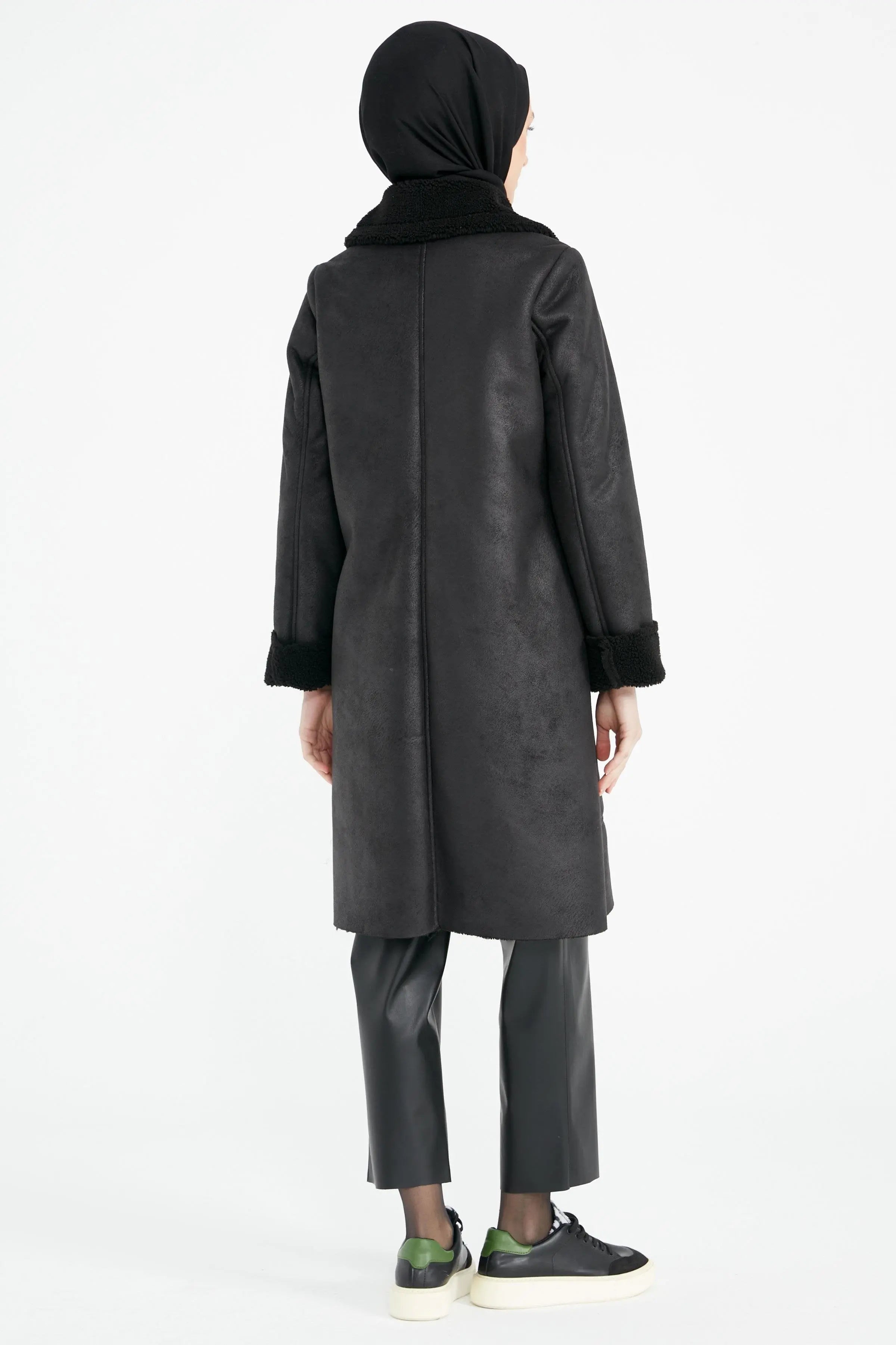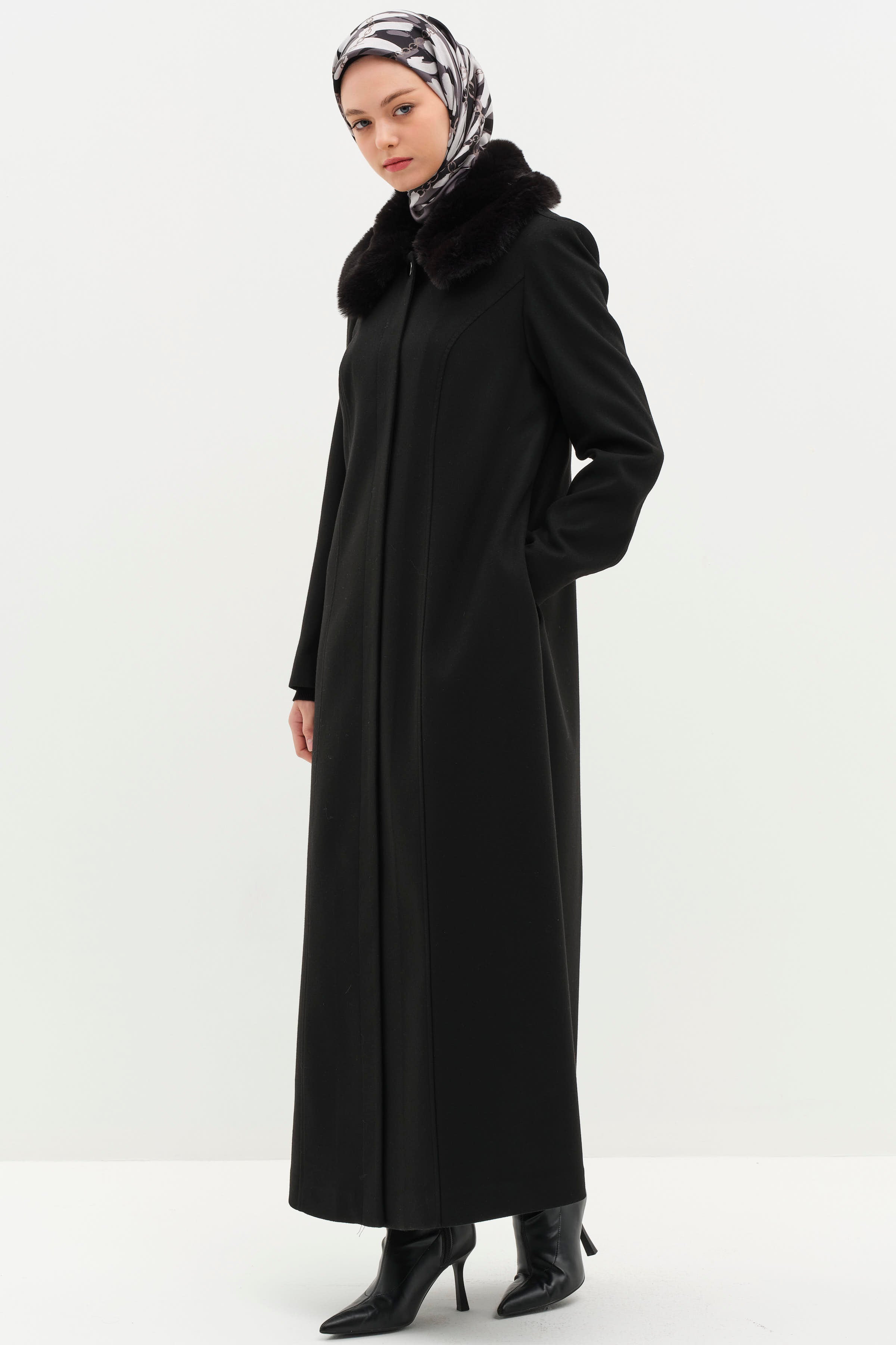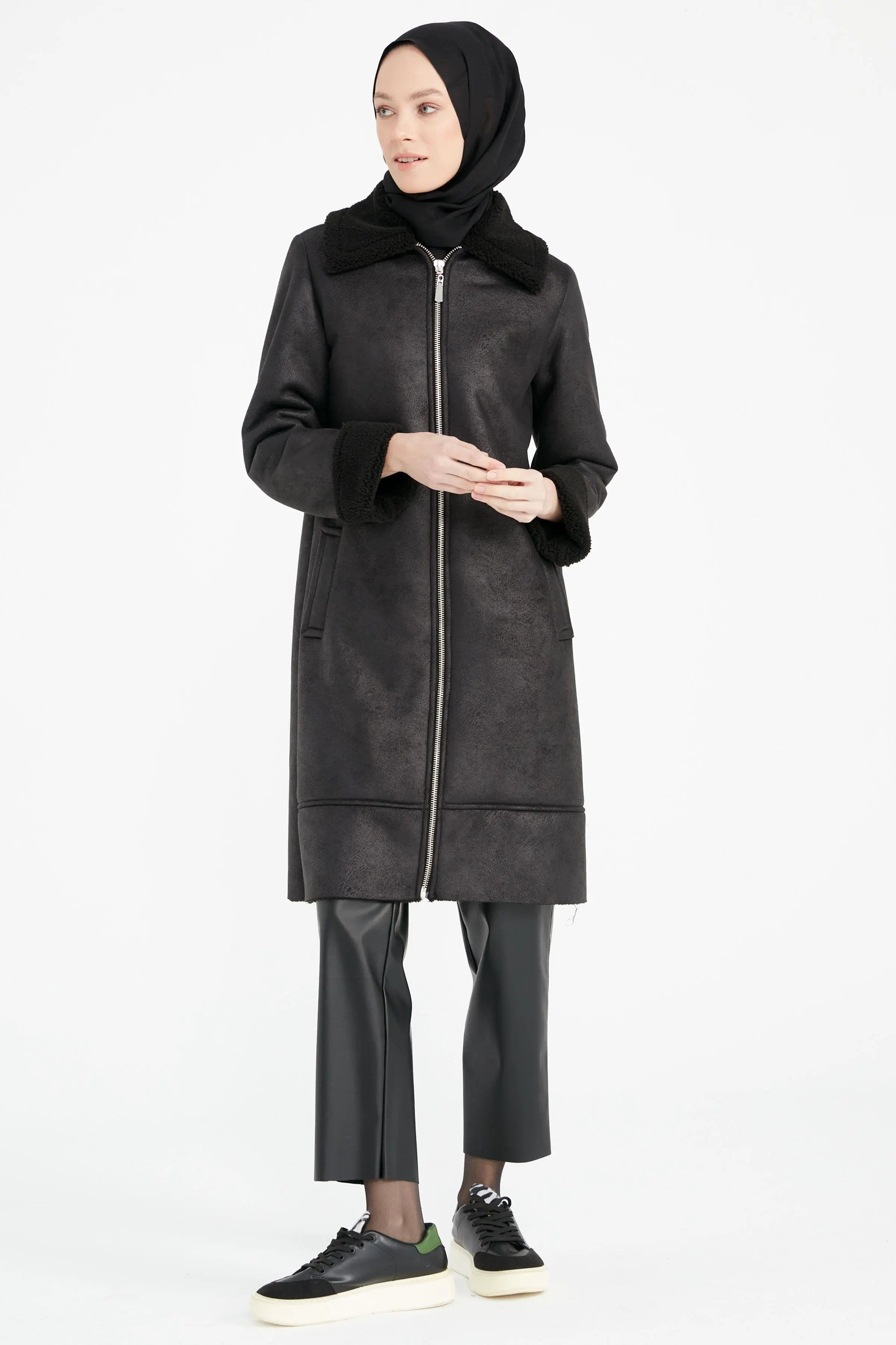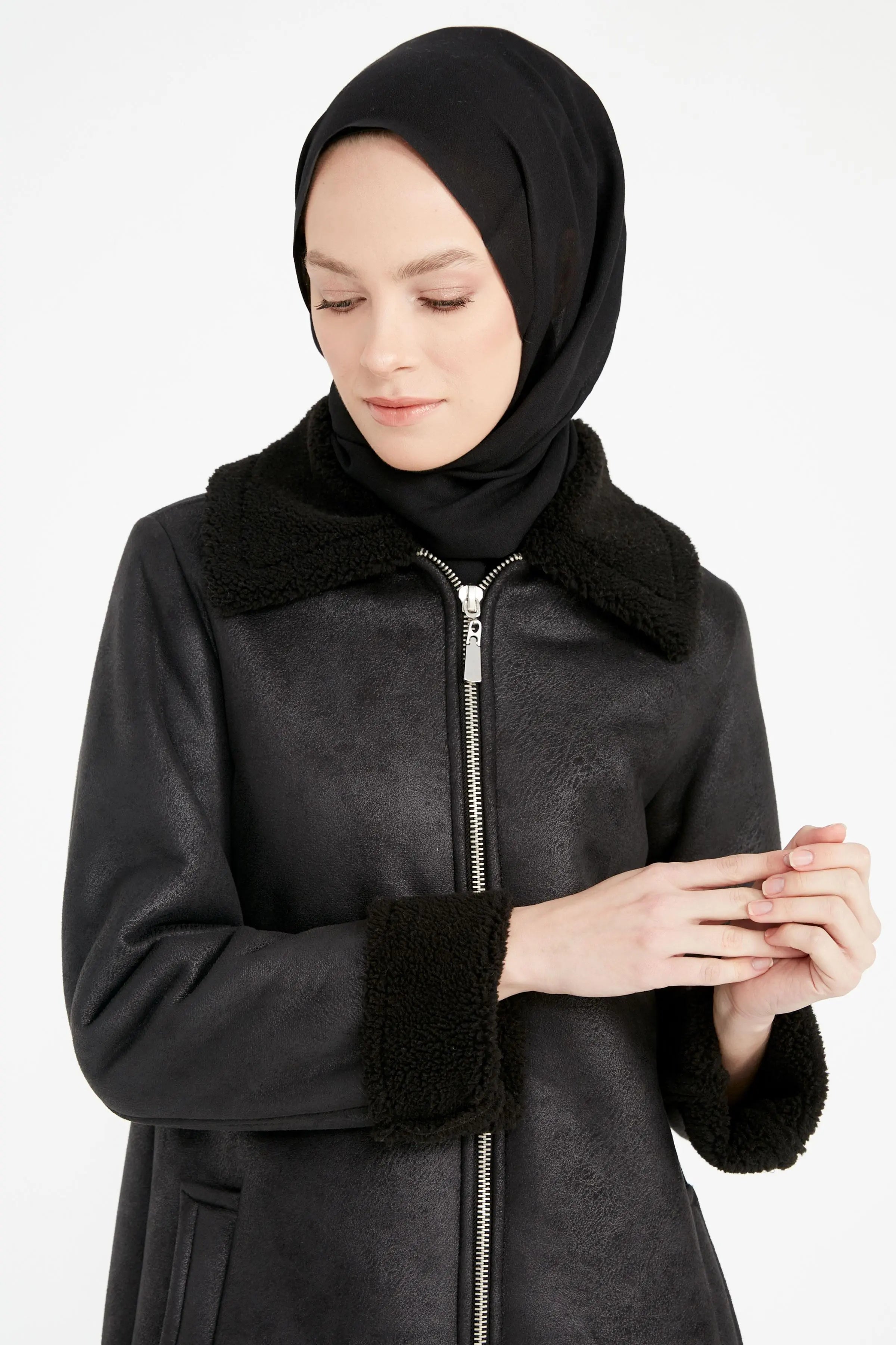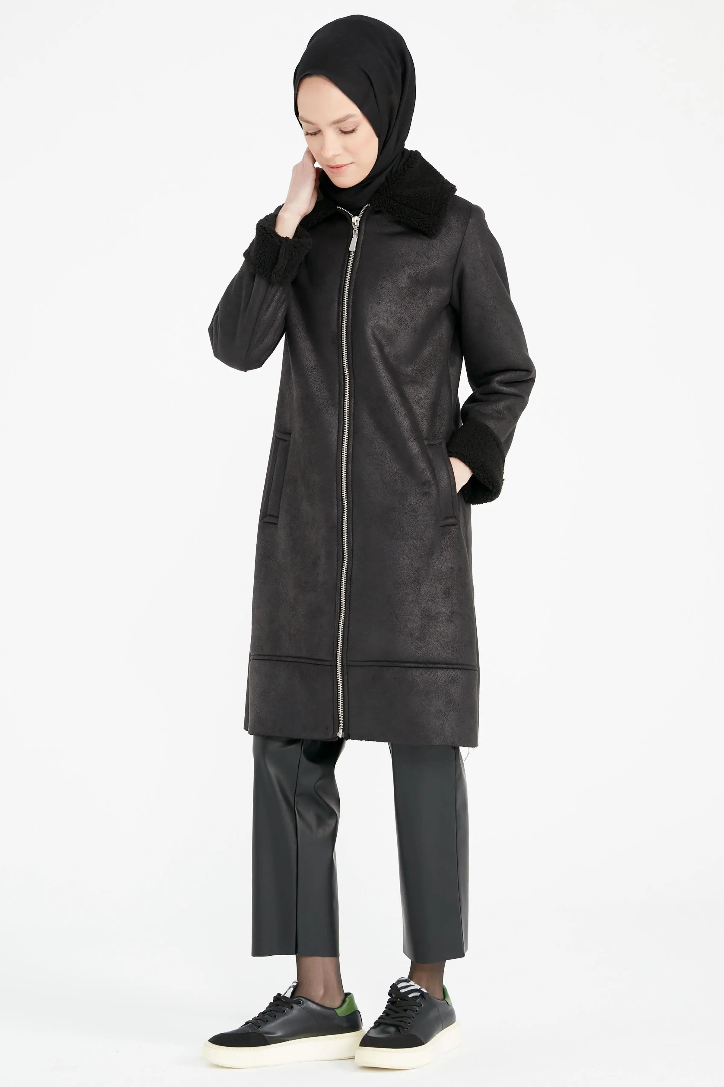 Featuring fur pocket and collar details, this coat offers a luxurious touch, providing both warmth and style in cold weather. Its soft, high-quality texture, combined with its elegant design, will elevate your style.