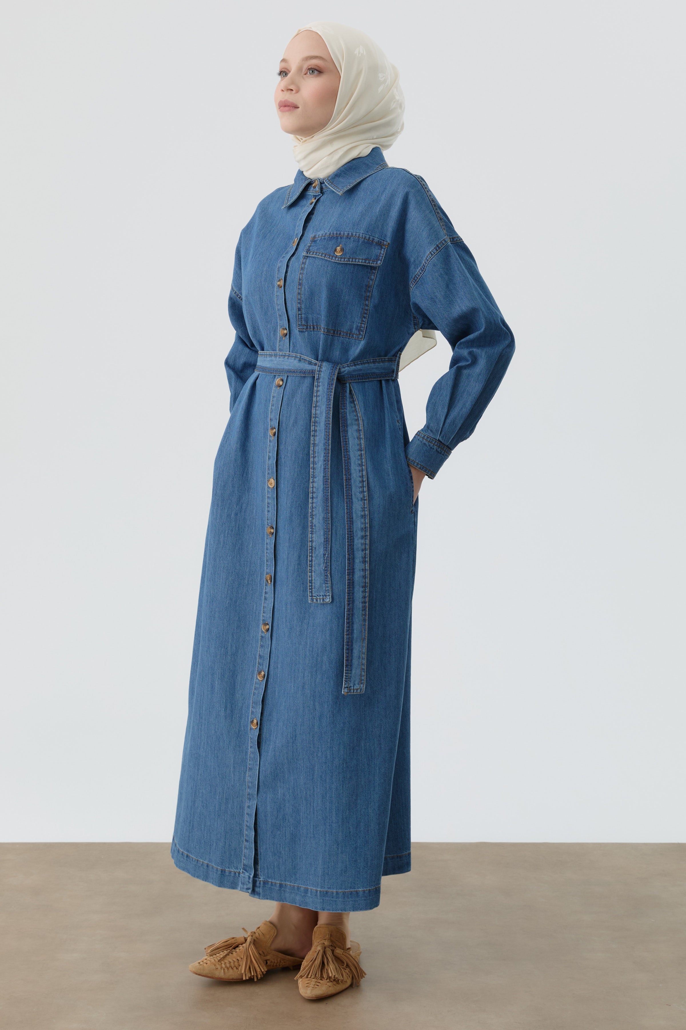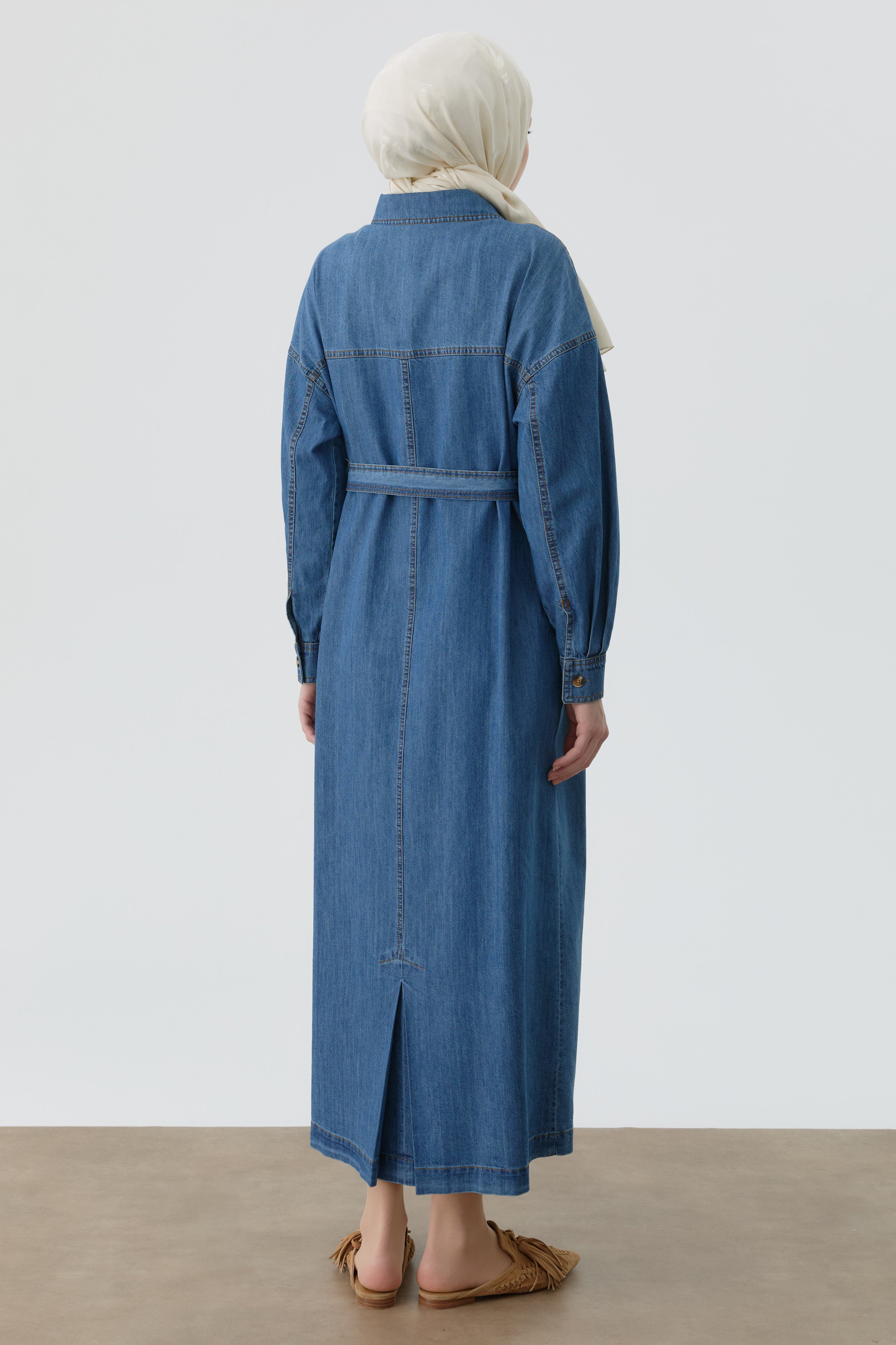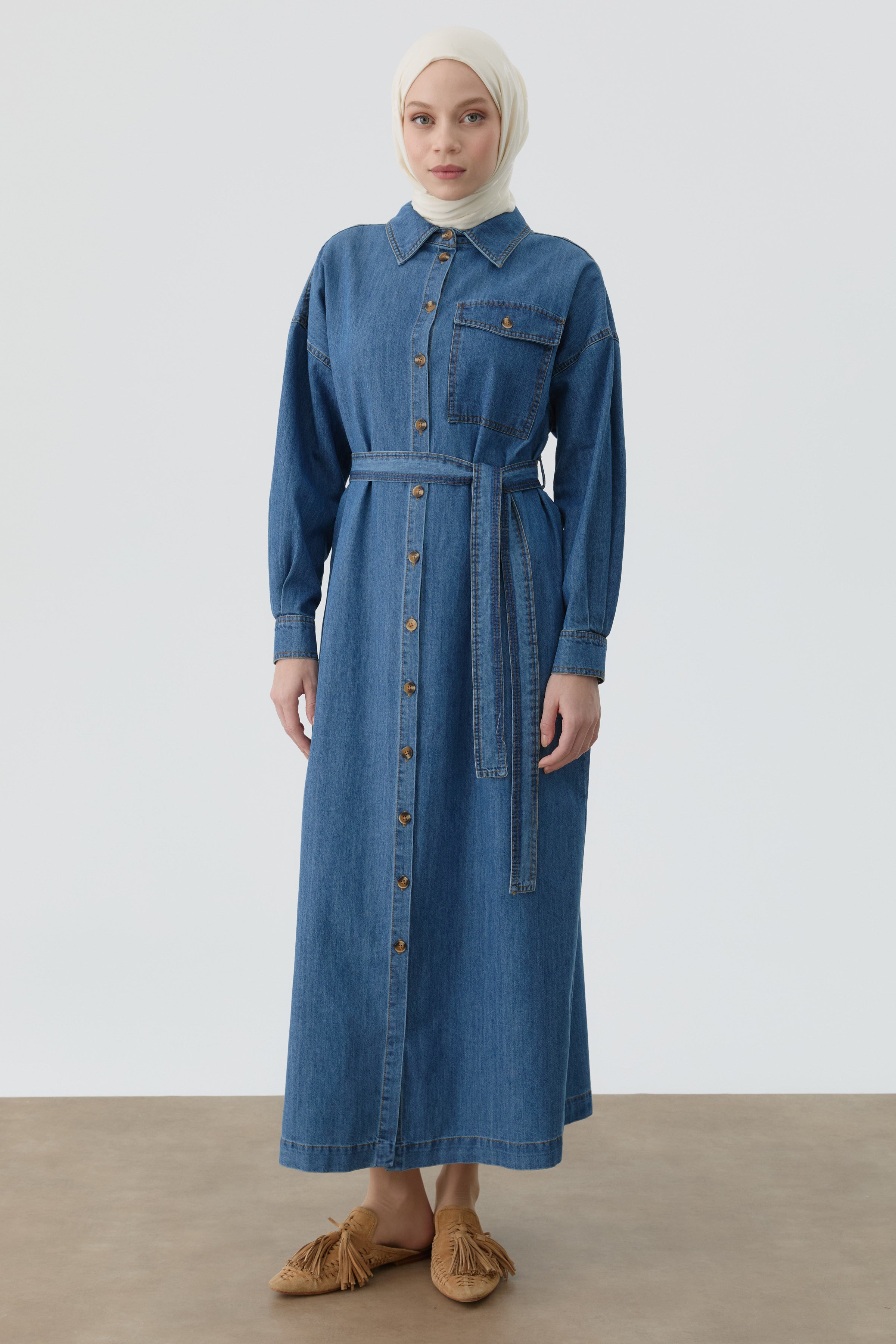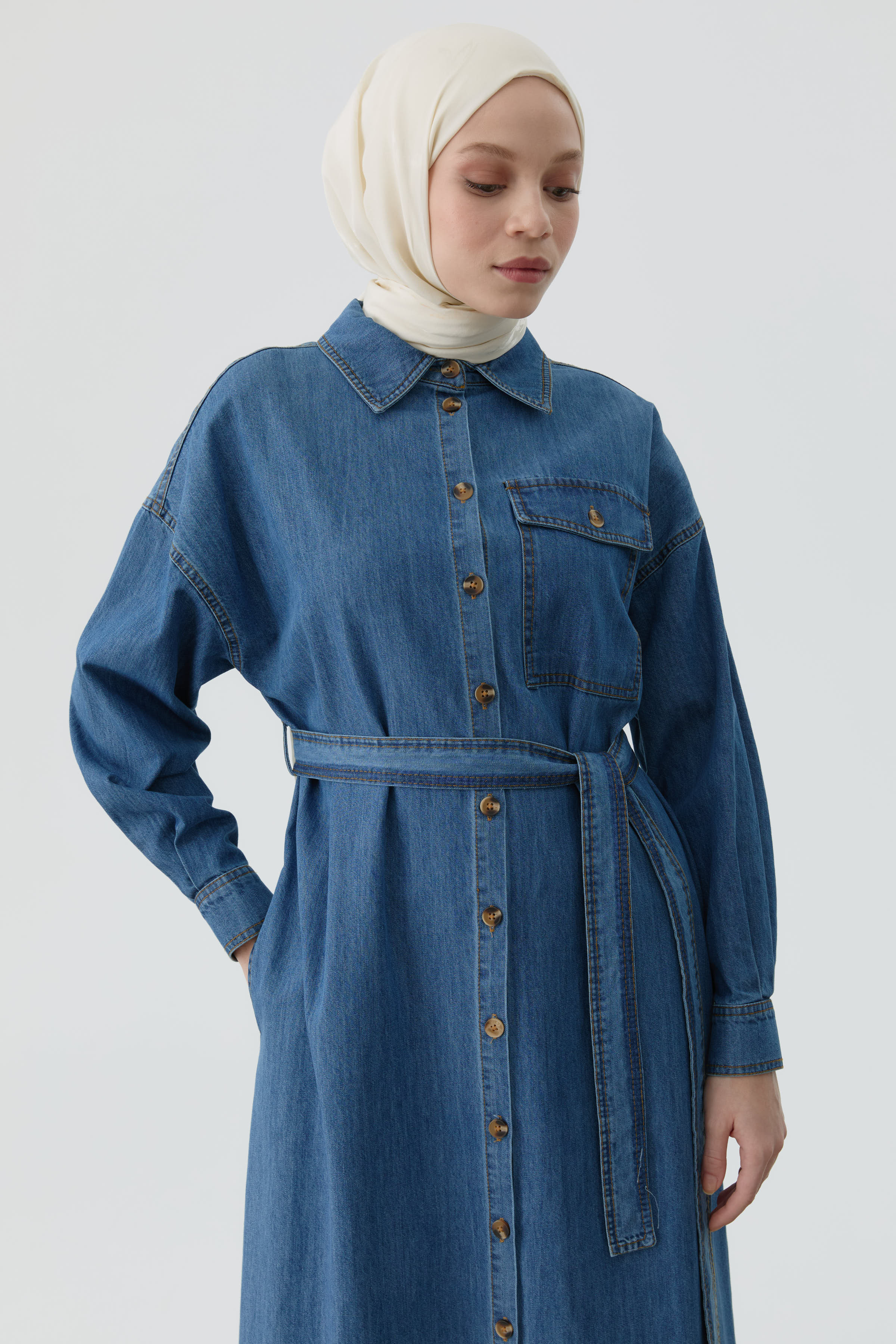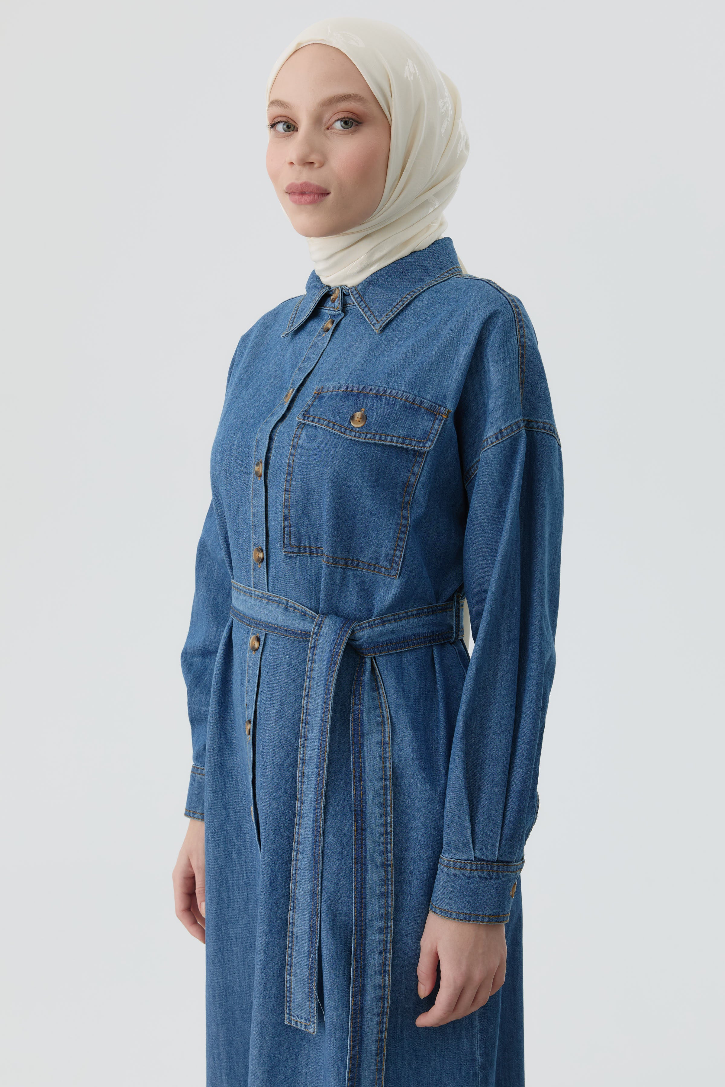 Thanks to its buttoned front design and removable belt detail at the waist, it creates a stylish silhouette that can be either loose or fitted.