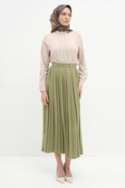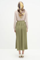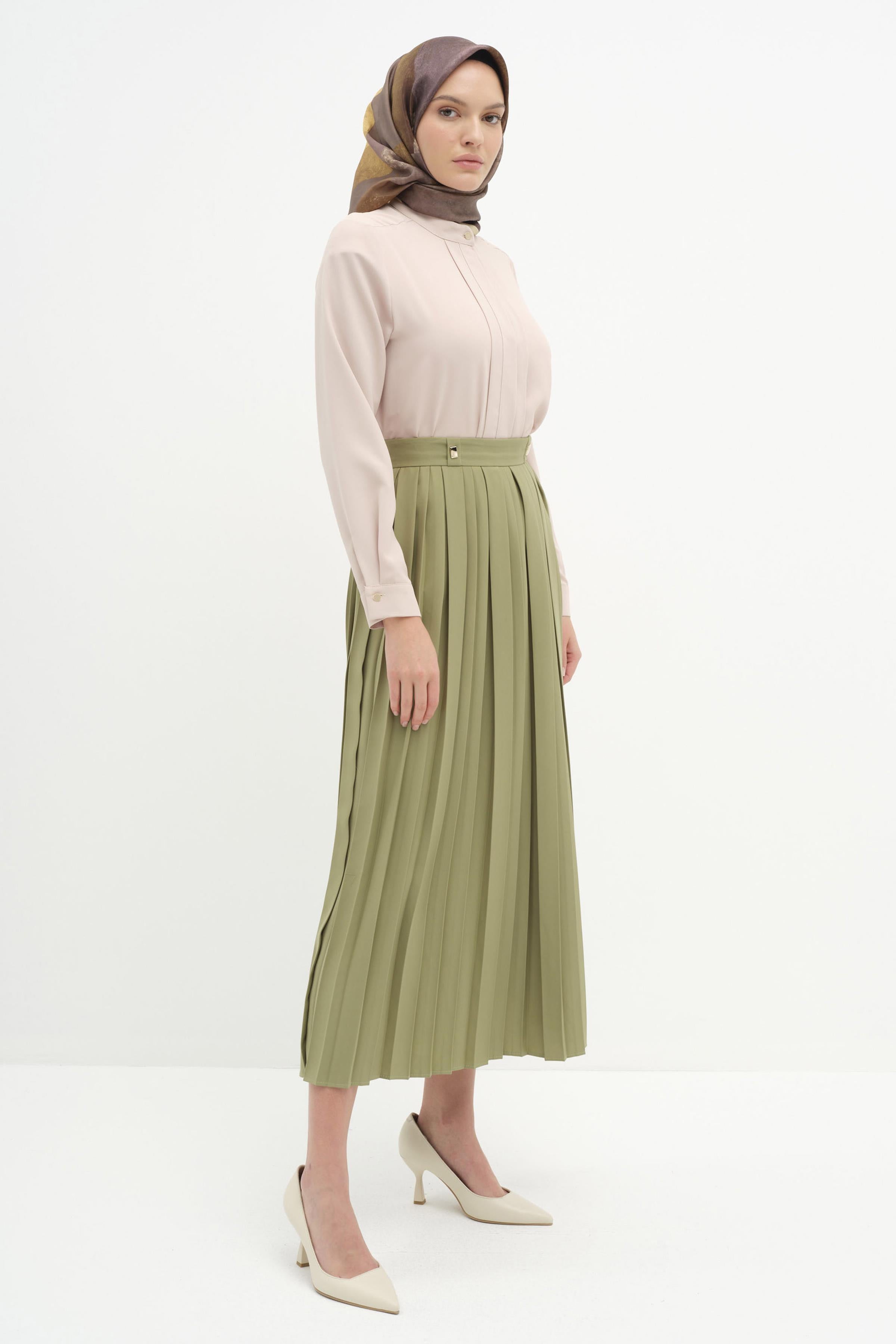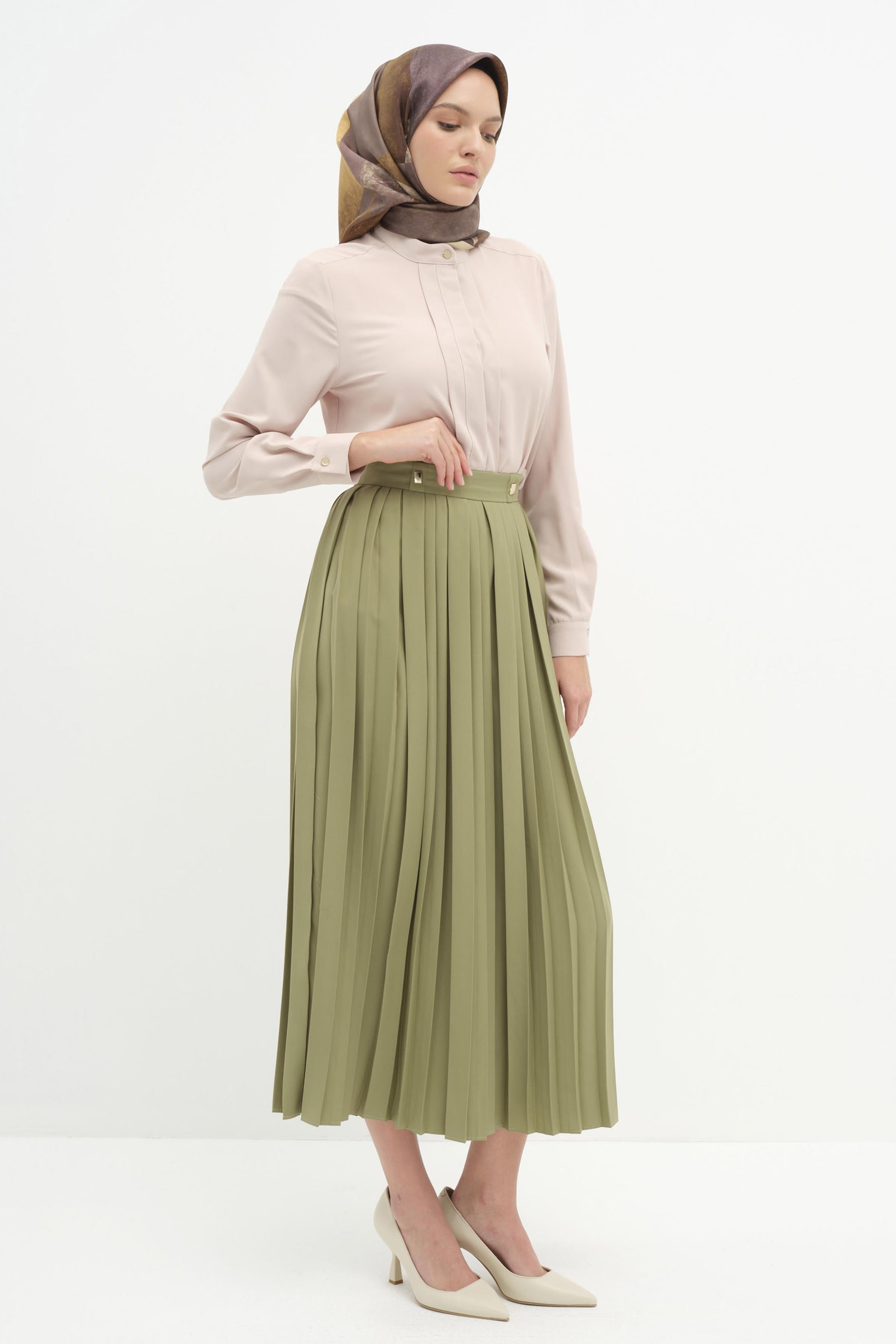The pleated skirt with metal accessories offers a modern and stylish design. The pleats add elegant movement to the skirt, while the metal accessory touch provides a unique flair that complements your style.