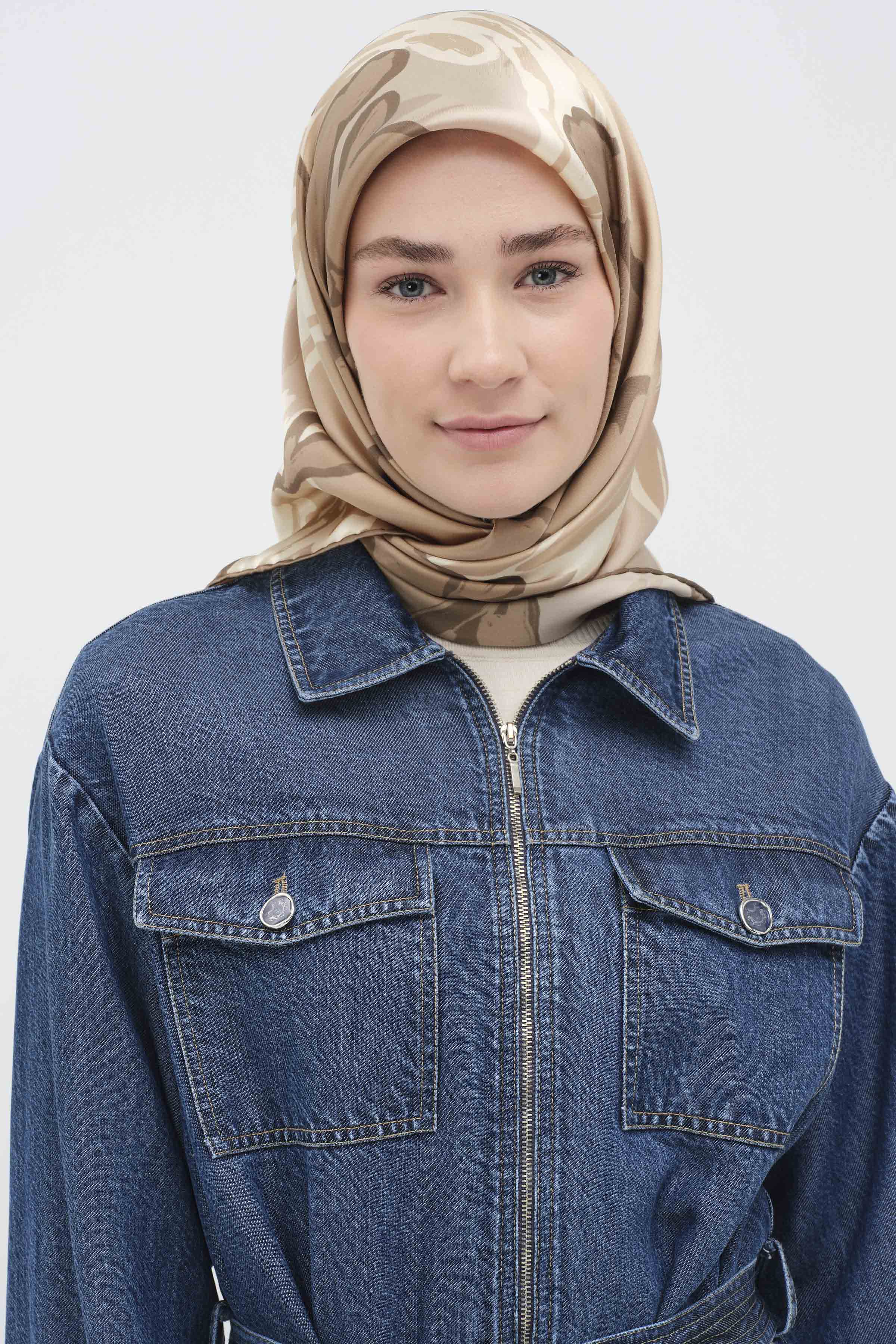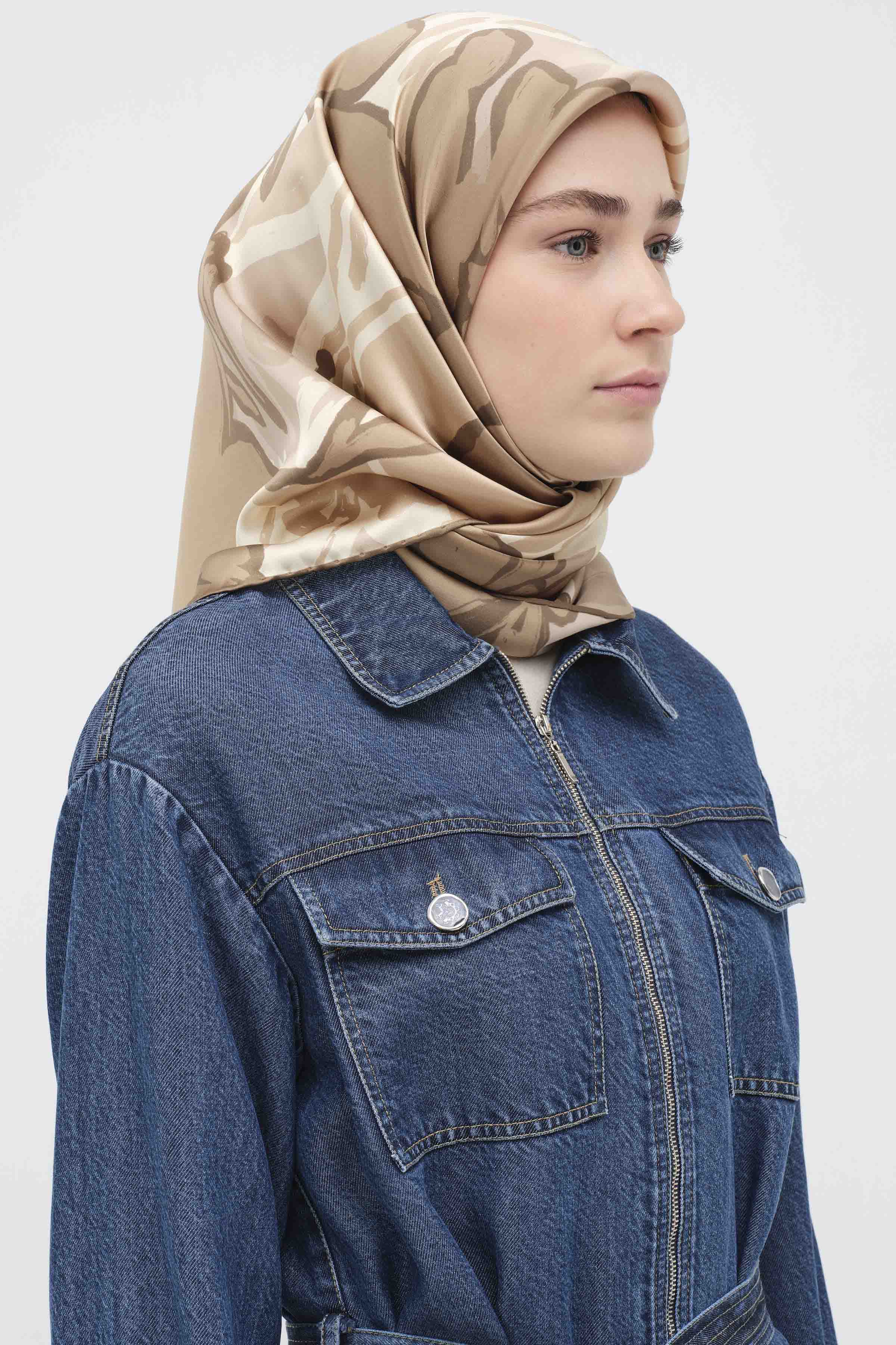 Multi Flower Patterned Sura Silk Scarf - Mink