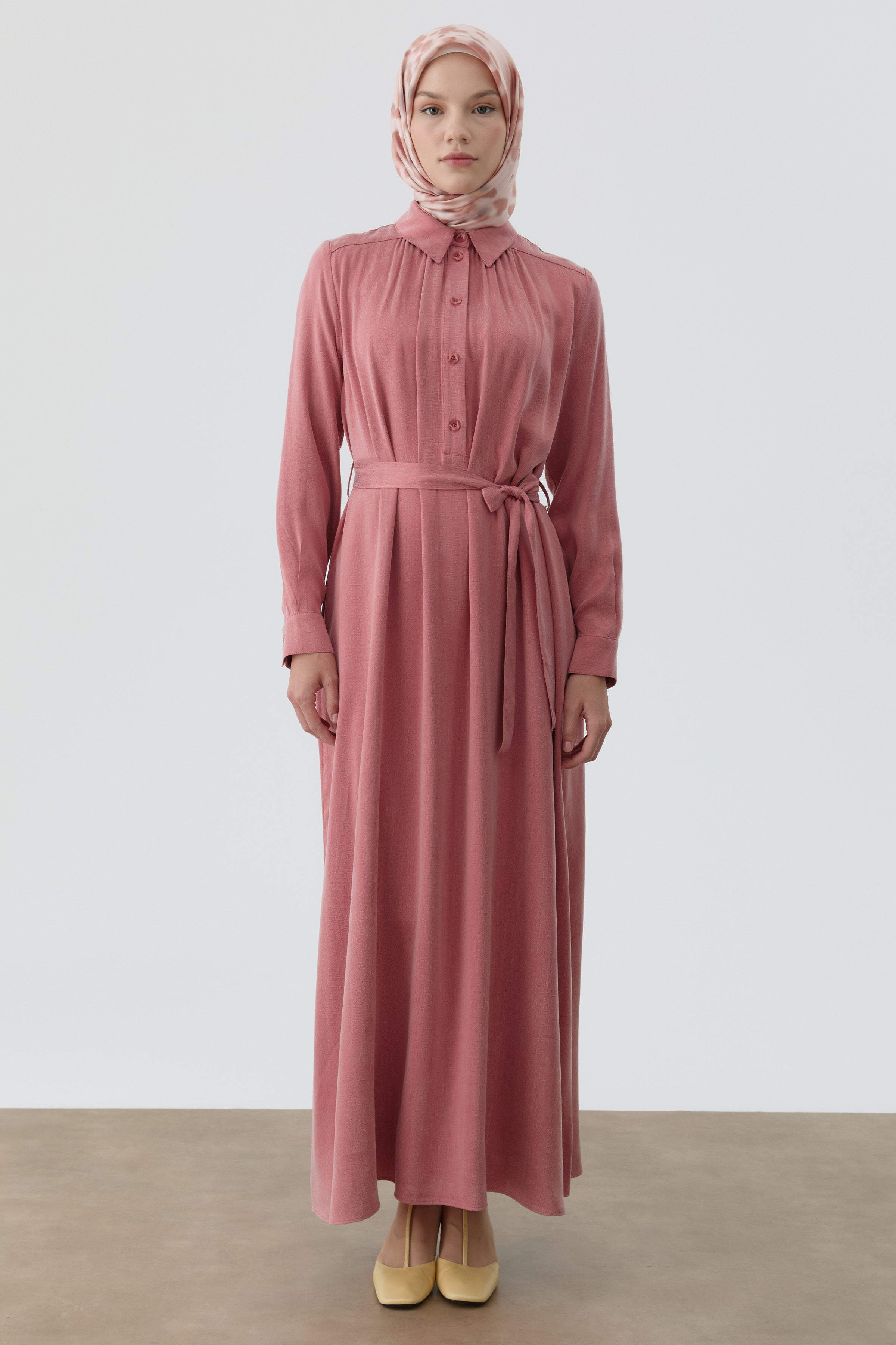 Belted Dress with Robe - Dusty Rose