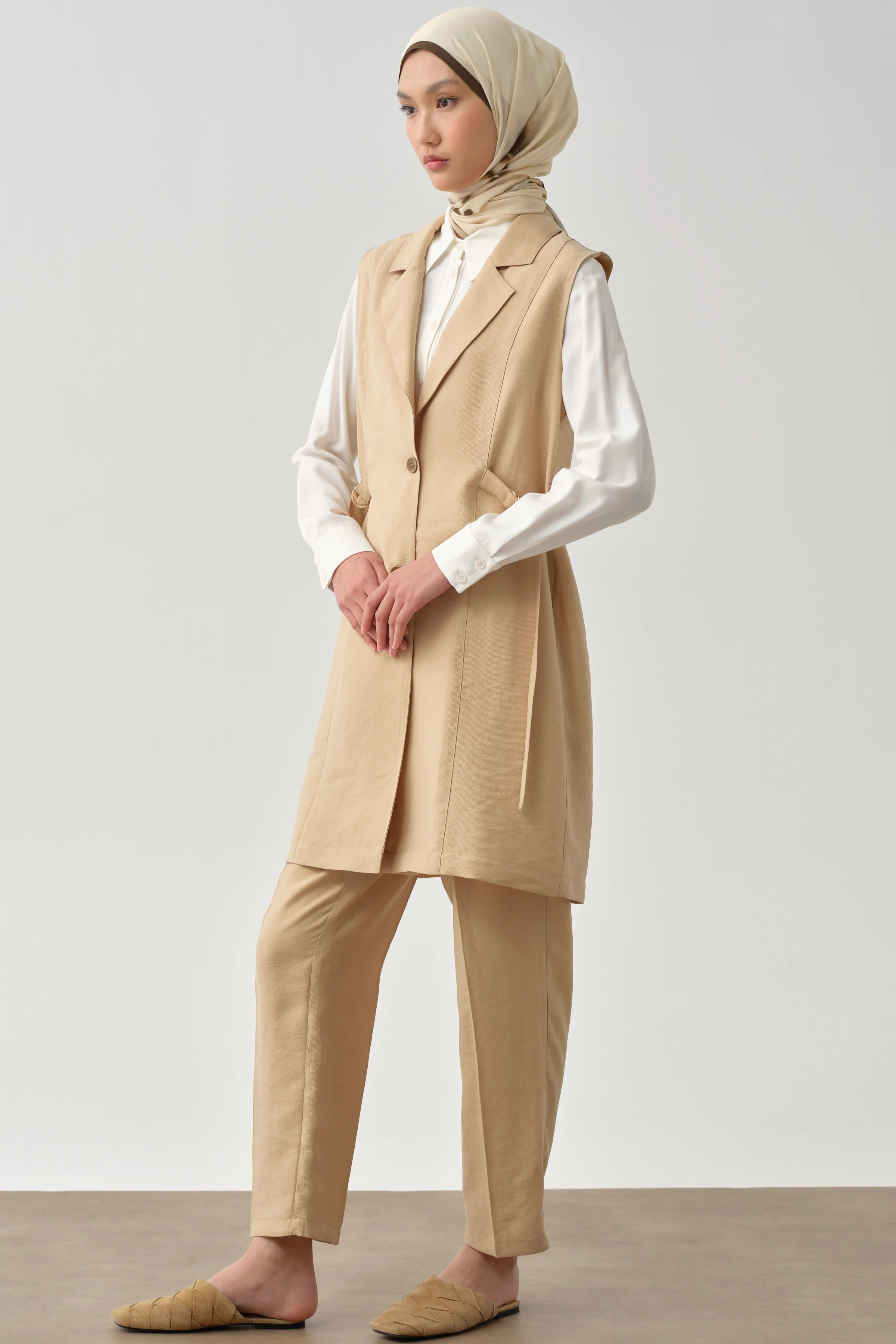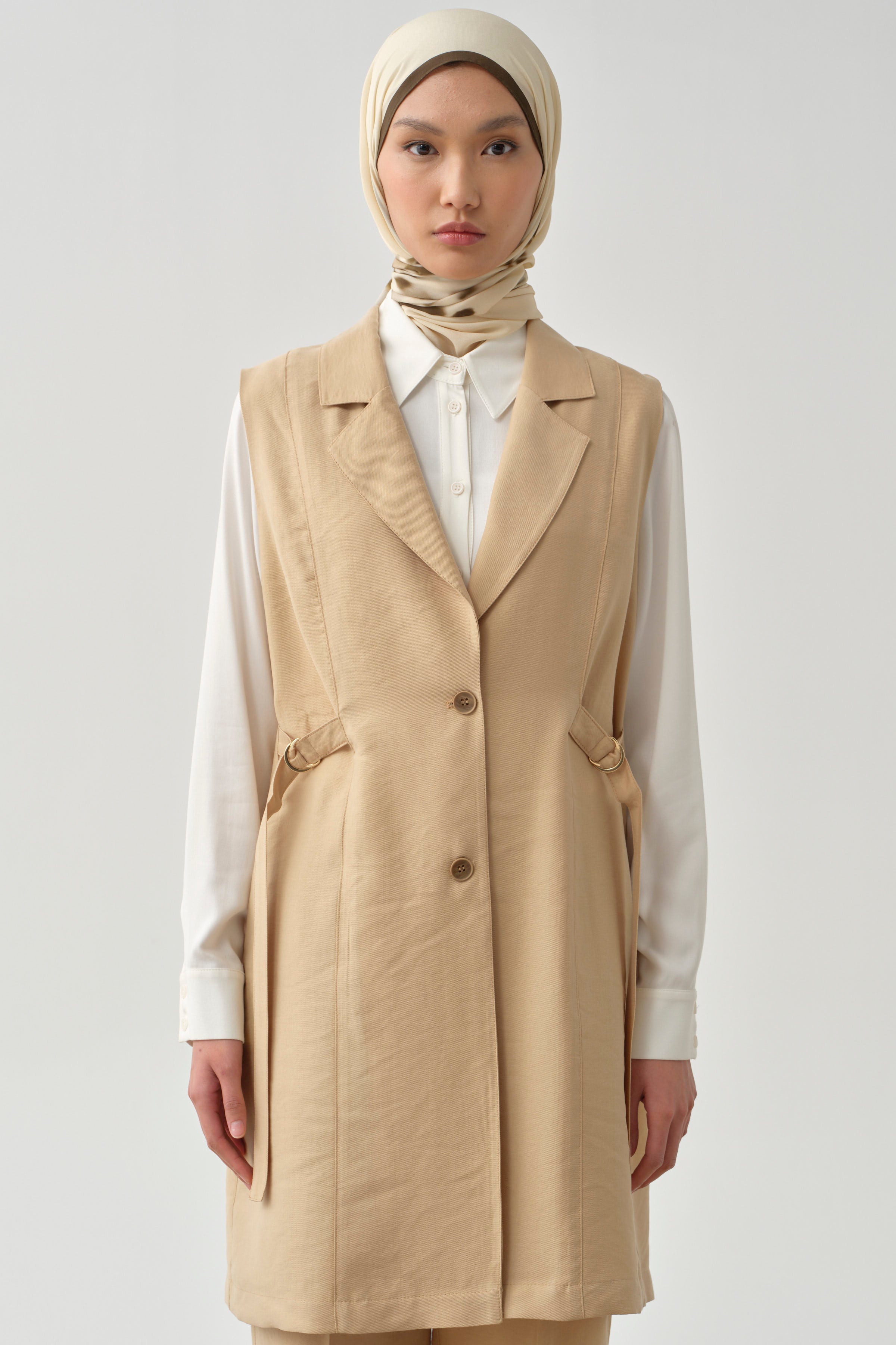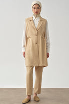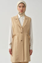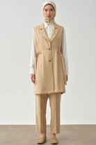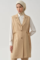 Side Metal Buckle Belt Vest - Beige