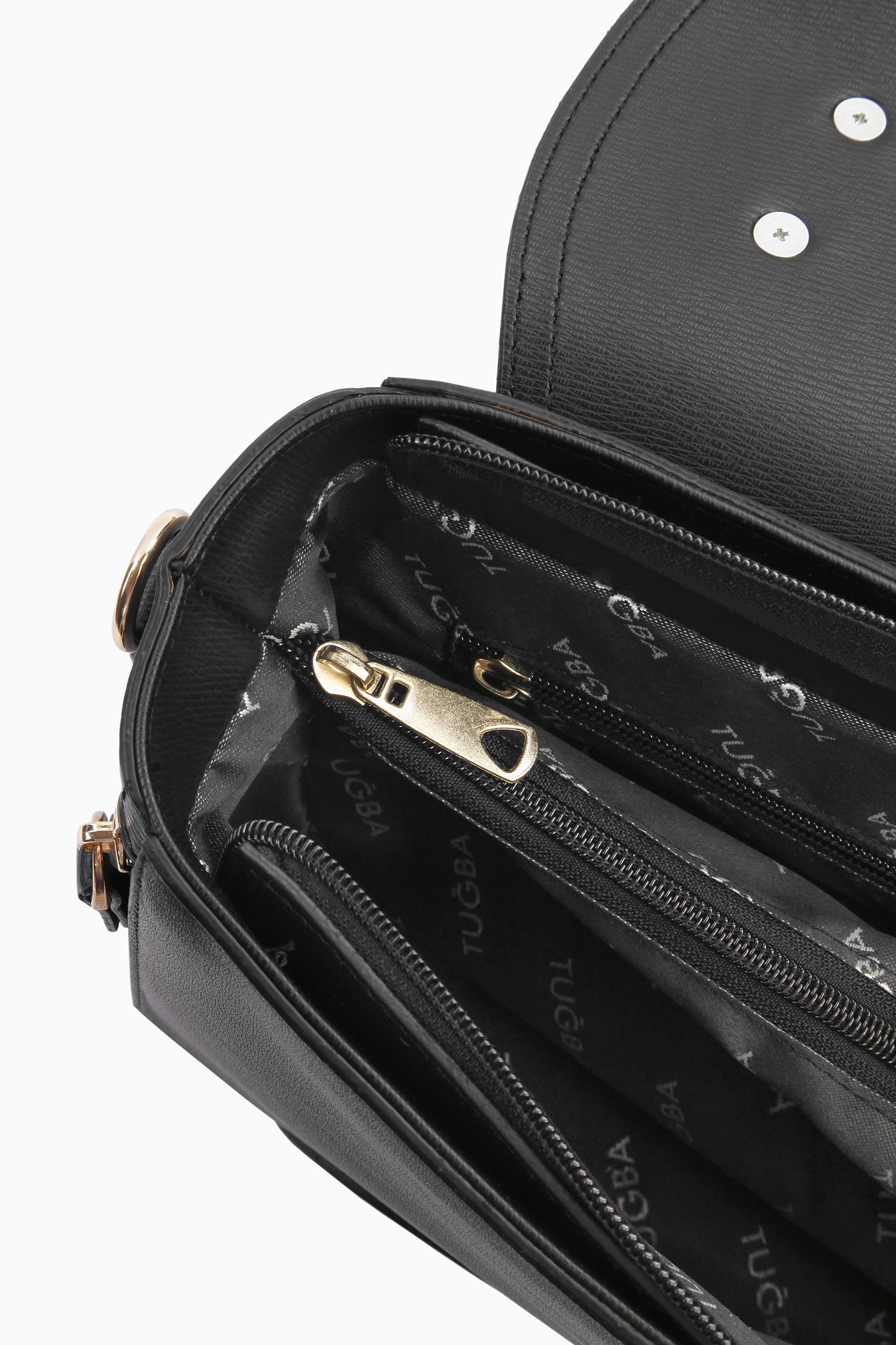 This bag, with its triangular flap design and side zipper details, offers a modern look and completes a unique style. Its spacious interior offers both stylish and practical options, adding a touch of dynamism to both everyday and urban styles.
