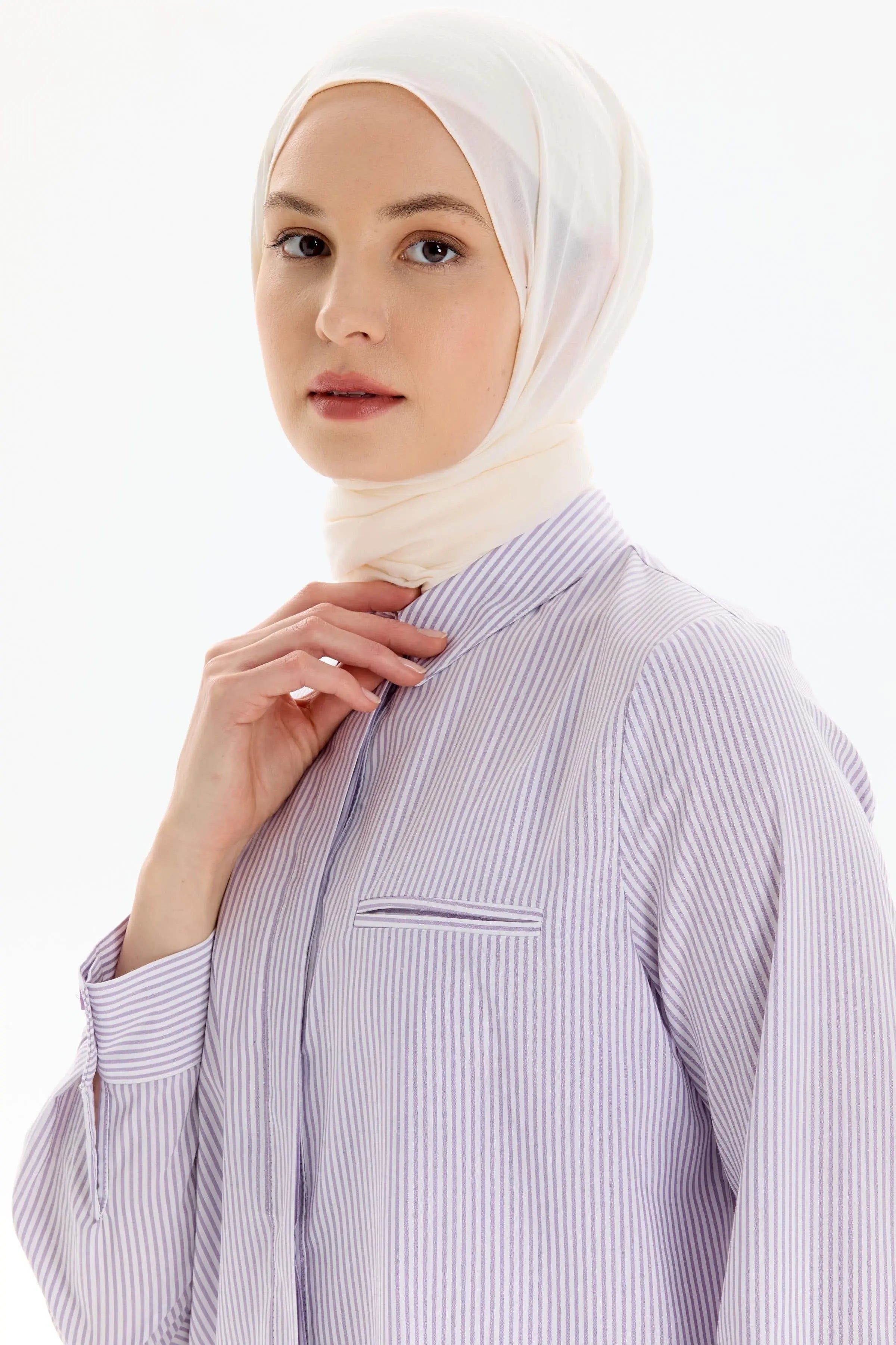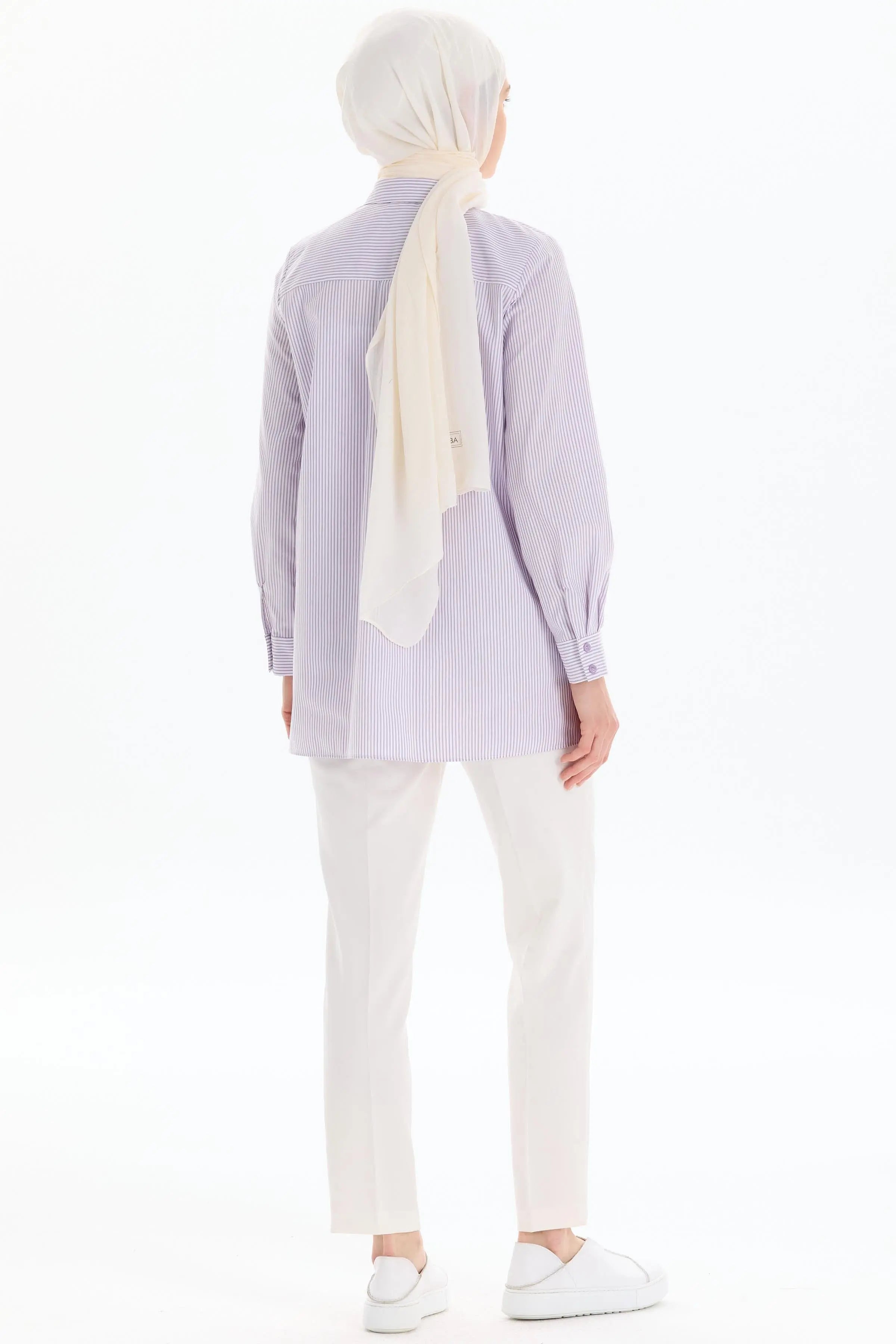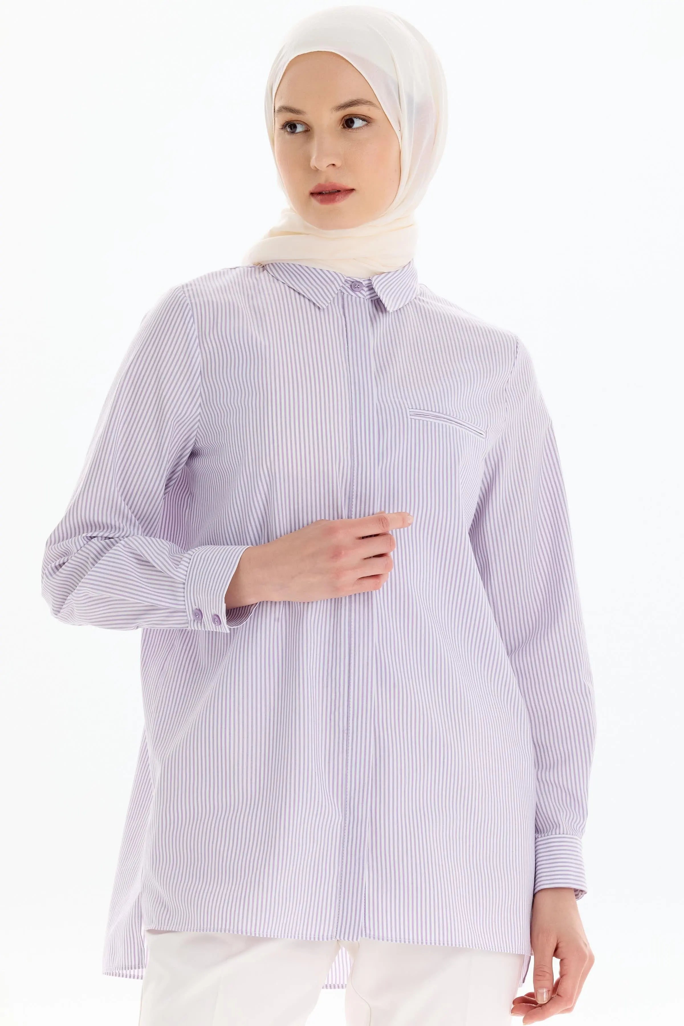 Striped Shirt with Slit Detail - Lilac