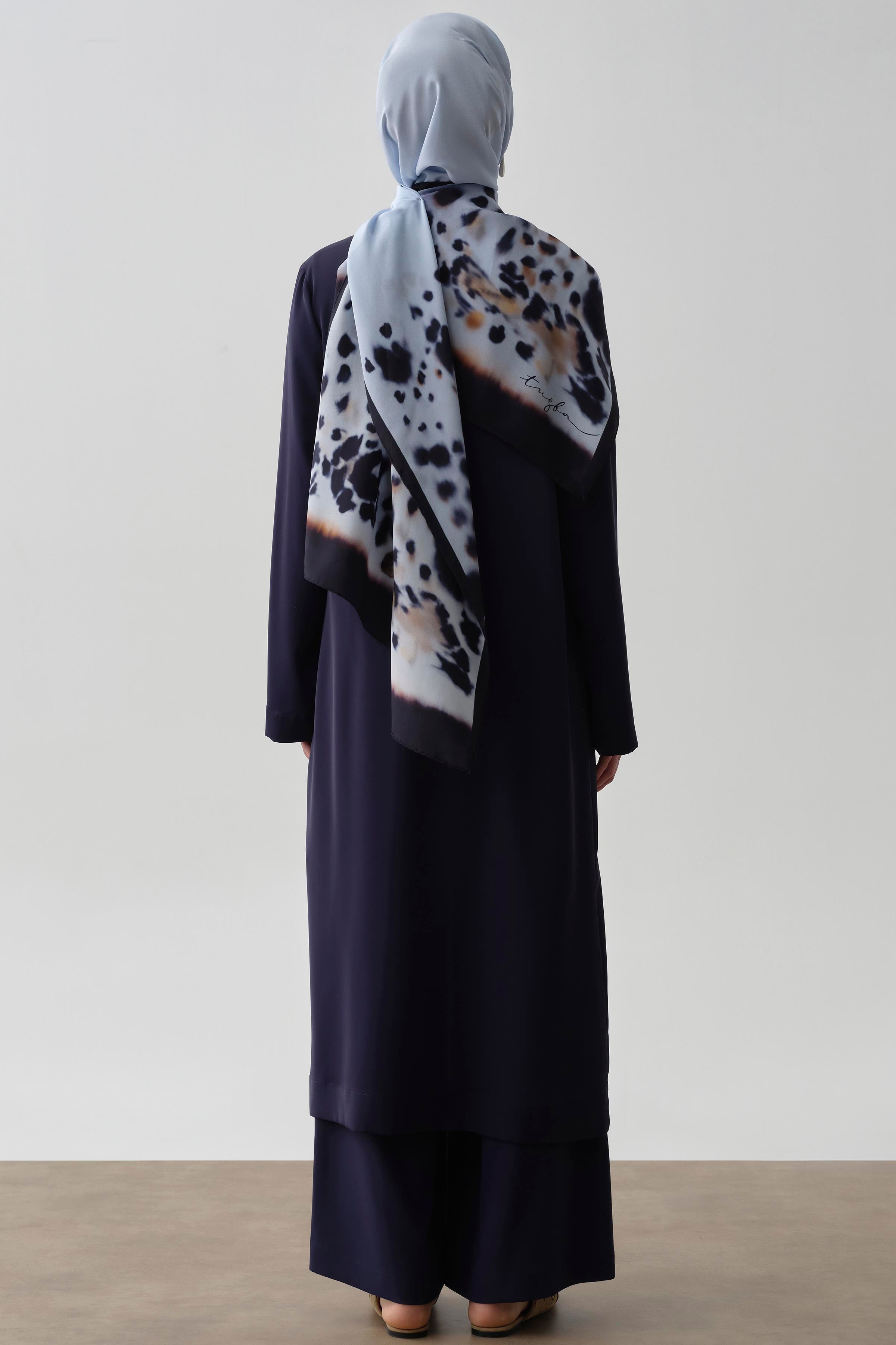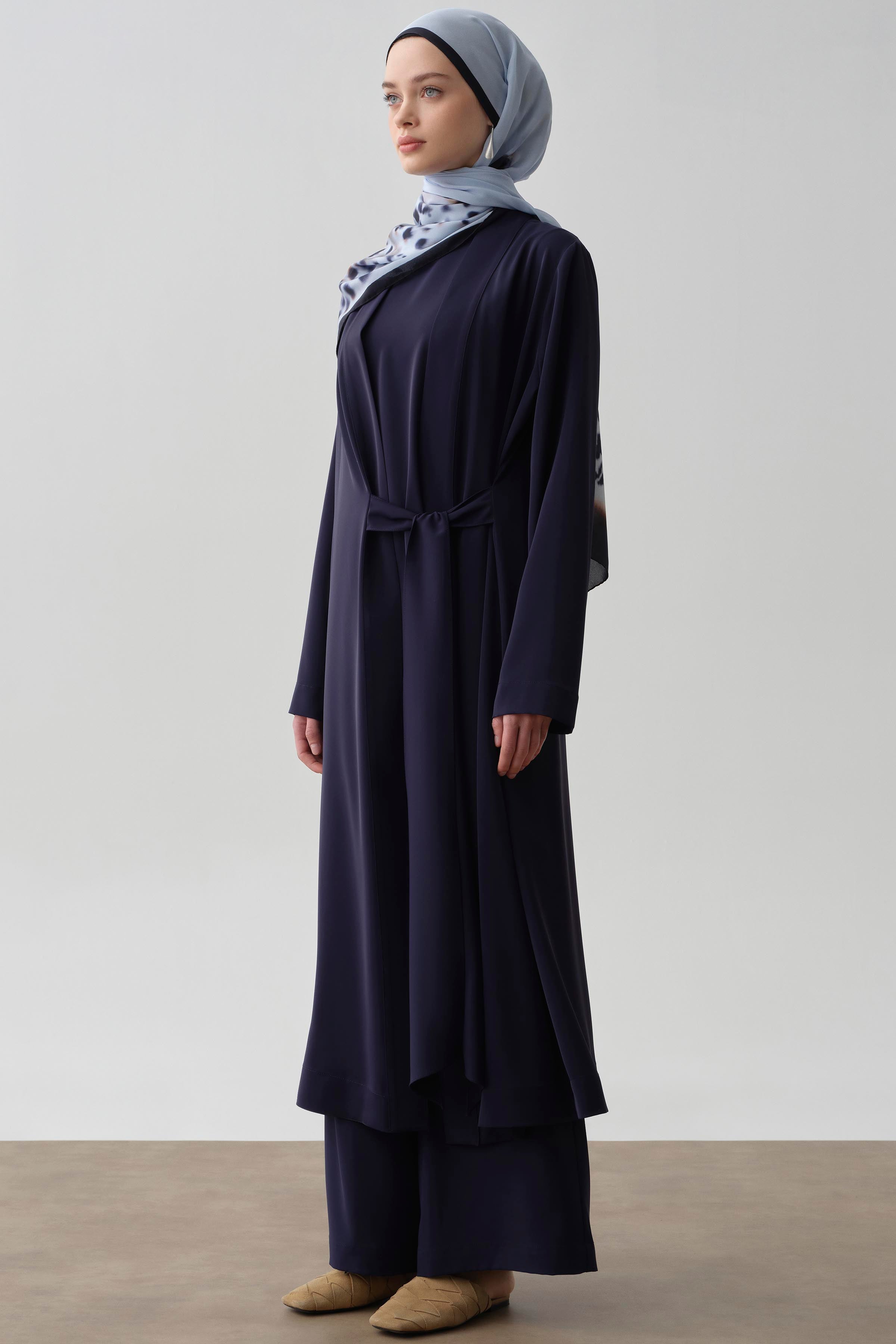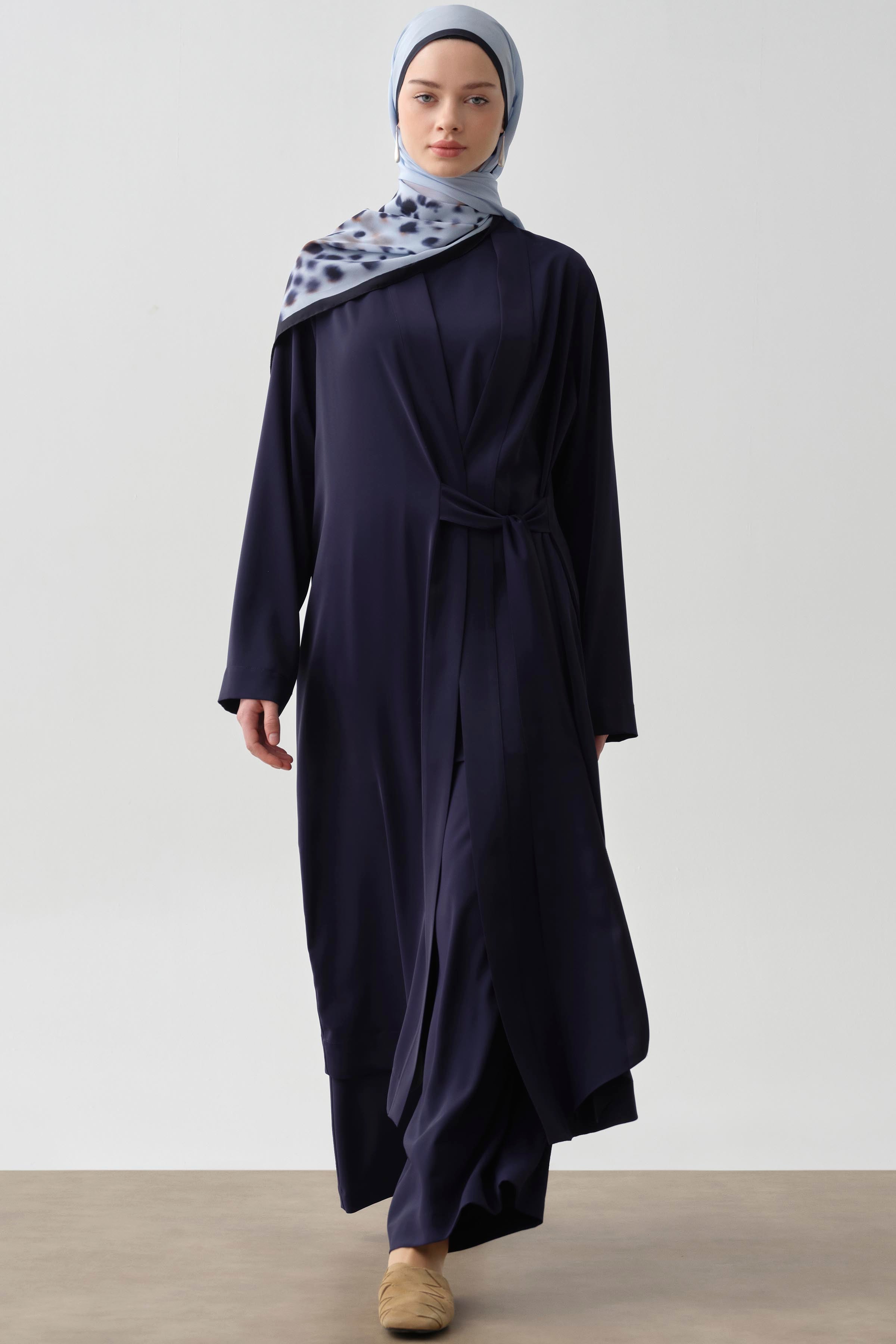 Combinando elegancia y comodidad, el traje túnica con cinturón llama la atención por su postura moderna y elegante. Su corte fluido proporciona libertad de movimiento, mientras que el detalle del cinturón crea una silueta adaptada al cuerpo.