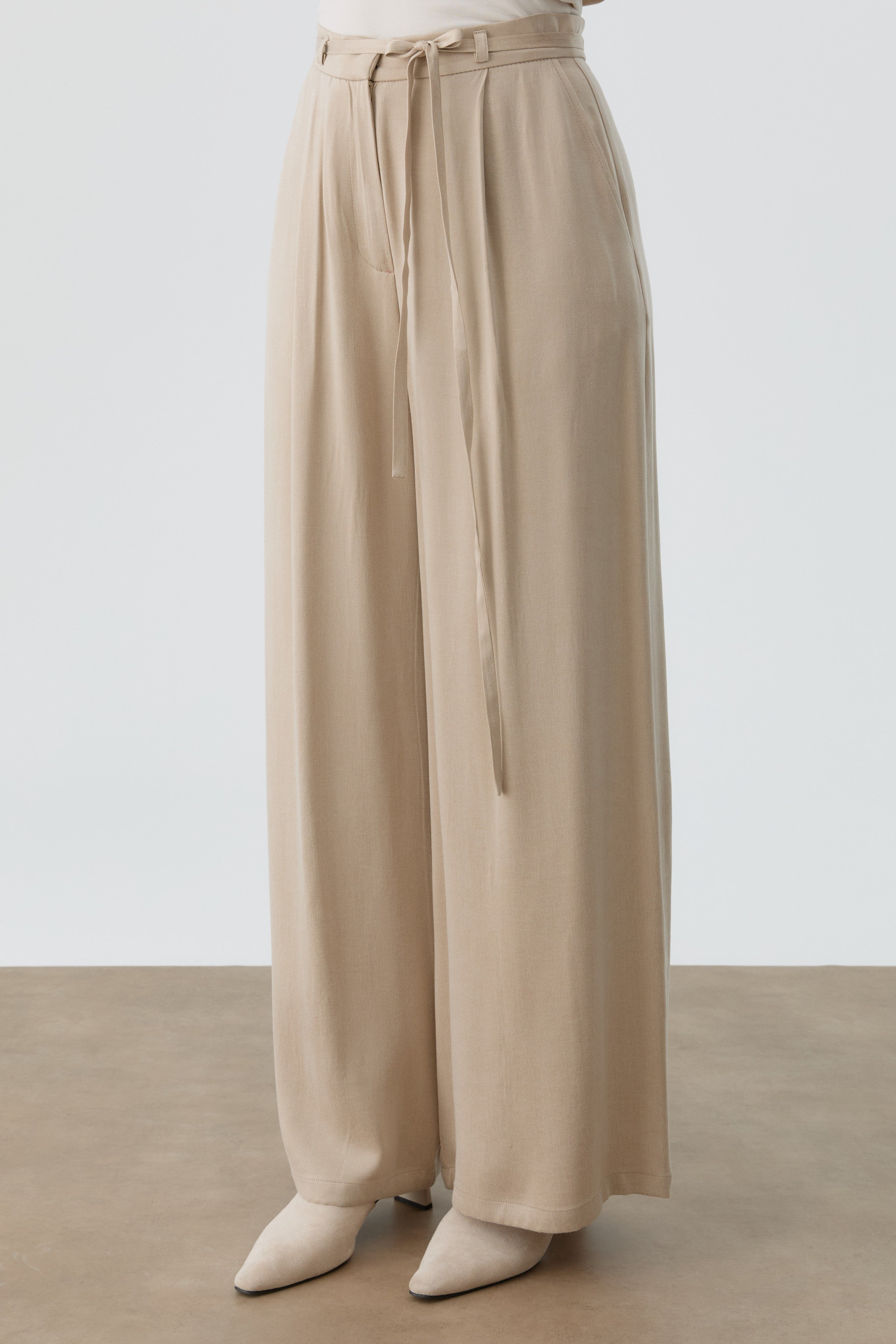 Estos pantalones, que realzan la cintura gracias a su talle alto y su cinturón extraíble, ofrecen una silueta moderna y desenfadada con su corte de pierna ancha.