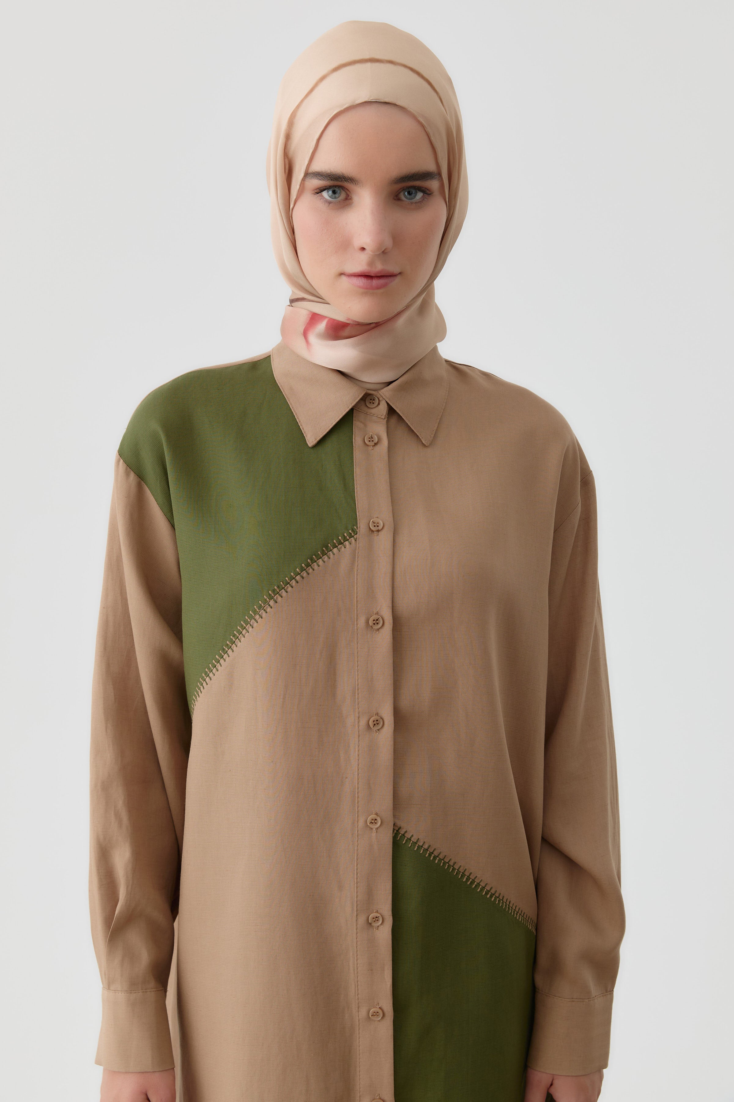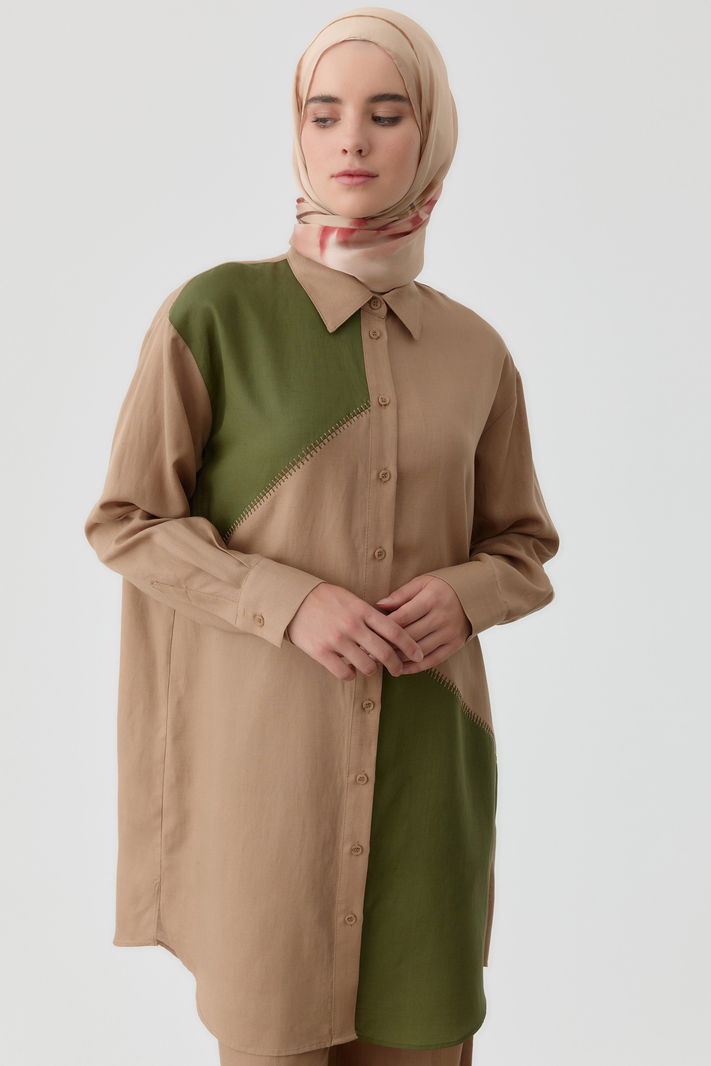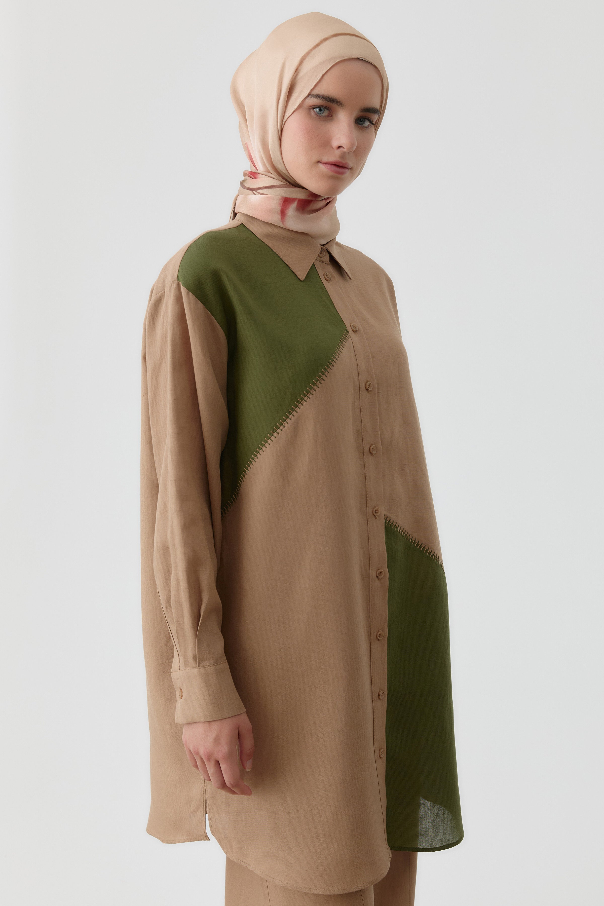 Esta túnica entallada, realzada con detalles bordados, ofrece un look moderno y elegante. Su corte holgado garantiza comodidad durante todo el día a la vez que añade un toque de elegancia a tu estilo.