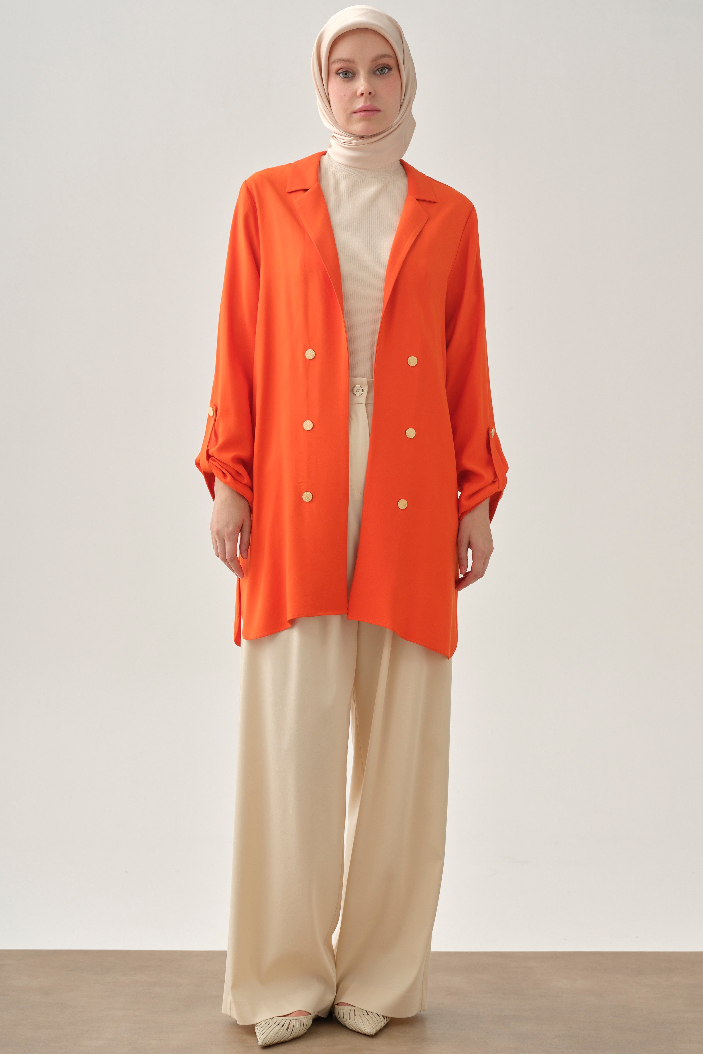 Los elegantes pliegues en la cintura le dan un aspecto dinámico, mientras que su estructura fluida ofrece comodidad y estilo durante todo el día.