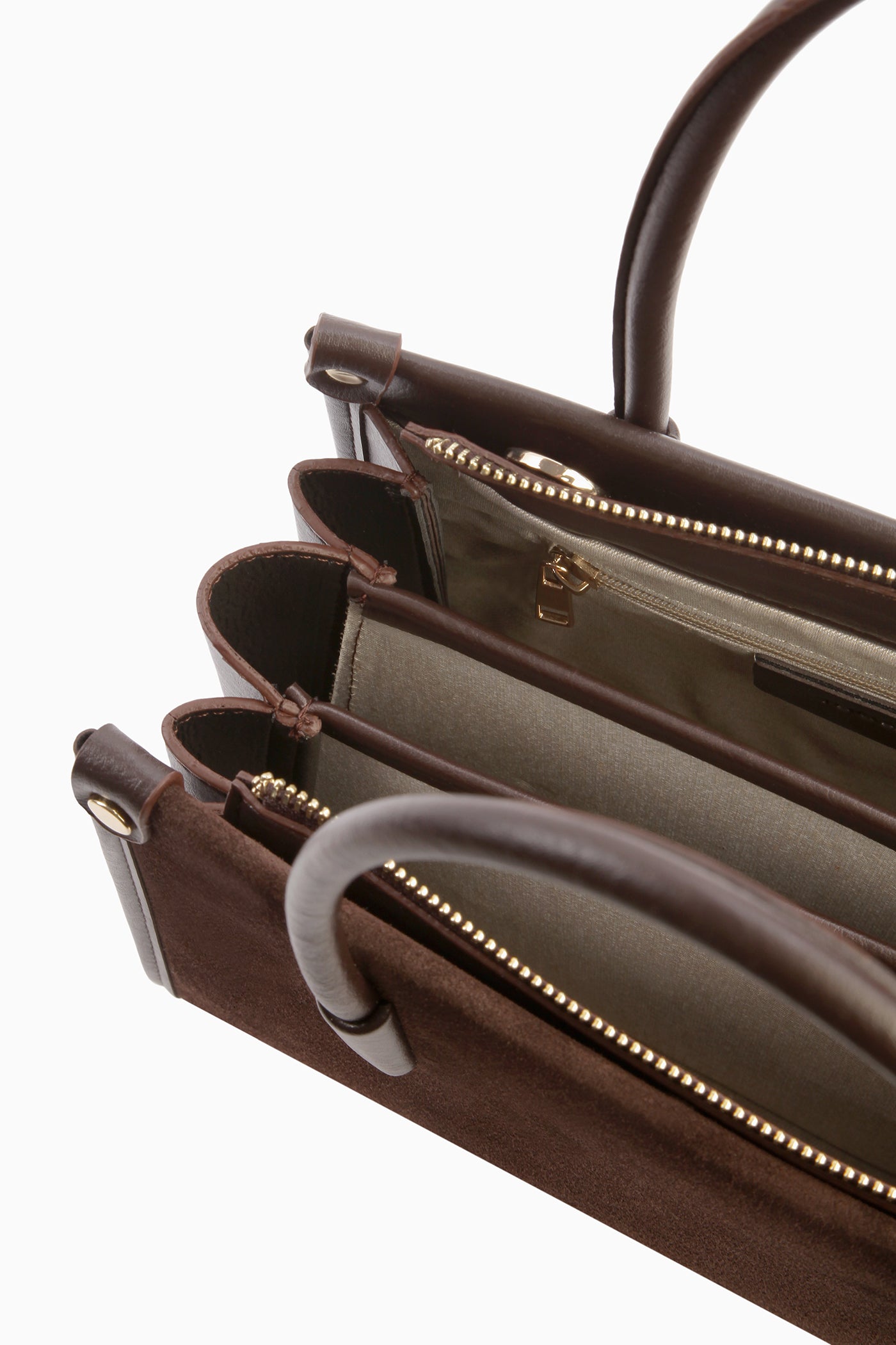 Detalles interiores: Tres compartimentos, un bolsillo interior con cremallera.